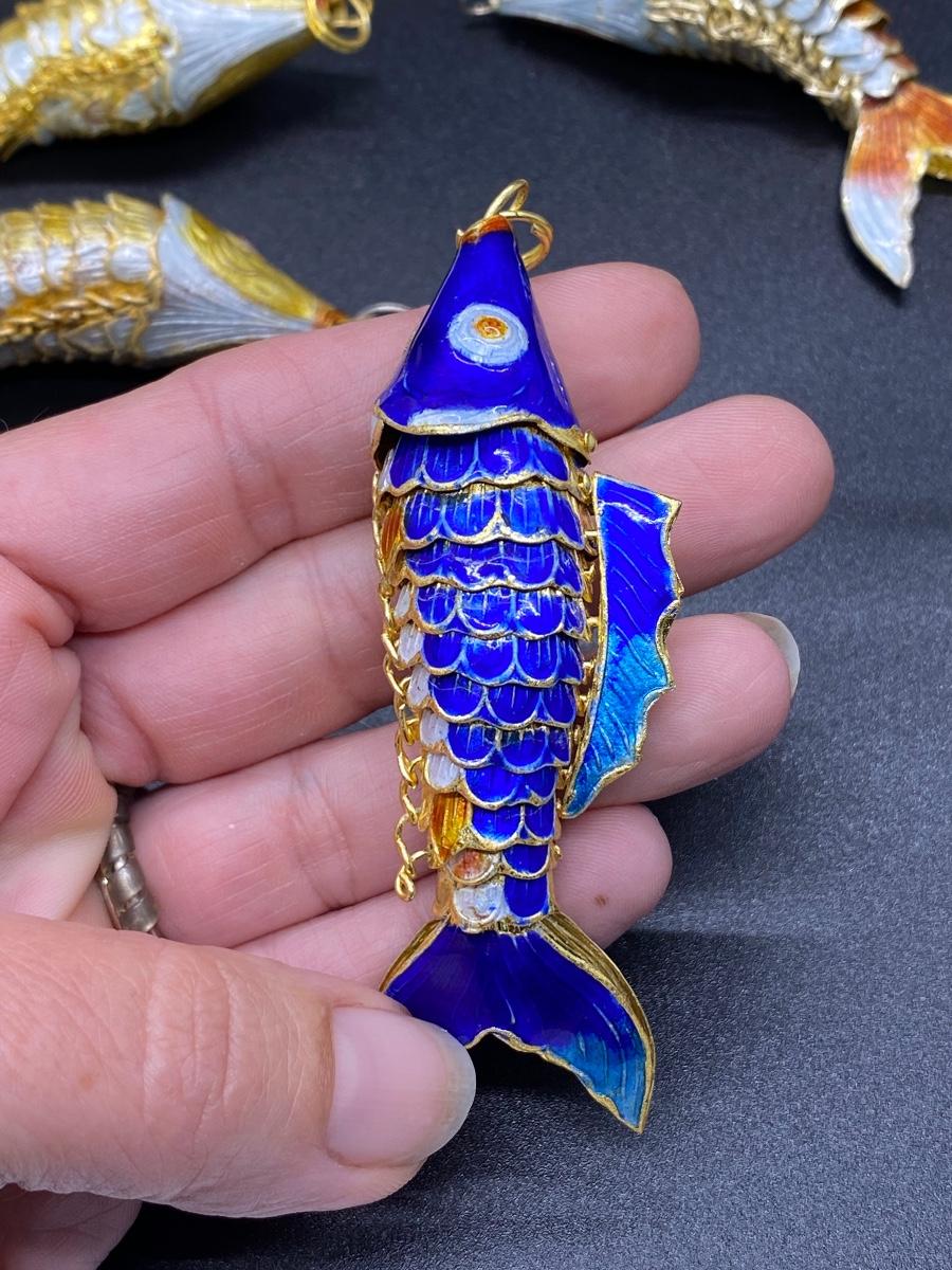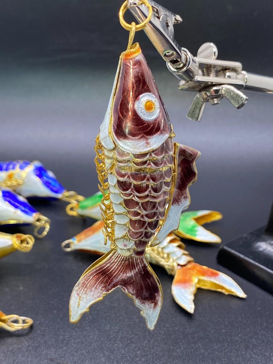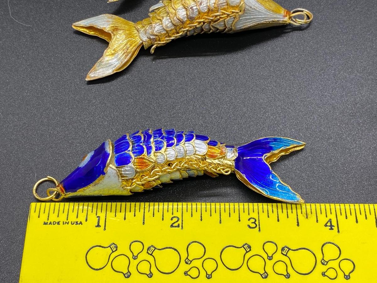 Colorful lot of 7 articulated fish pendants. About 3.5" size.