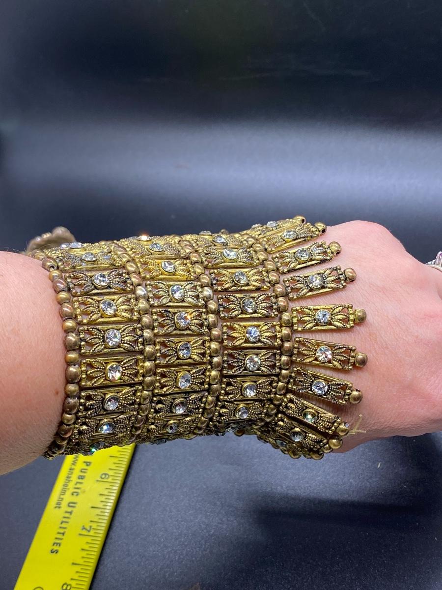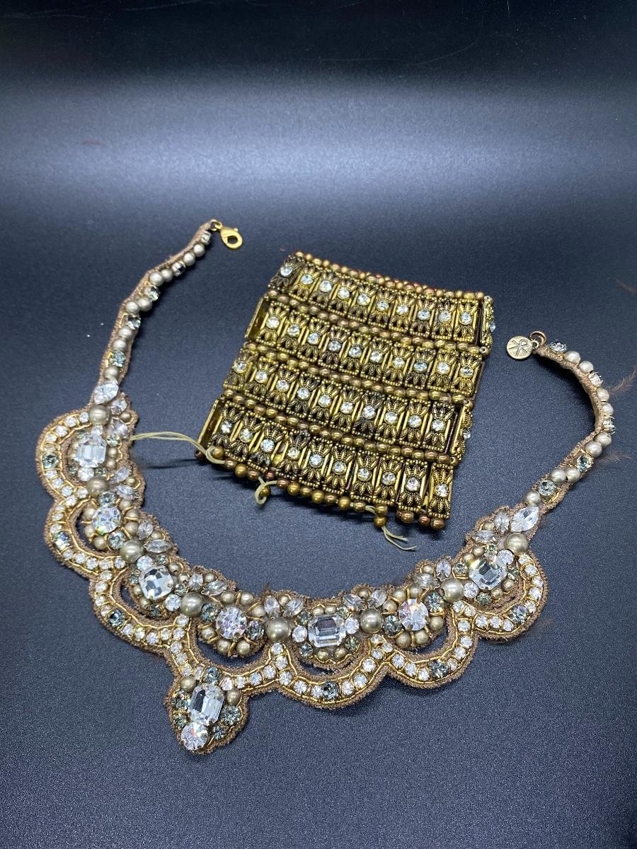 Bead Rhinestone Collar Necklace and Stretch Cuff Bracelet