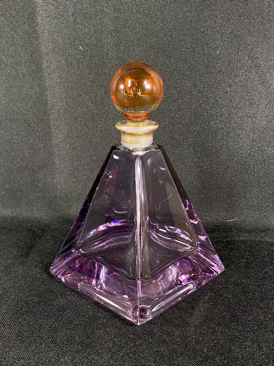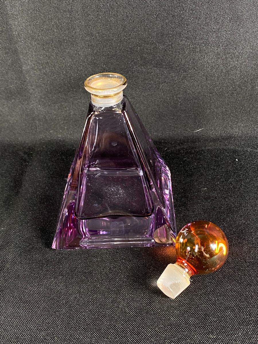 Purple & Gold Pyramid Shaped Glass Perfume Bottle