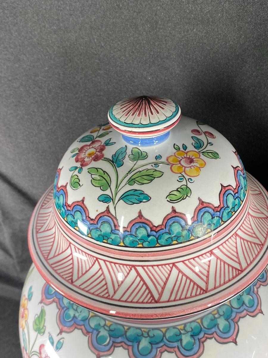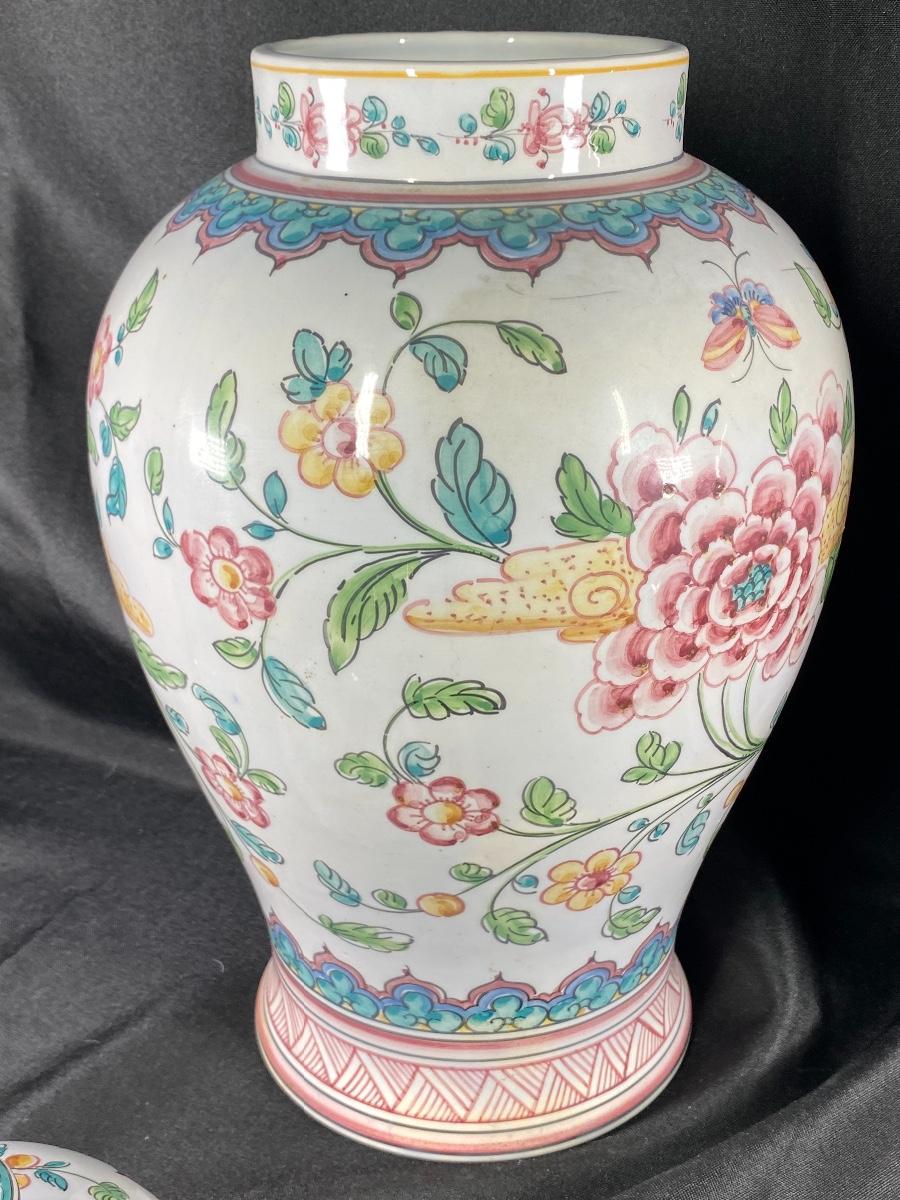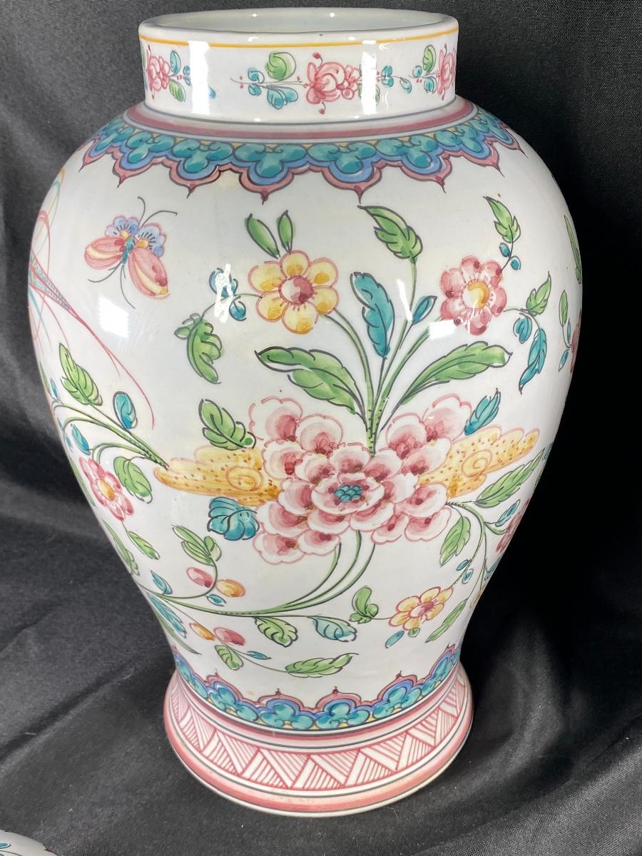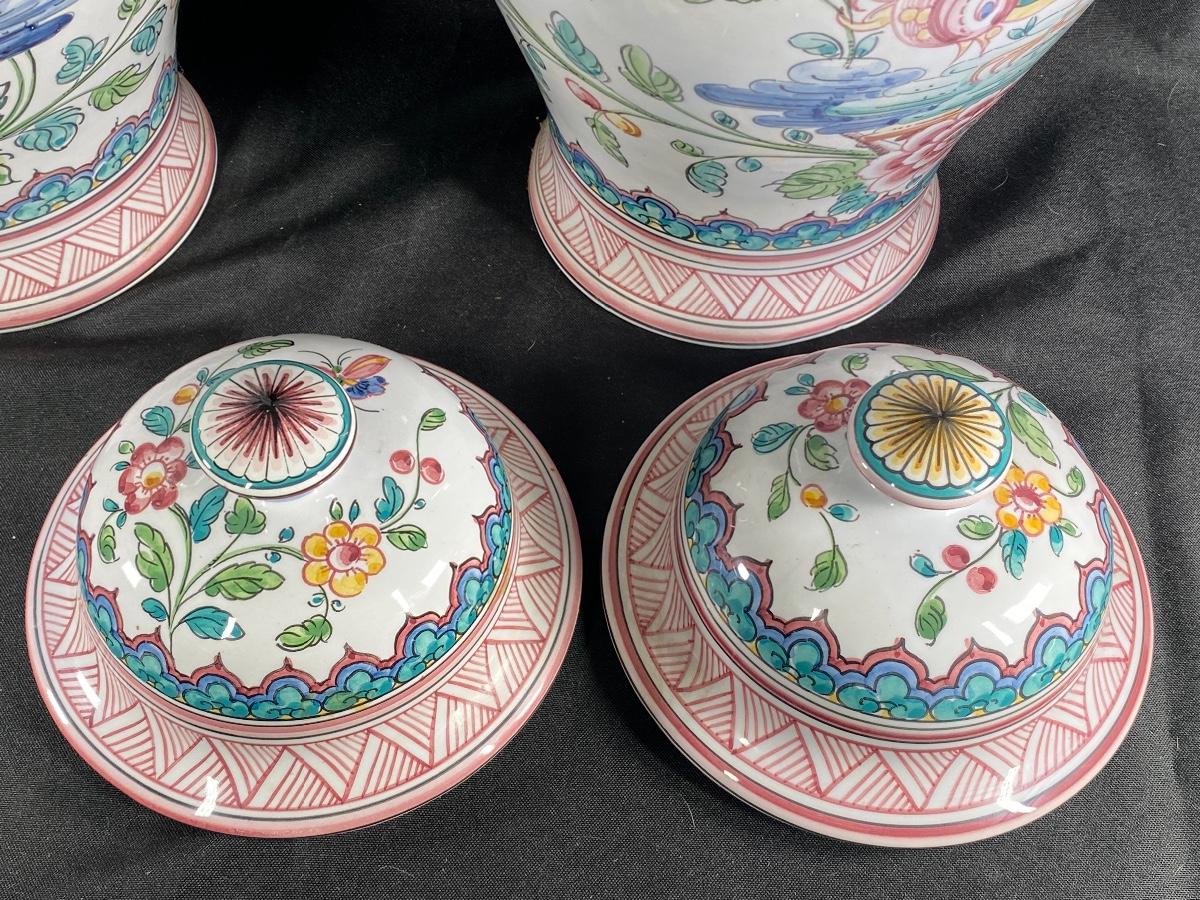 Pair of Large Pastel Ornate Hand Painted Ginger Jar Pots Portugal