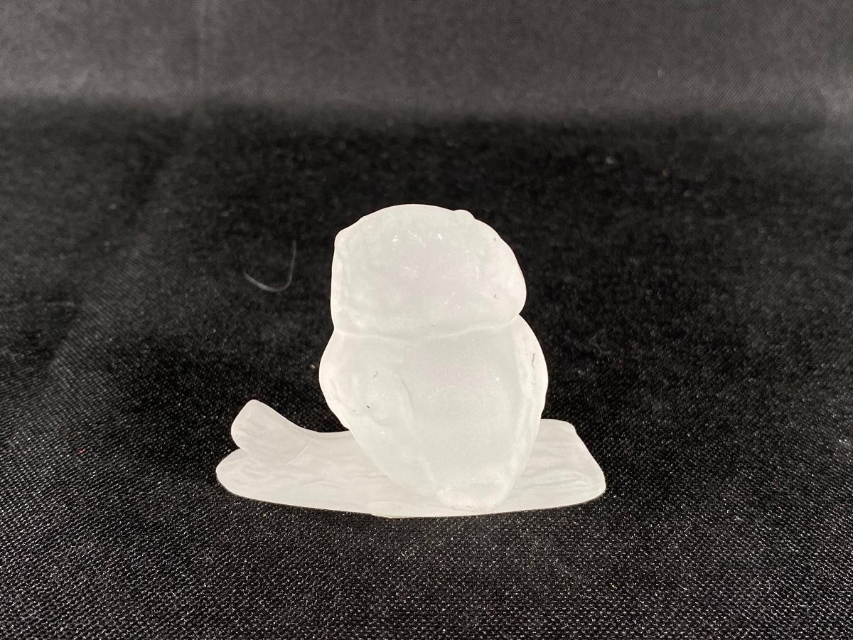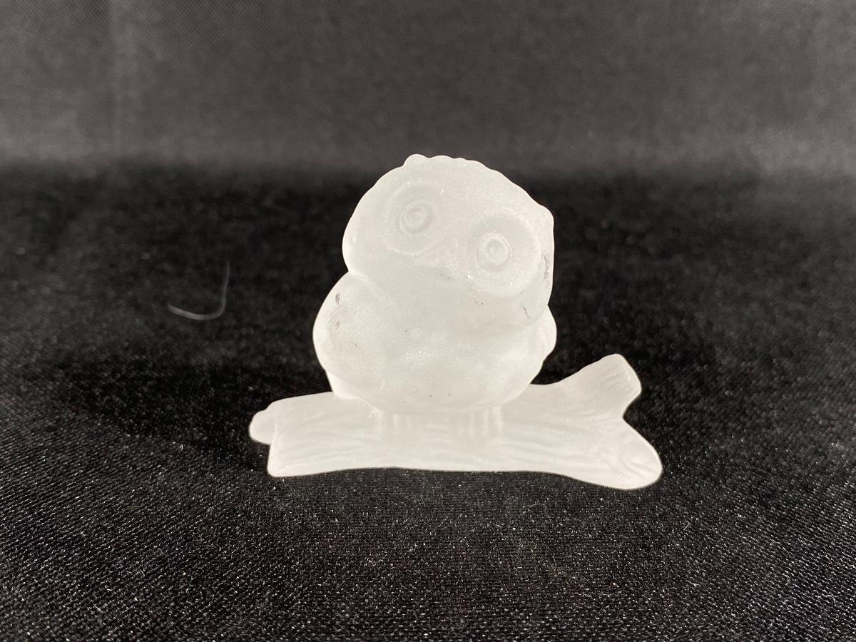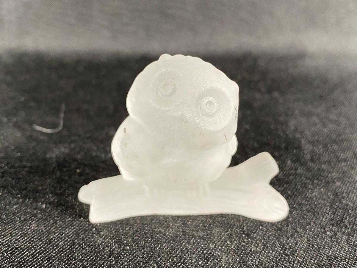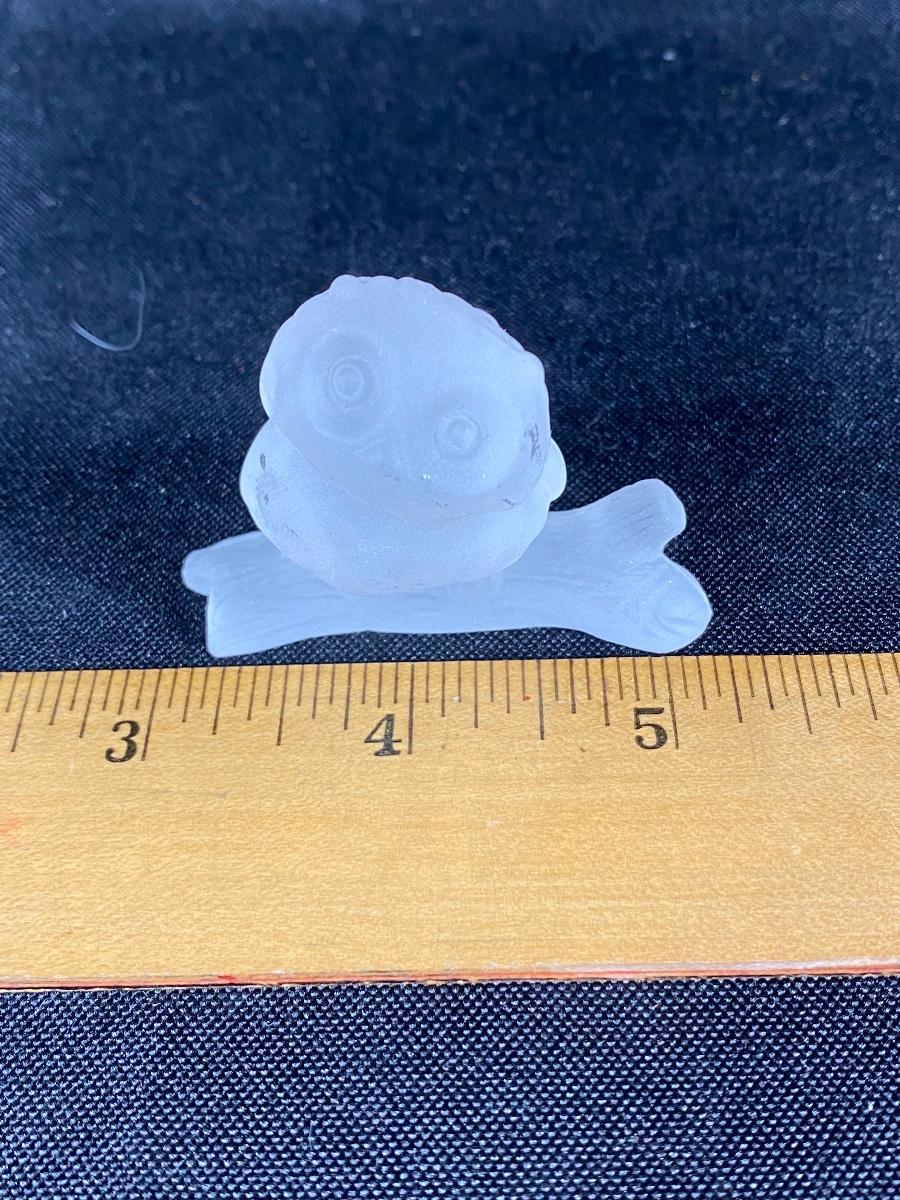 Miniature frosted lead crystal owl figurine. From Hallmark Gifts. About 2" size.