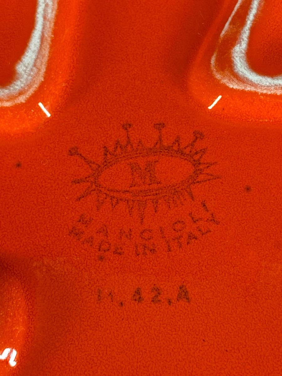 Vintage Mancioli Pottery tomato shaped soup tureen. Lidded bowl with ladle. Stamped on the bottom. Displays nicely. About 12" size. Good condition.