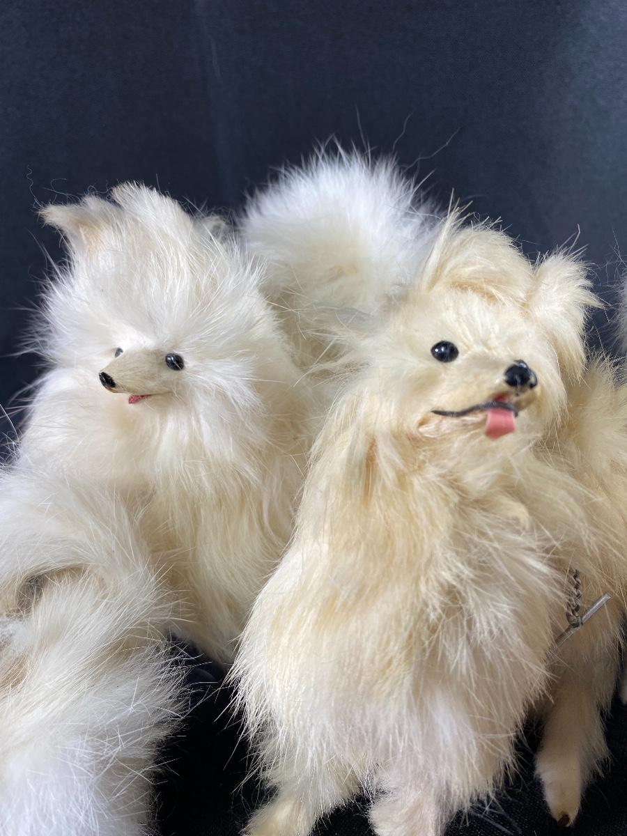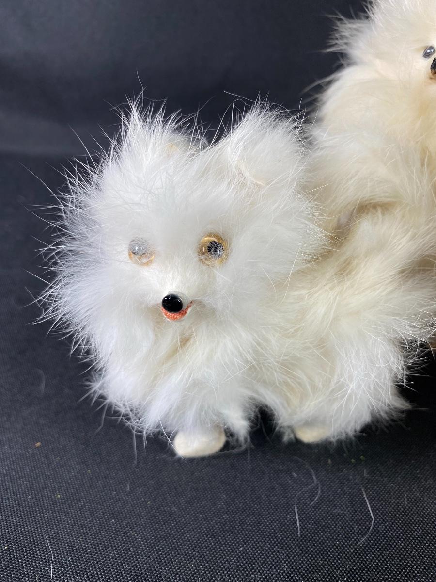 Set of 5 vintage dog figurines. Covered in what feels like ermine fur. Handmade. Fur is starting to come out.