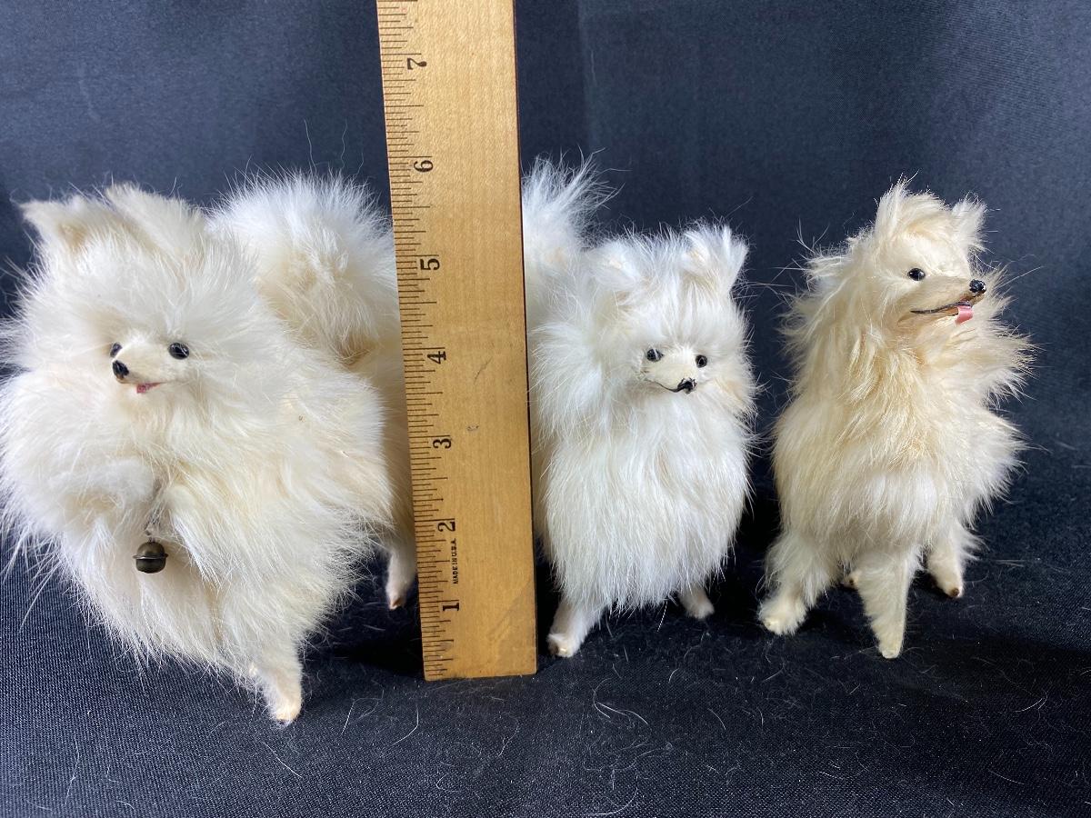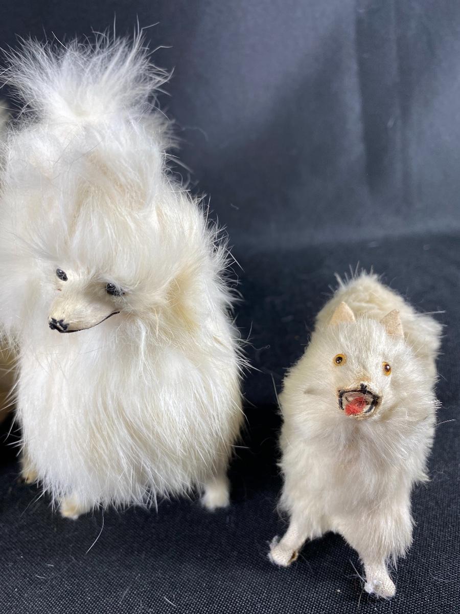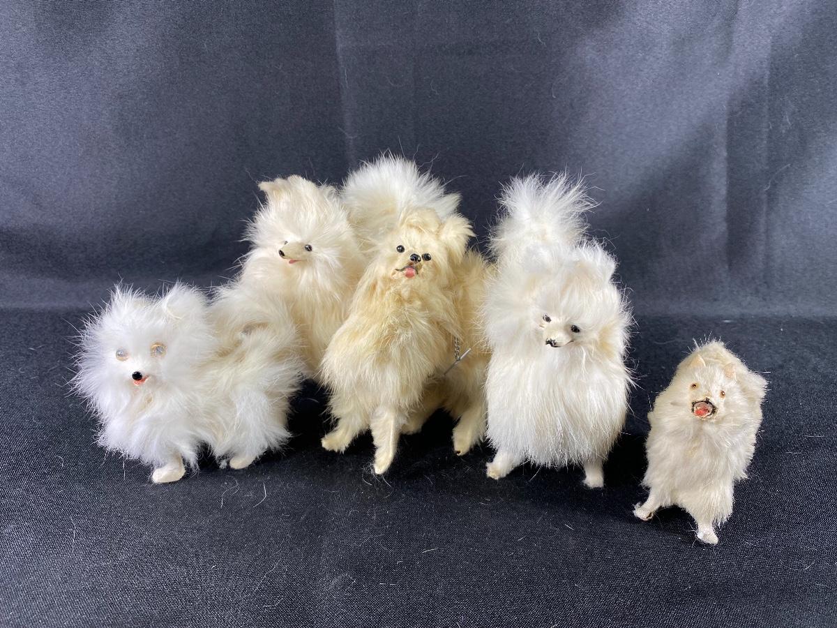 Set of 5 Vintage Ermine Fur Covered Dog Figurines