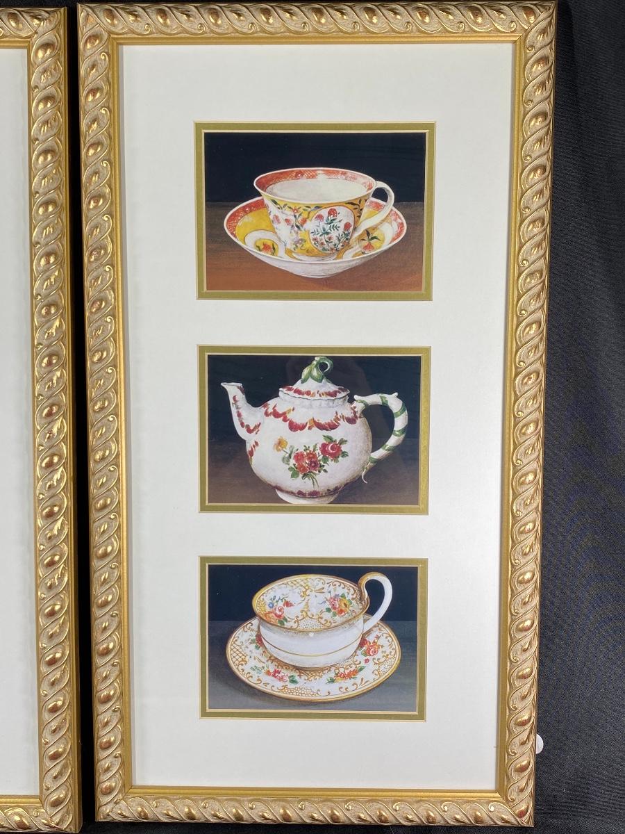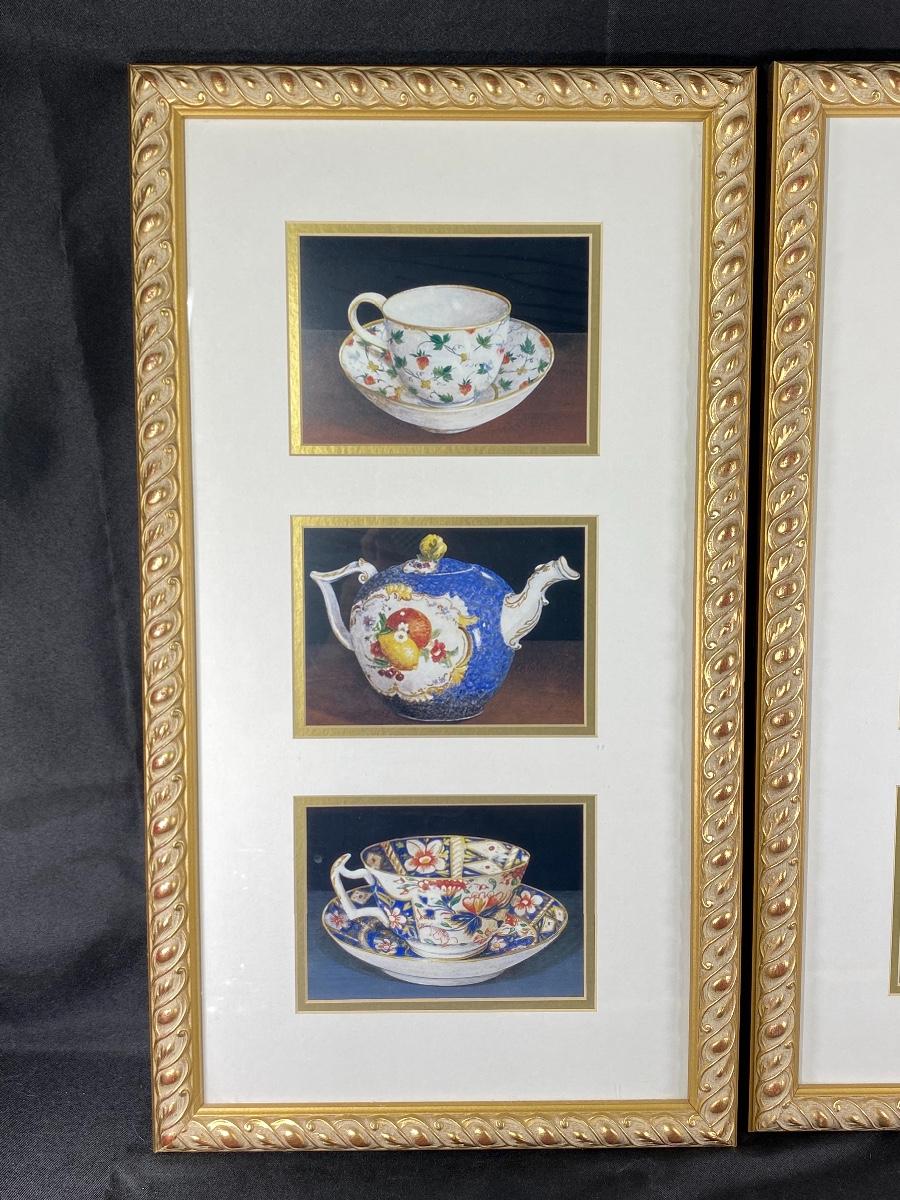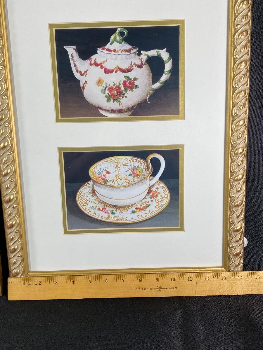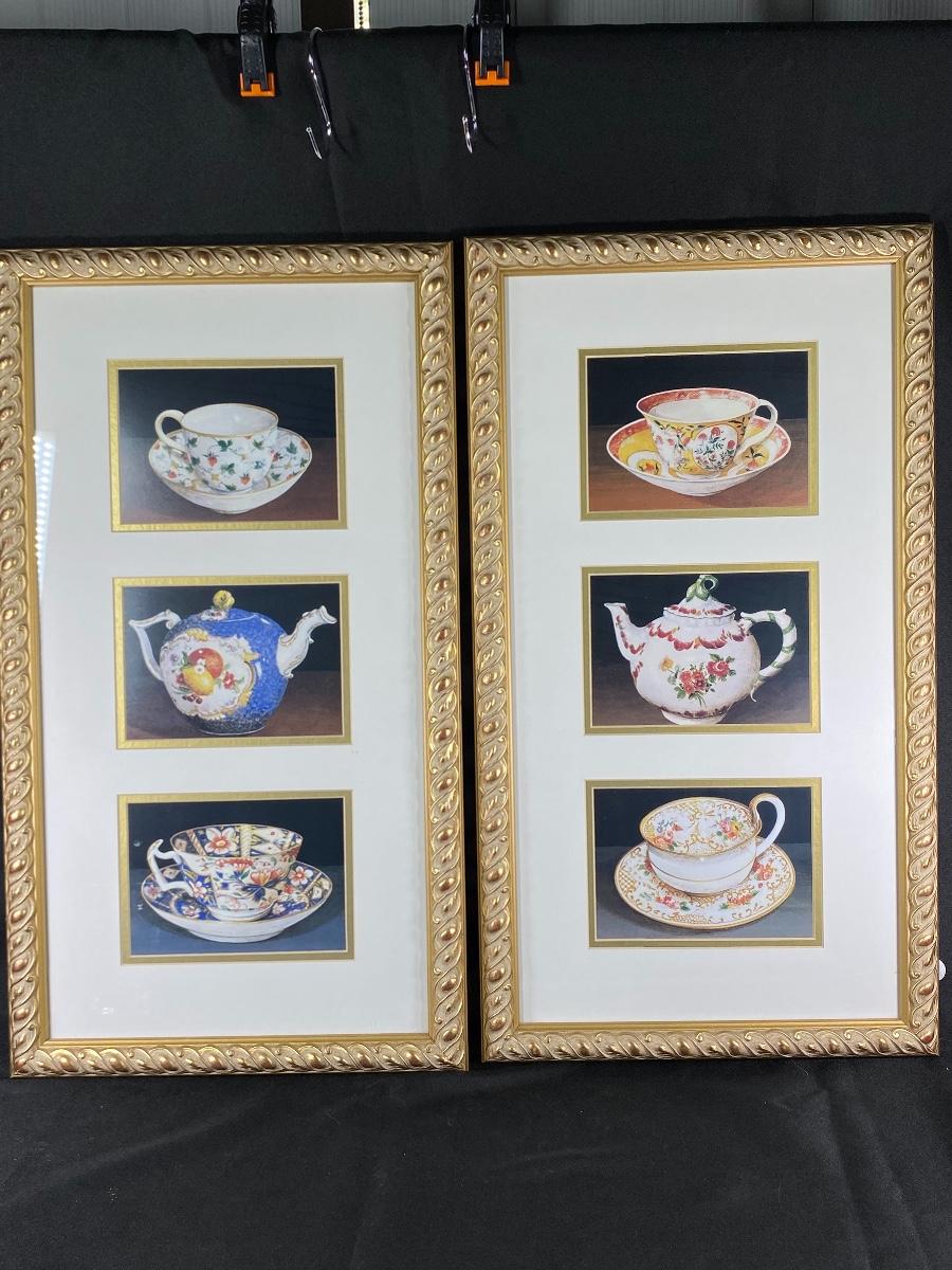 Two panel wall art of tea pots and tea cups. Good condition. Each panel is about 14"x26" size.