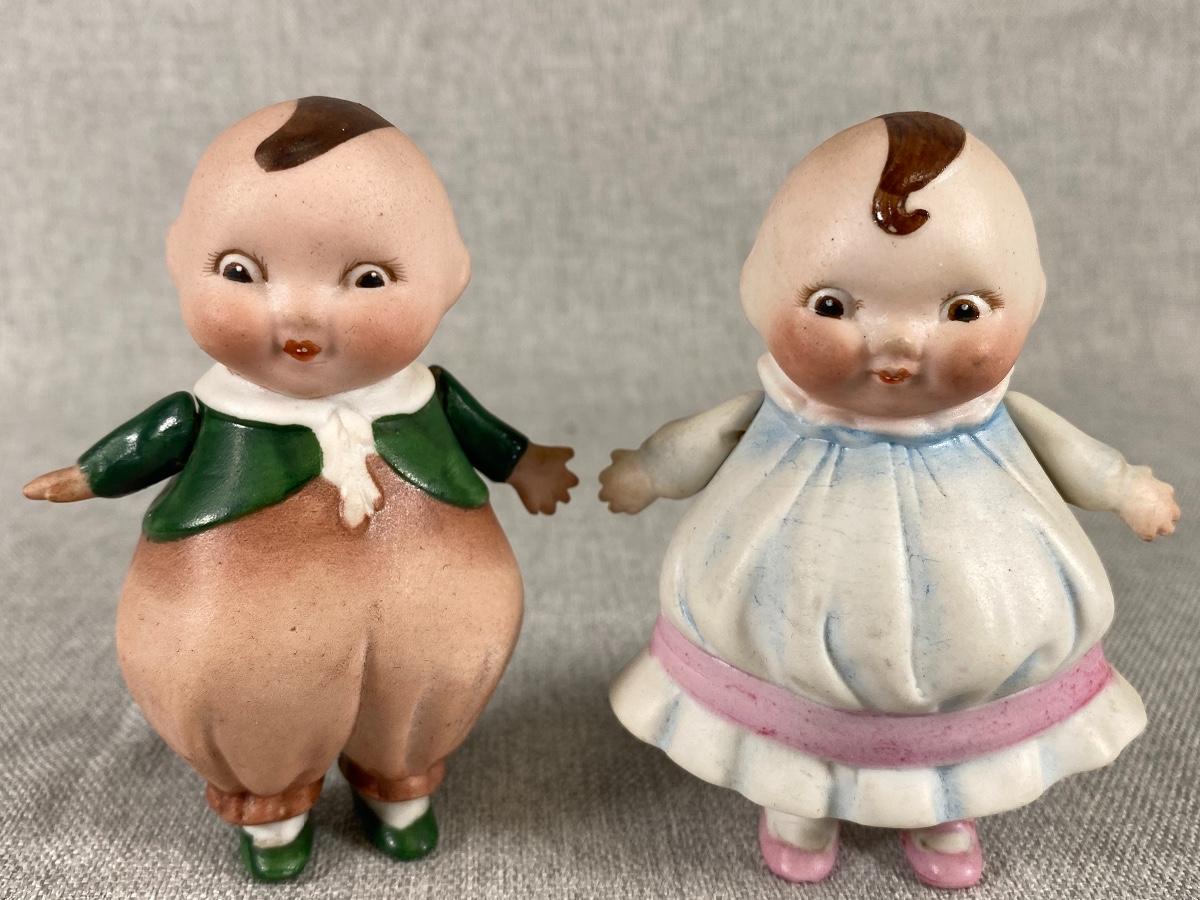 Adorable Vintage Bisque Tweedle Dee Tweedle Dum Figurine Set