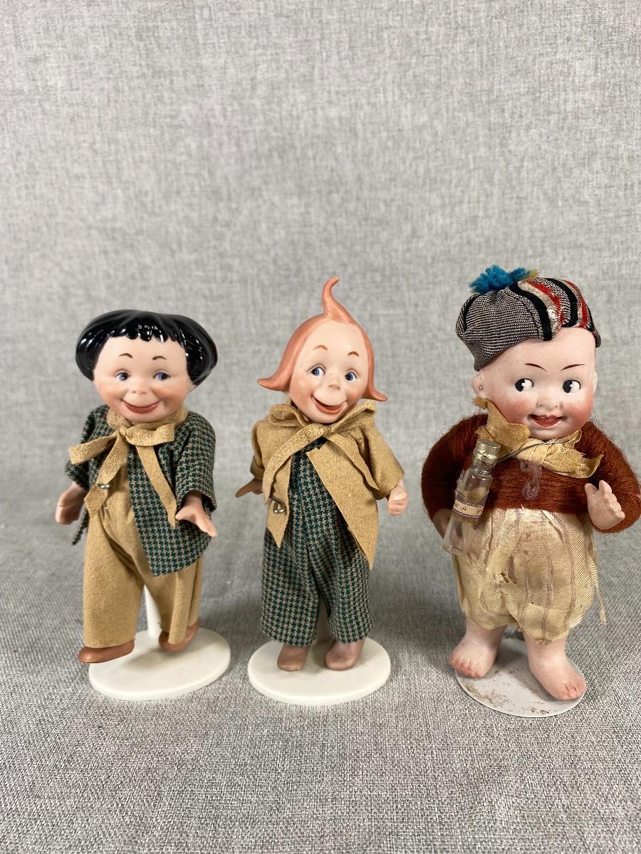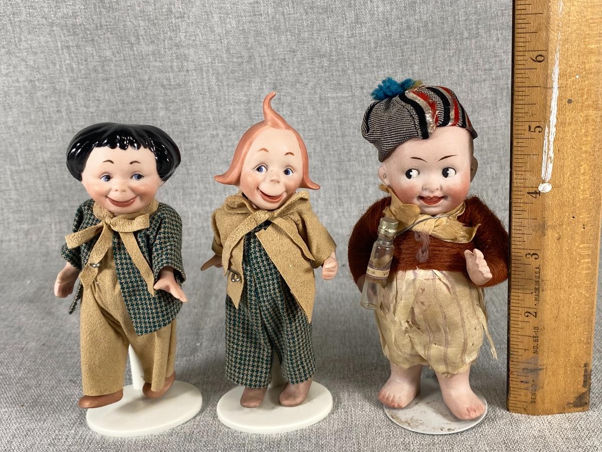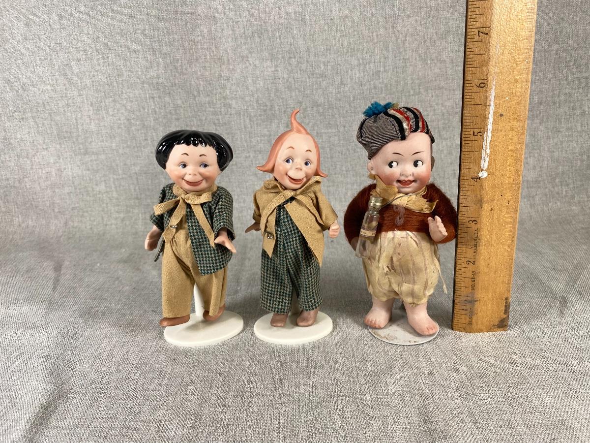 Set of 3 Unmarked Bisque 5" Character Dollhouse Dolls