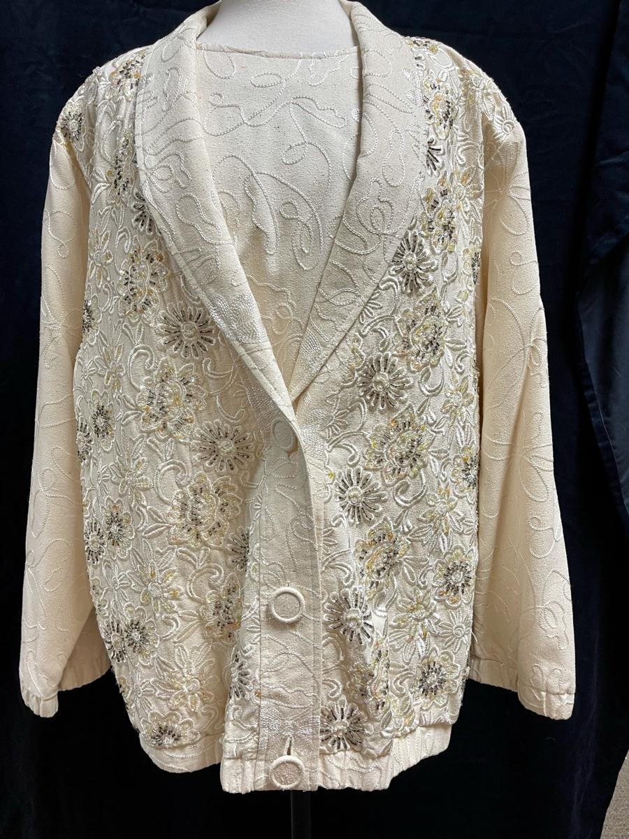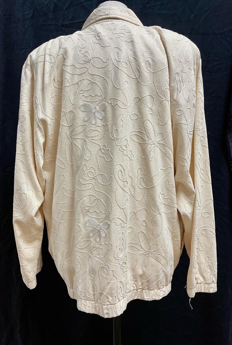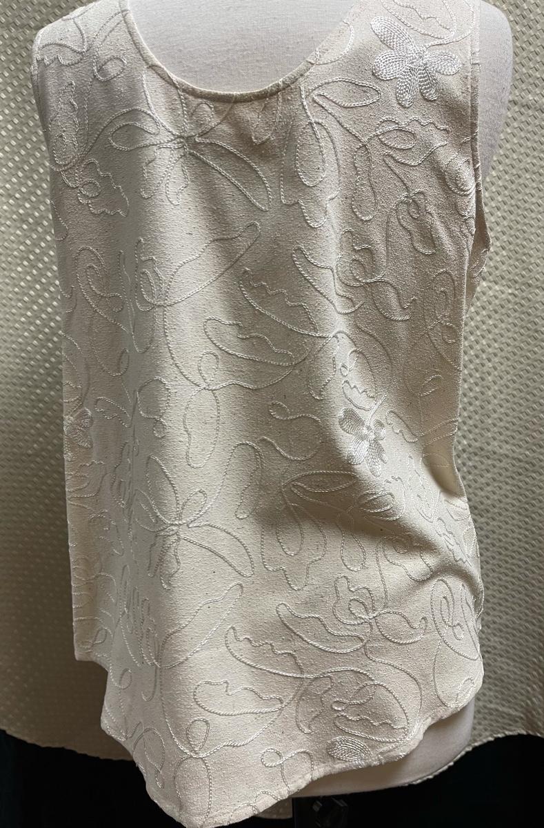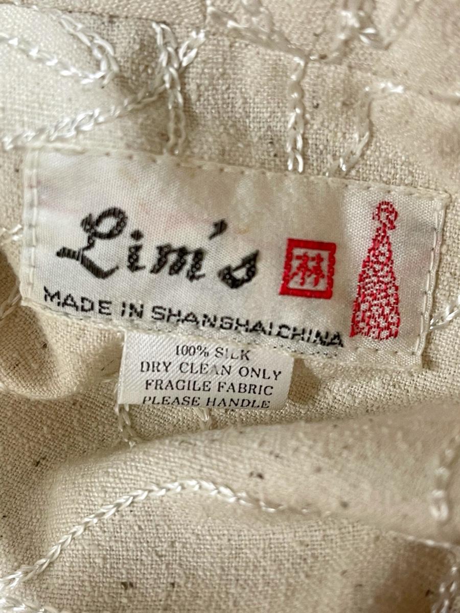 Lim's two piece white on white jacket & tank. White embroidered floral design on jacket with abstract swirl on tank. 100% Silk. Size large, maybe an extra large