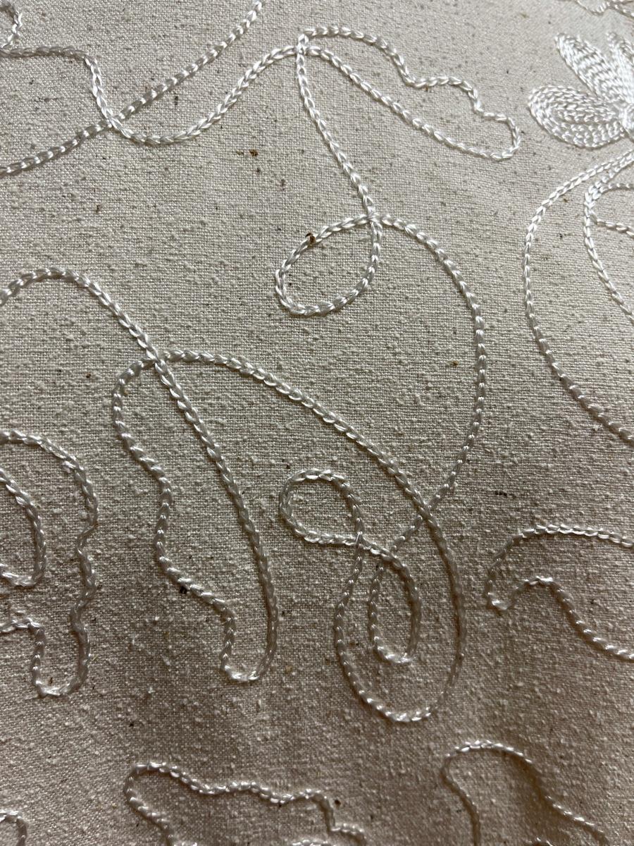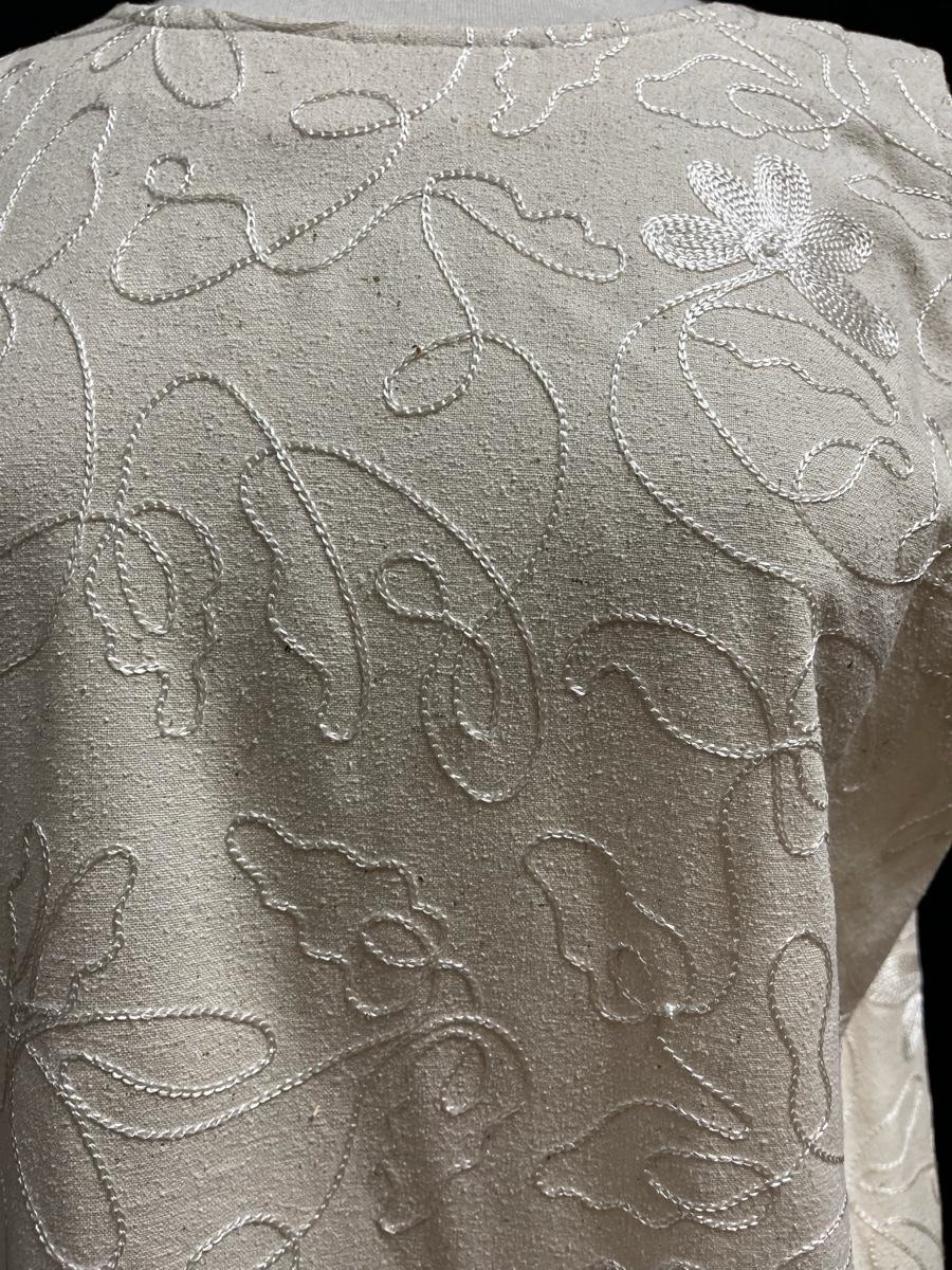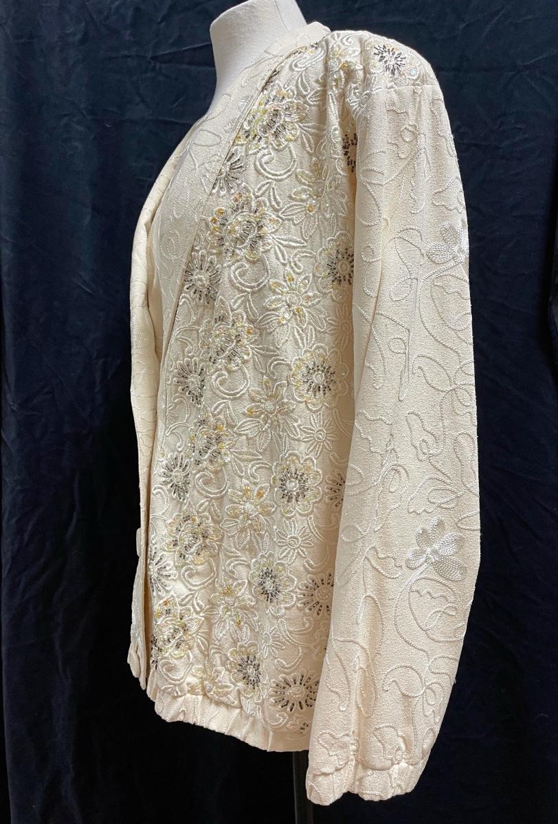 Lim's two piece white on white jacket & tank. White embroidered floral design on jacket with abstract swirl on tank. 100% Silk. Size large, maybe an extra large