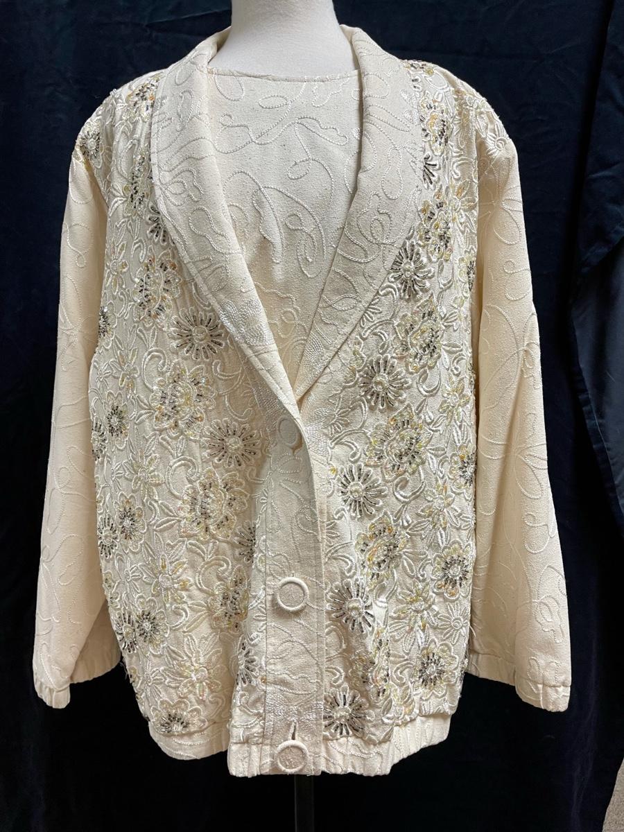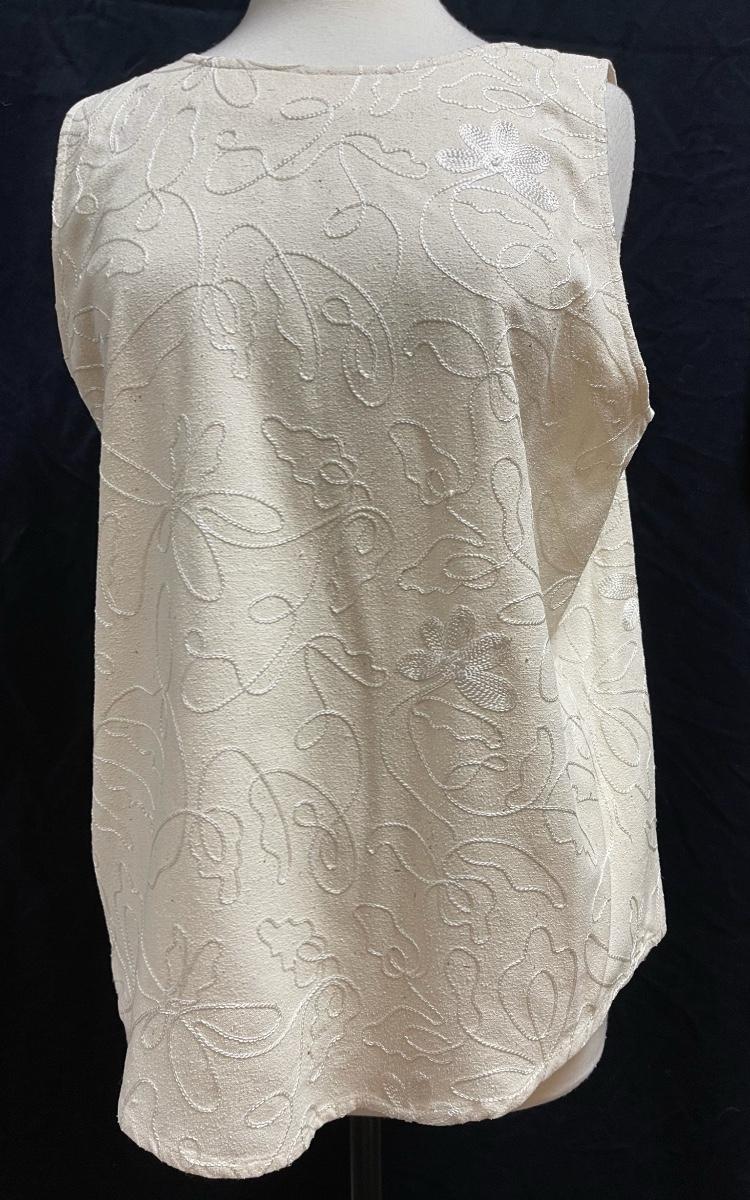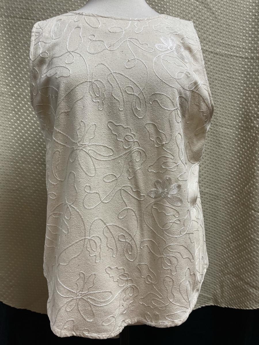 Lims Woman's Two Piece Flower Embroidered White on White Tank with Jacket