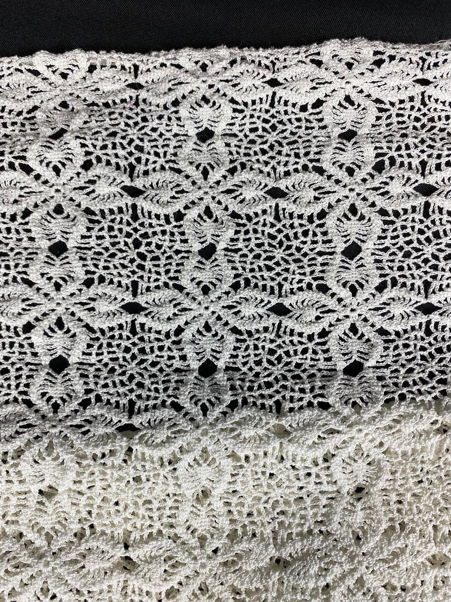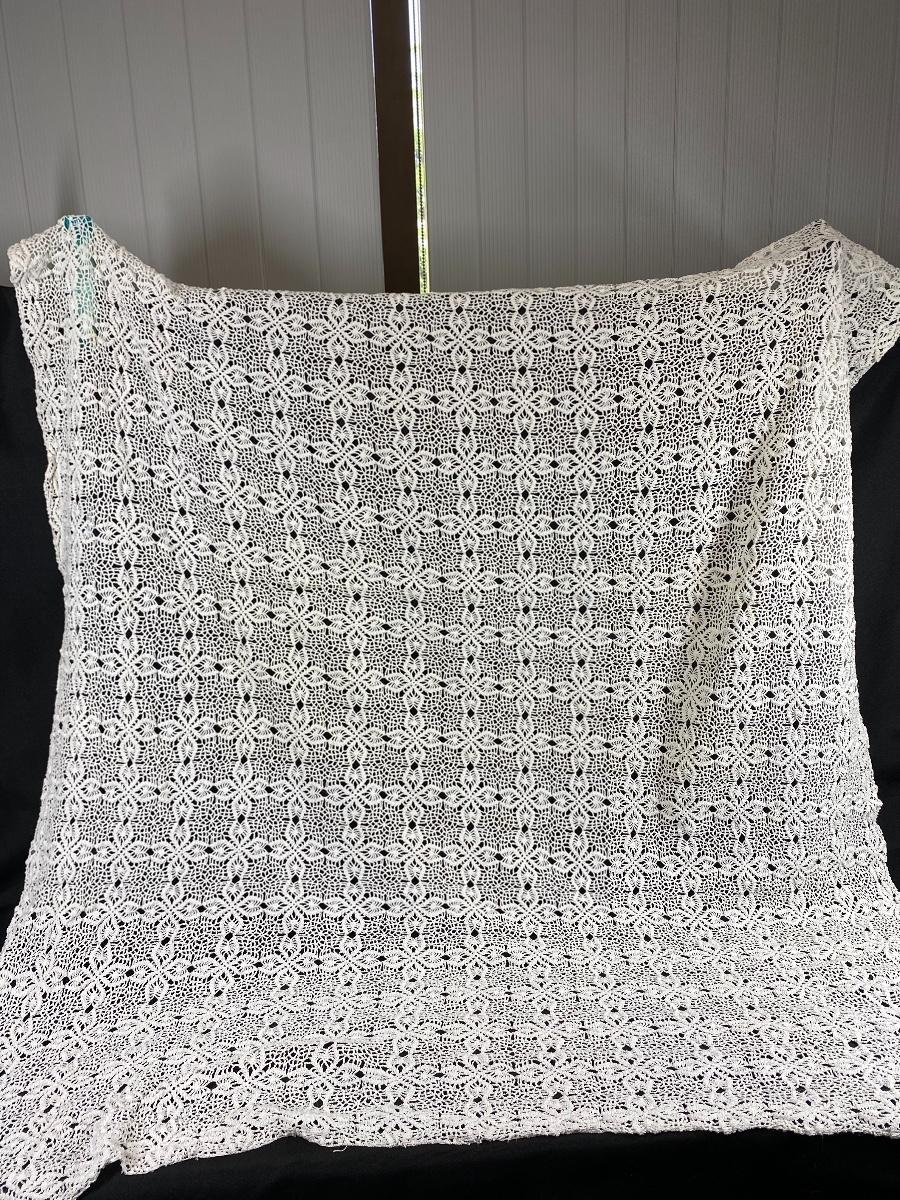 Ornate dainty lace table cloth. Rectangle about 4x6 . Some light spots and discolor, no holes.