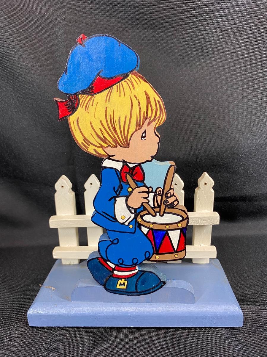 Handmade by previous owner, Precious Moments themed drummer boy napkin holder. Nicely done, in good condition.