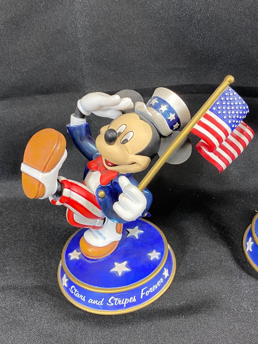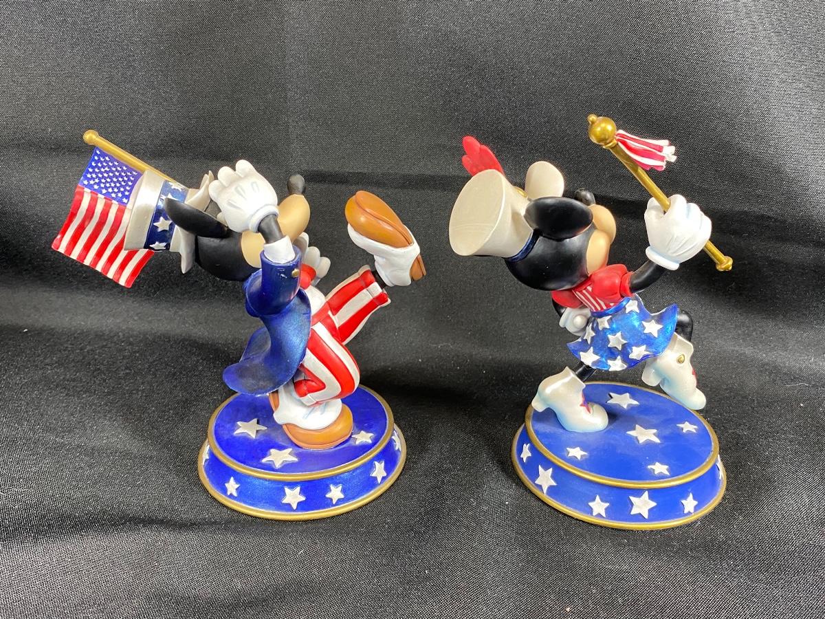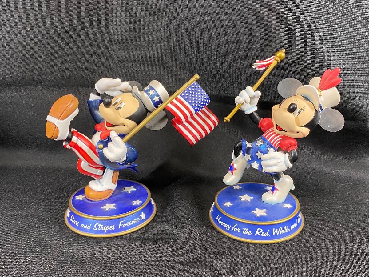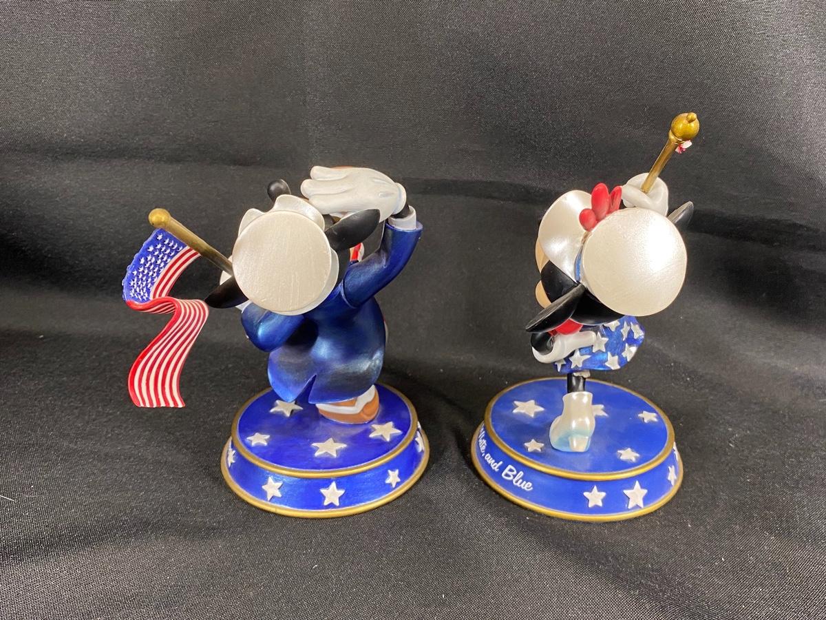The Danbury Mint and Disney patriotic 4th of July Mickey and Minnie Mouse figurines. Both in great condition. About 8" size.