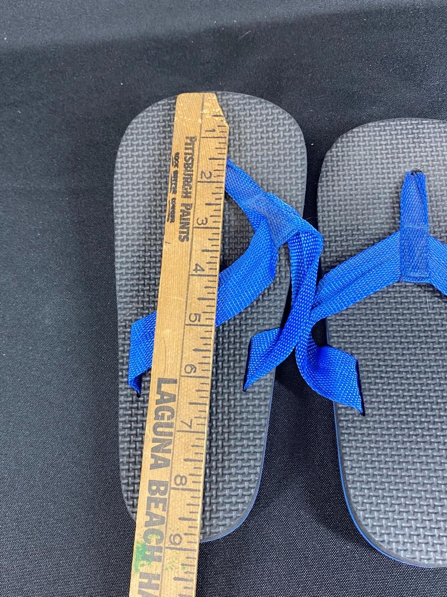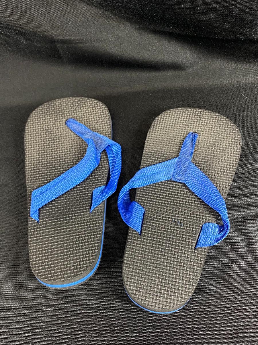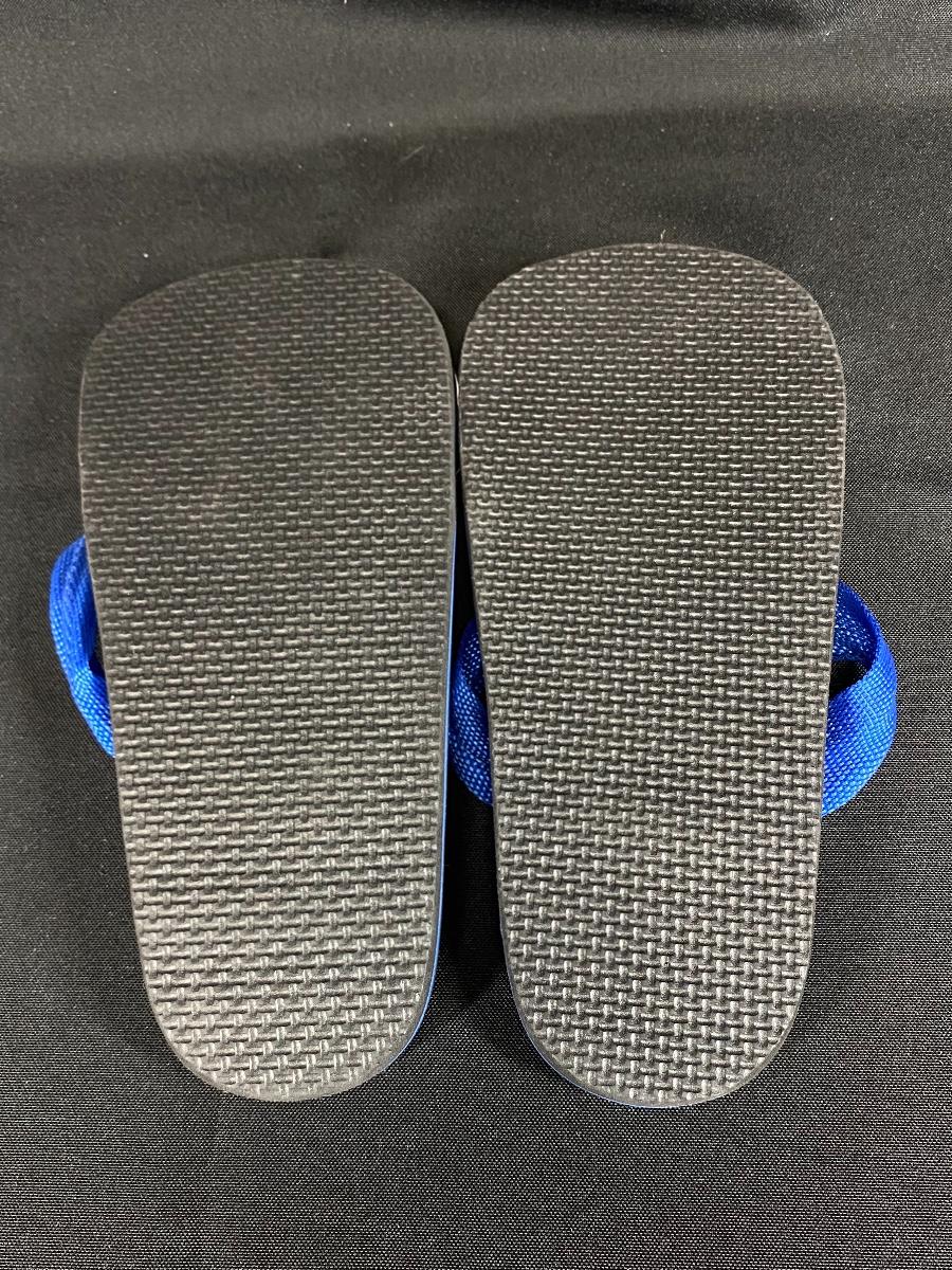 Retro black & blue flip flops. Flat foot, no arch or curve. Good condition.