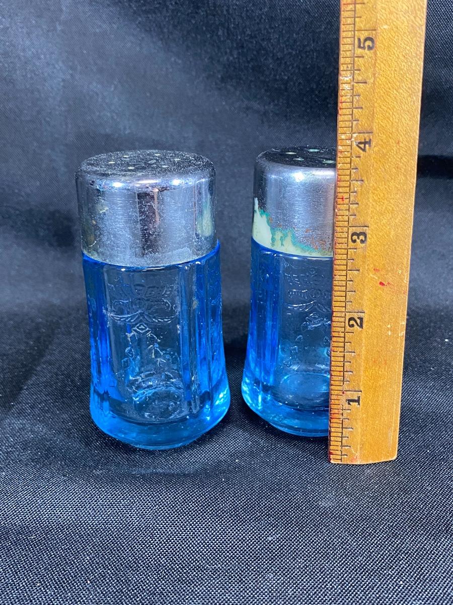Vintage Blue Glass Salt and Pepper Shaker Set