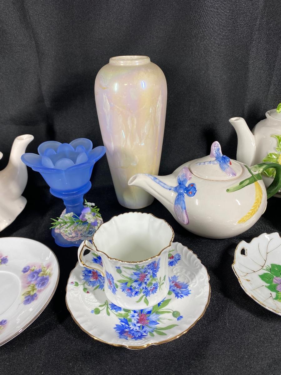 Mixed lot of china and pottery. All with shades of blue and purple. Good condition, may have some crazing. See photos.