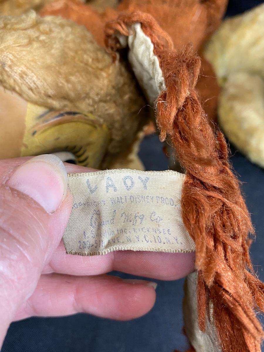 Lot of Vintage Plush Animals Disney Lady Dog, Rabbit, Bear, Clock