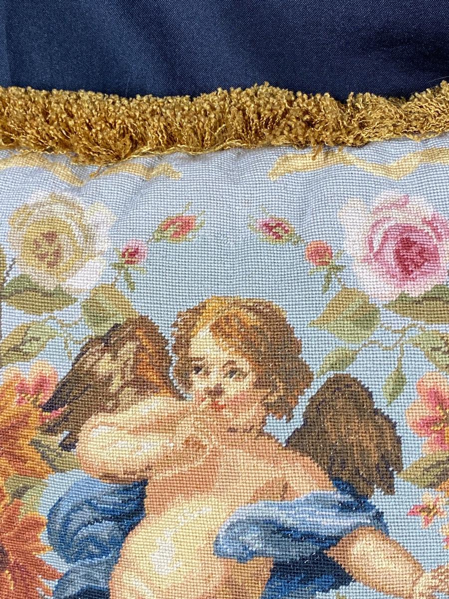 Floral Cherub Needlepoint Throw Pillows