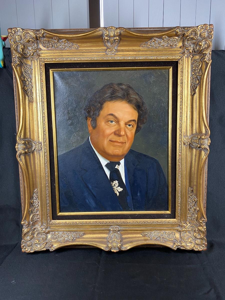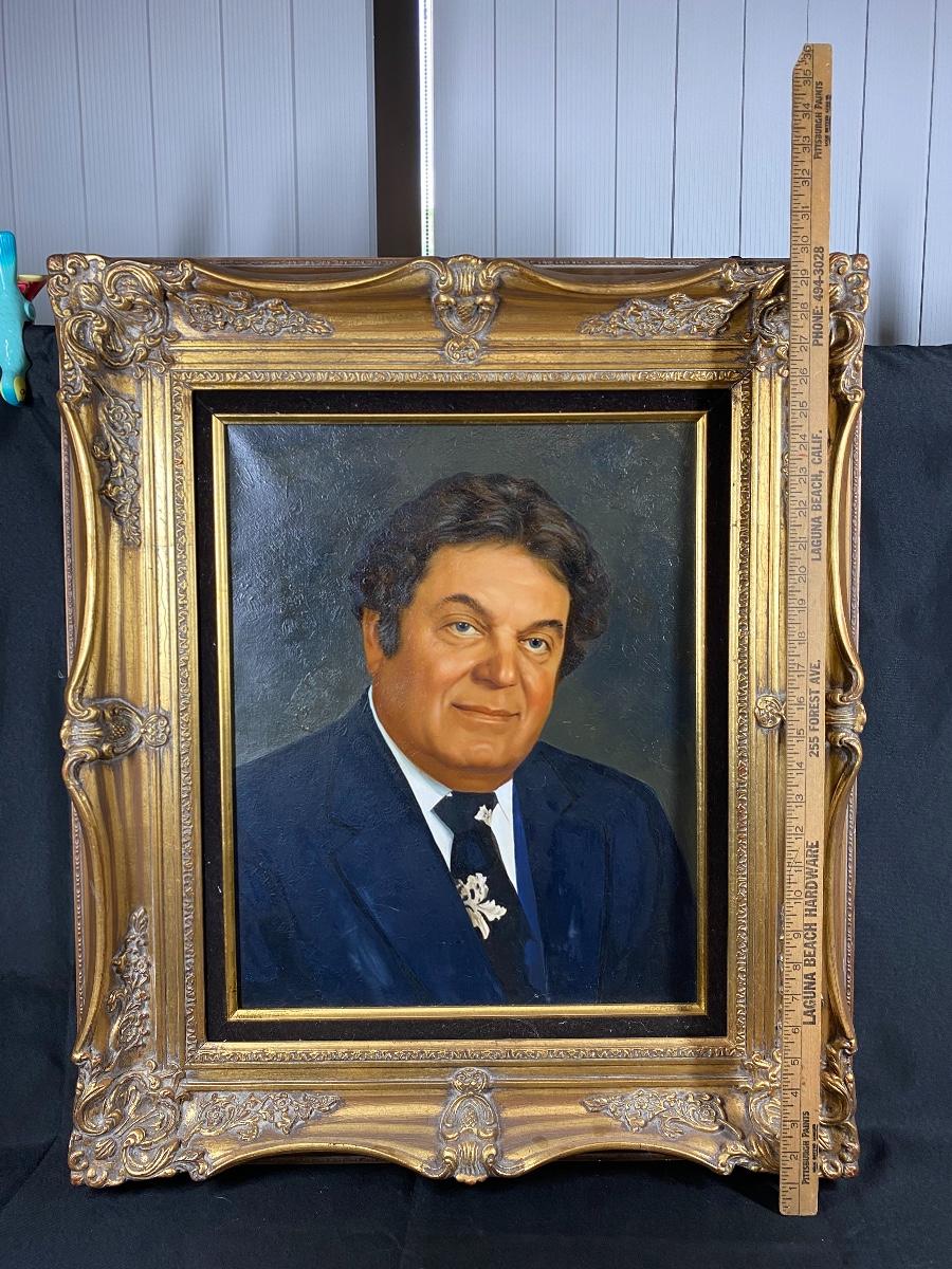 Vintage portrait painting of a important distinguished looking man. Nicely framed. Looks to be from the 1960s maybe. Frame about 26"x30" size.