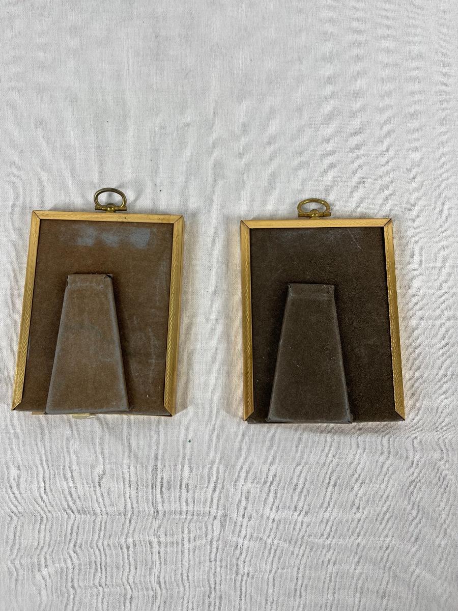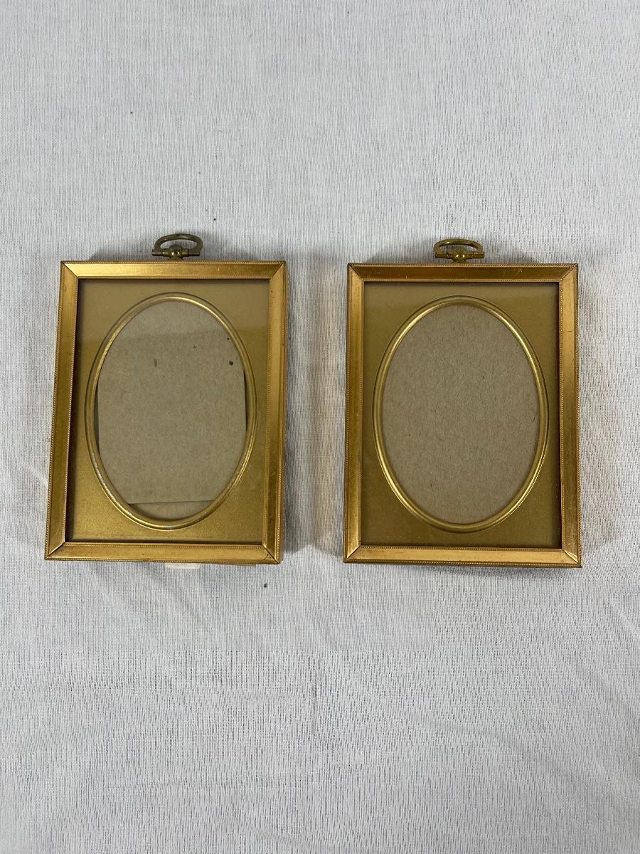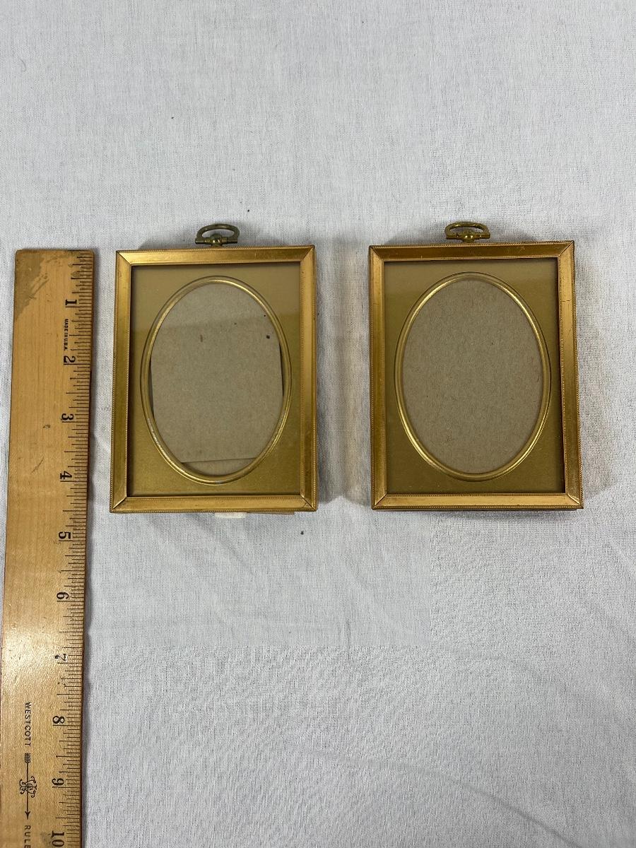 Matching set of vintage picture frames. Small under 5" size. Can be hung or table set.