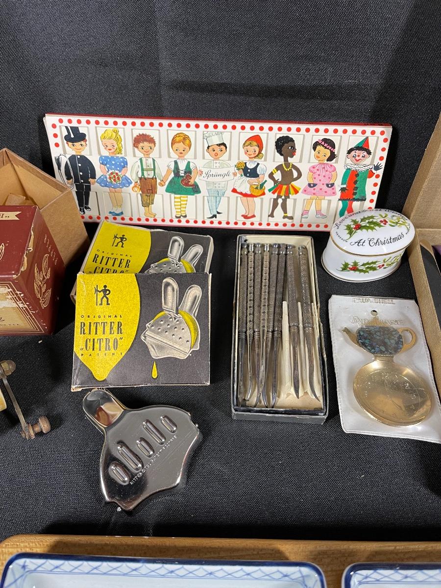 Mixed lot of vintage kitchen items. Some in original boxes.