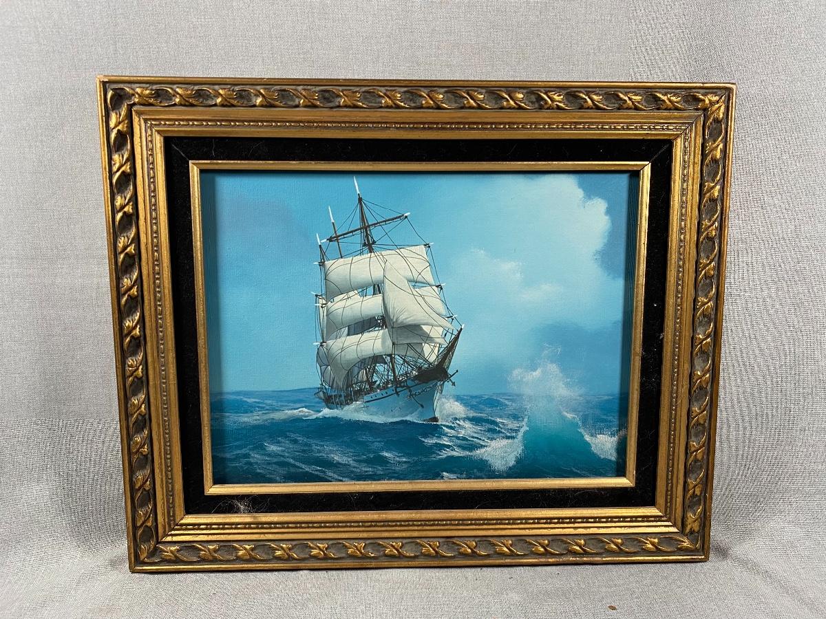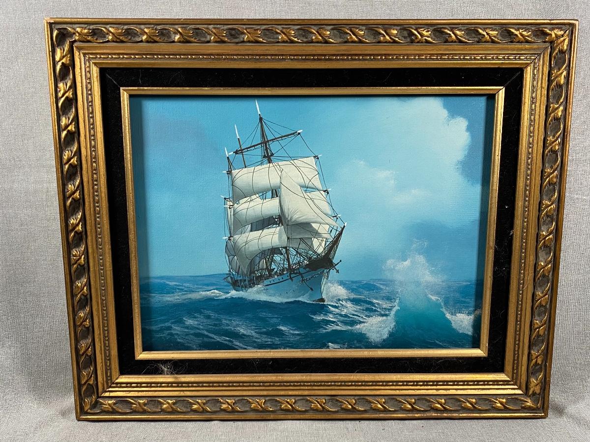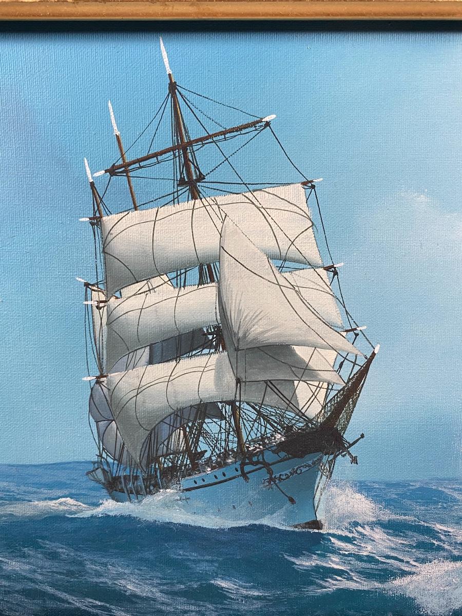 Sailing ship oil painting by marine artist Danny Hahlbohm. Nicely framed, great condition.
