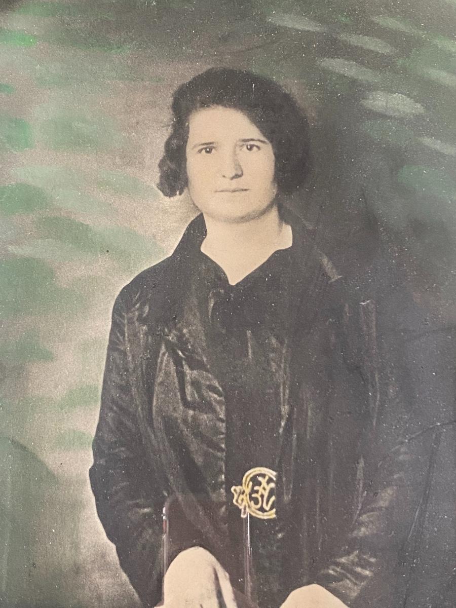 Antique bubble glass framed photo of a woman. From the early 1900s. Good antique condition.