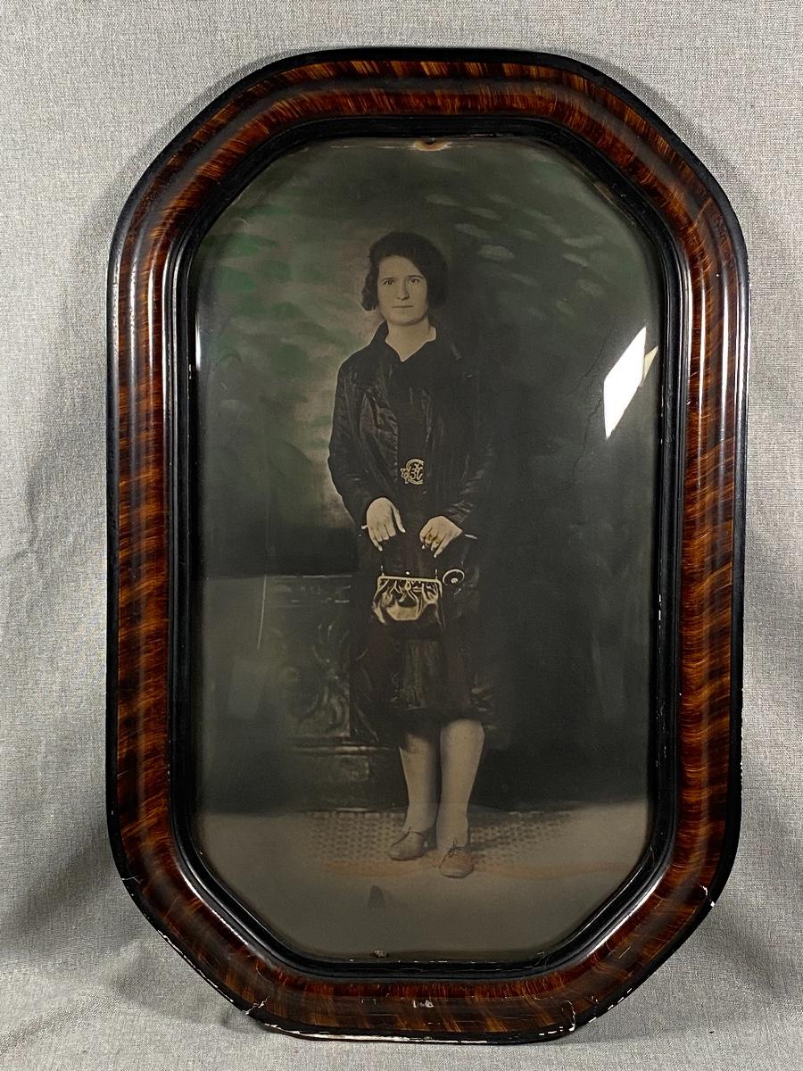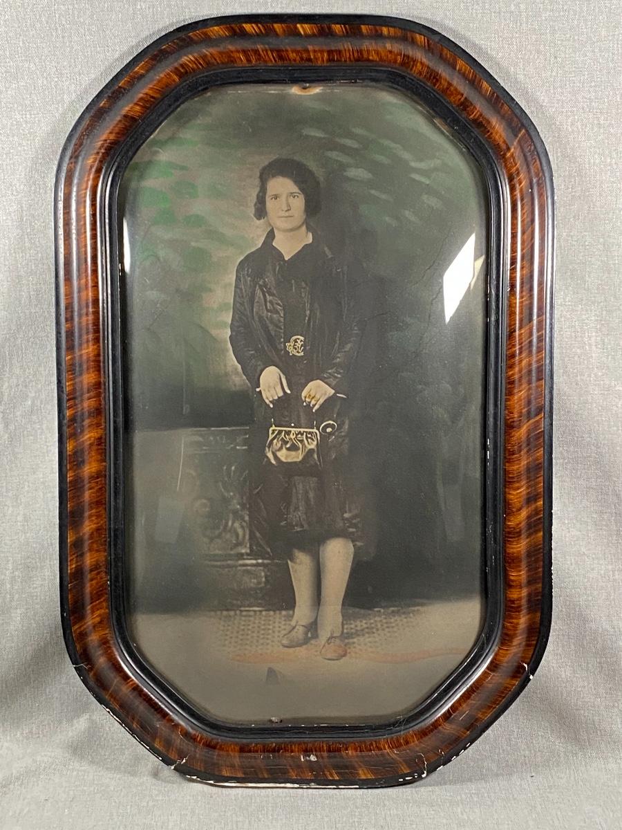 Antique Framed Photo of a Woman Bubble Glass Frame Early 1900s