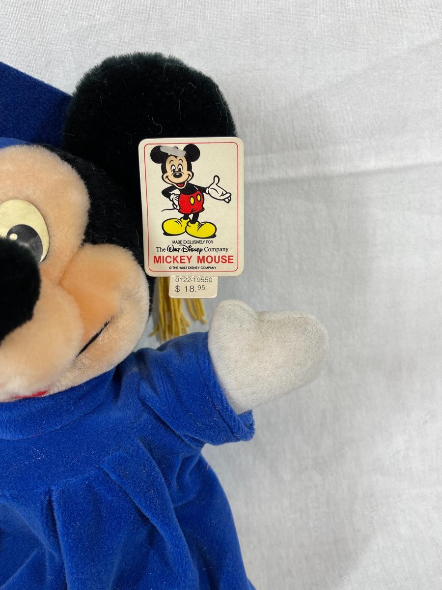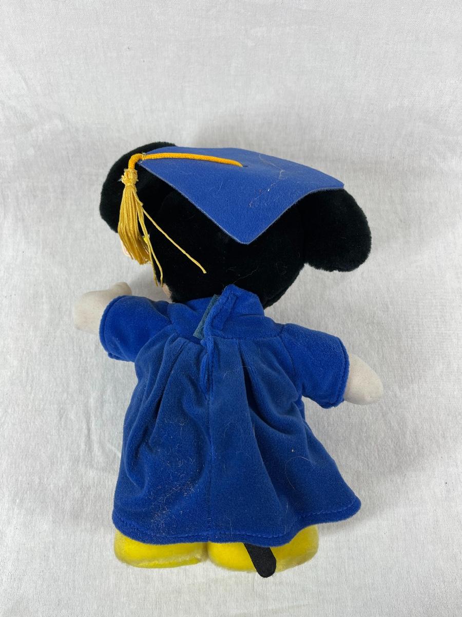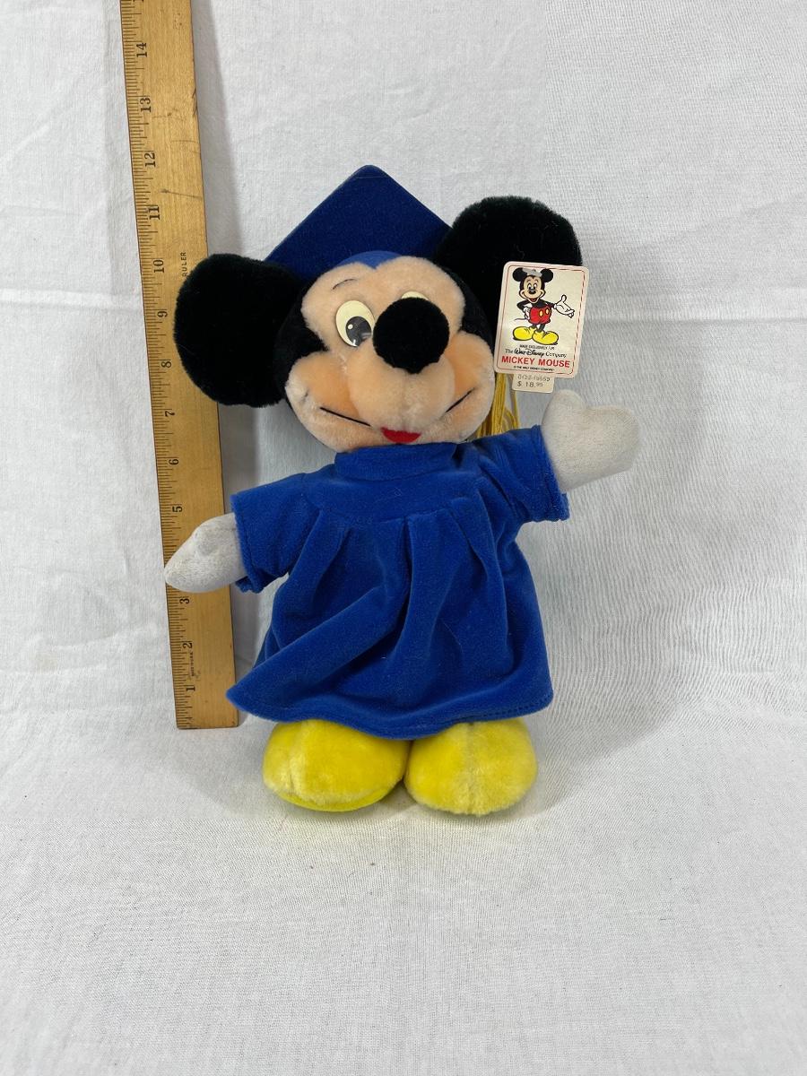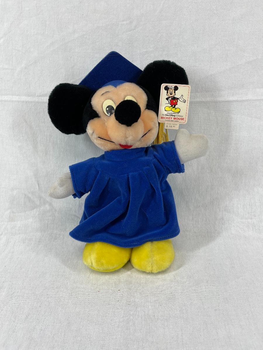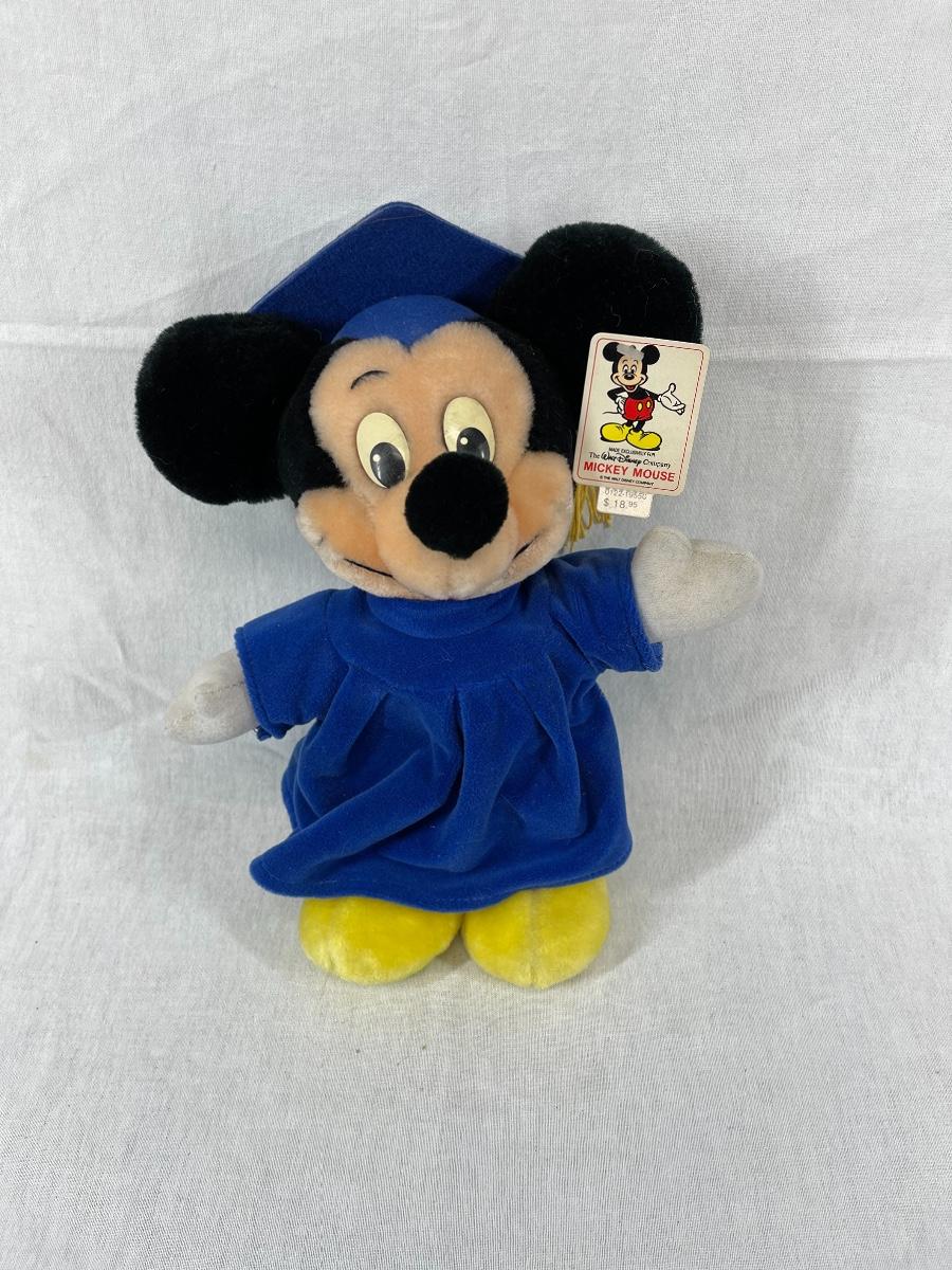 Graduate Mickey Mouse plush. Still has original hang tag attached. Good condition. May be dusty from display and storage.