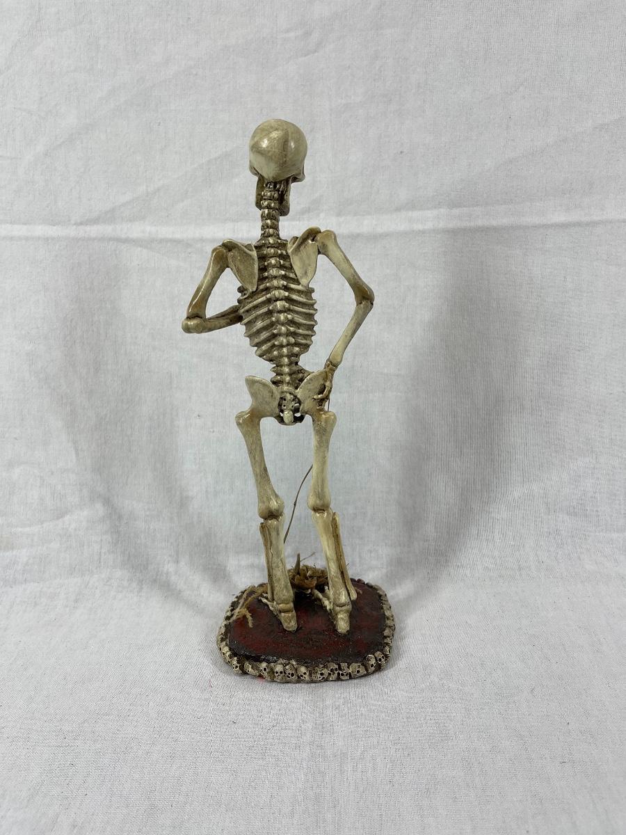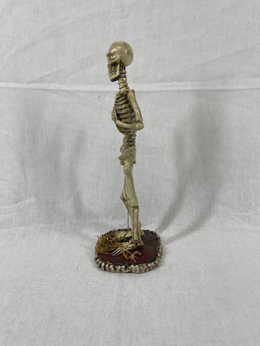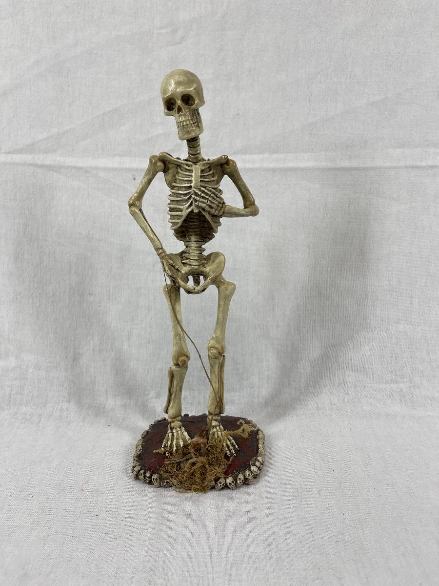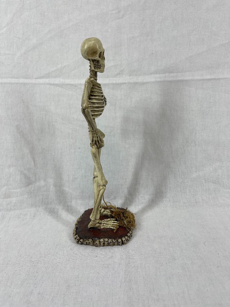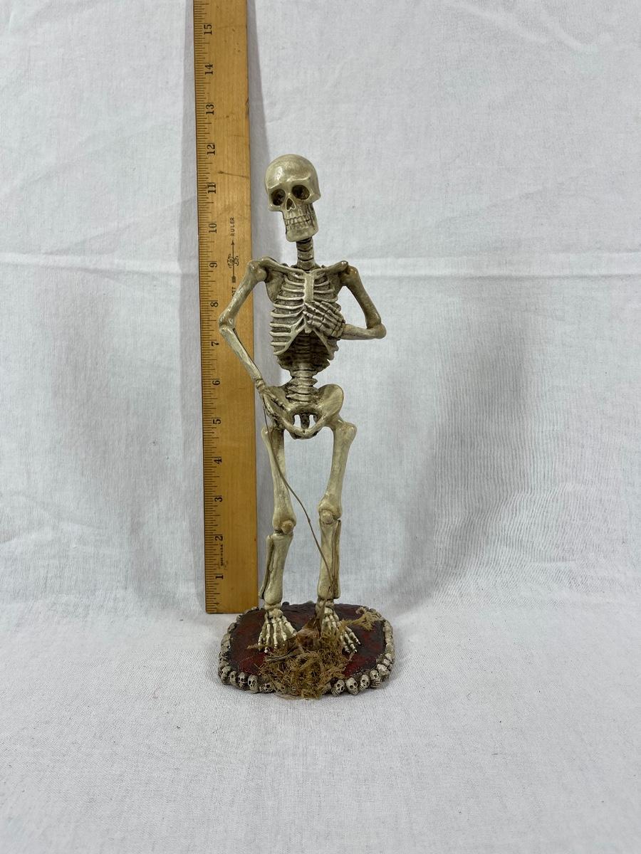 Standing skeleton figurine. About 12", made of hard resin. Good condition.