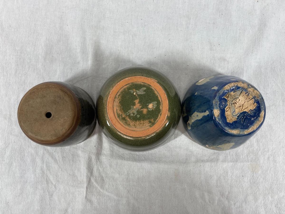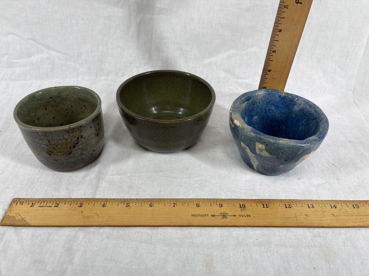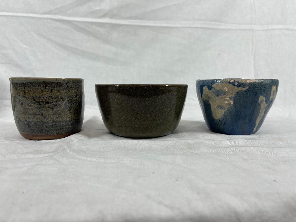 Set of 3 pottery planter pots or small bowls. Only about 3" size.