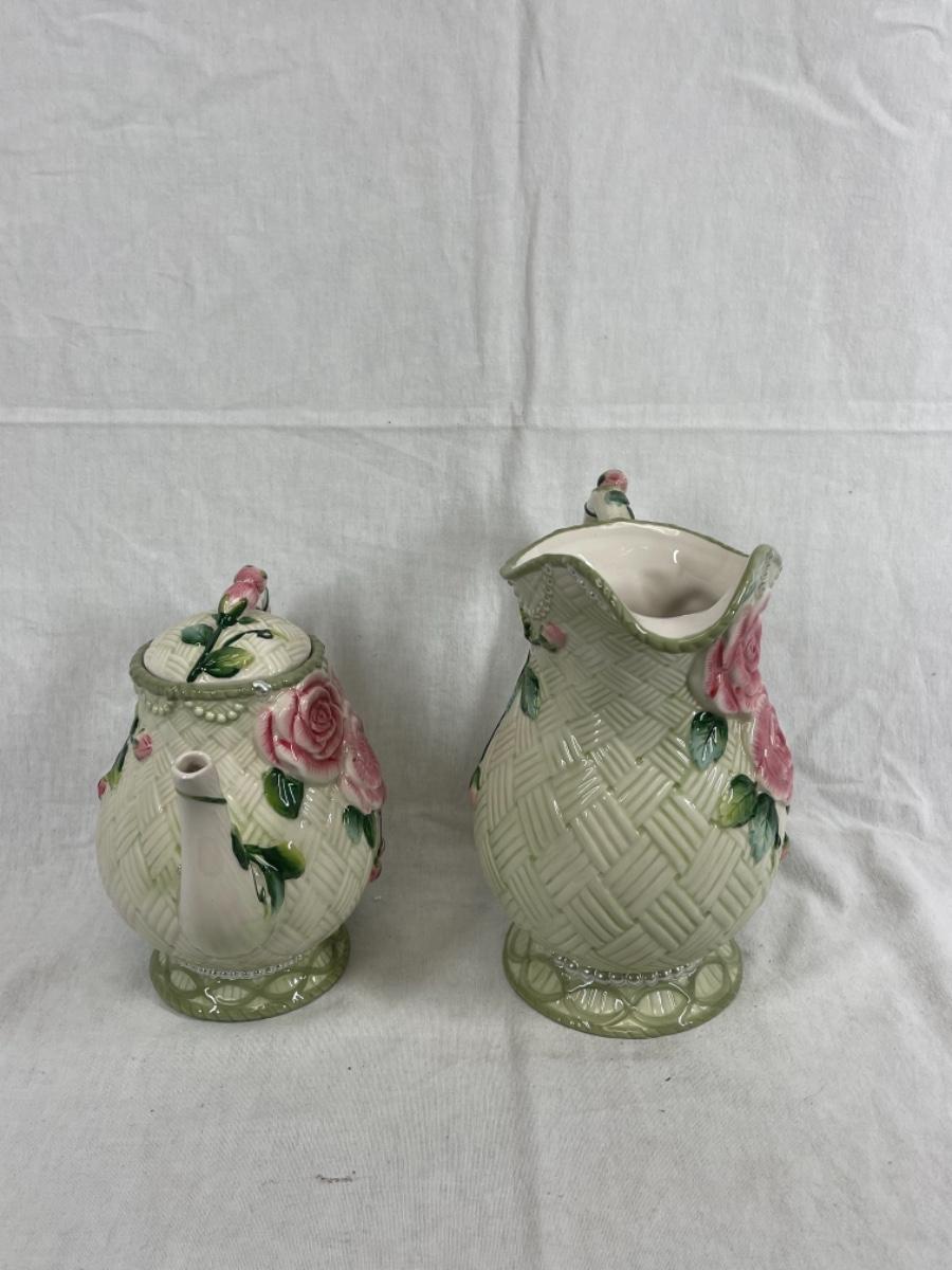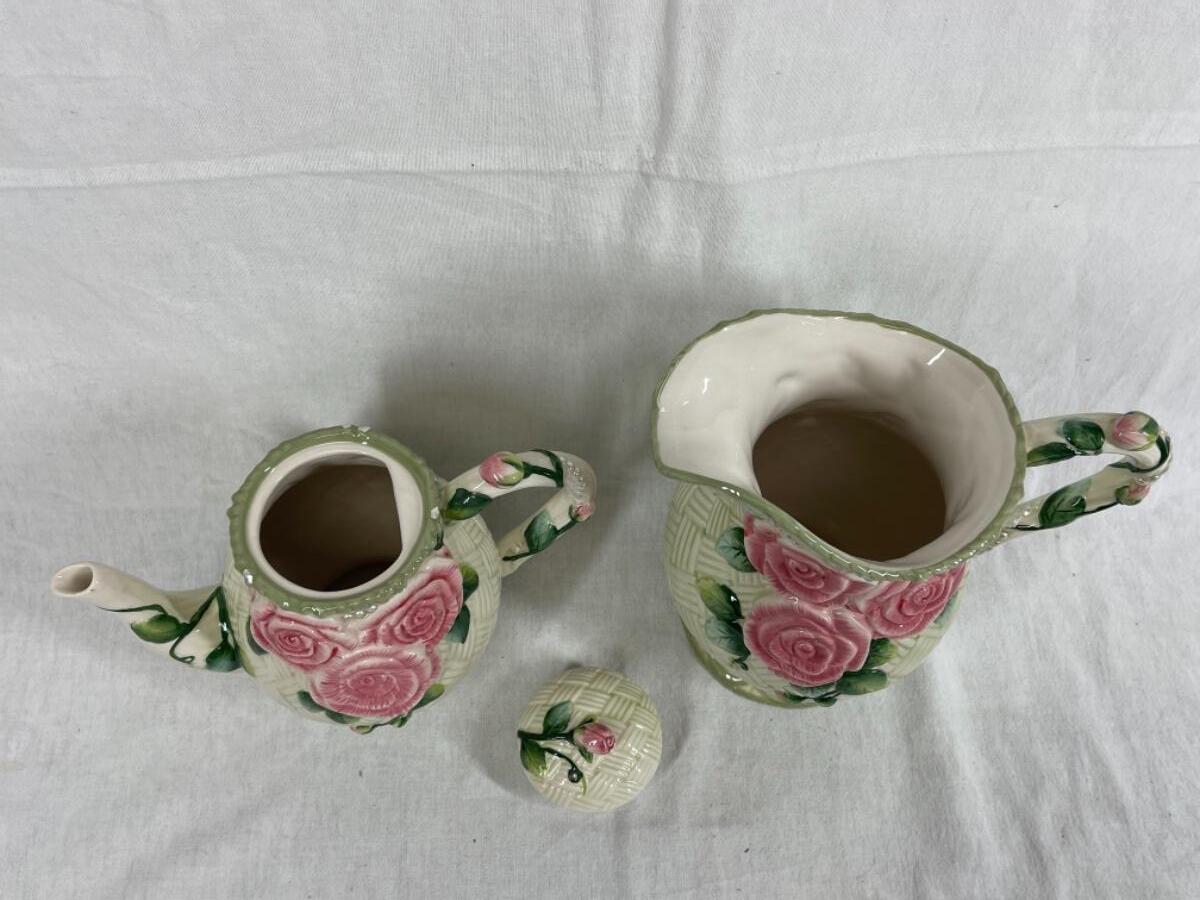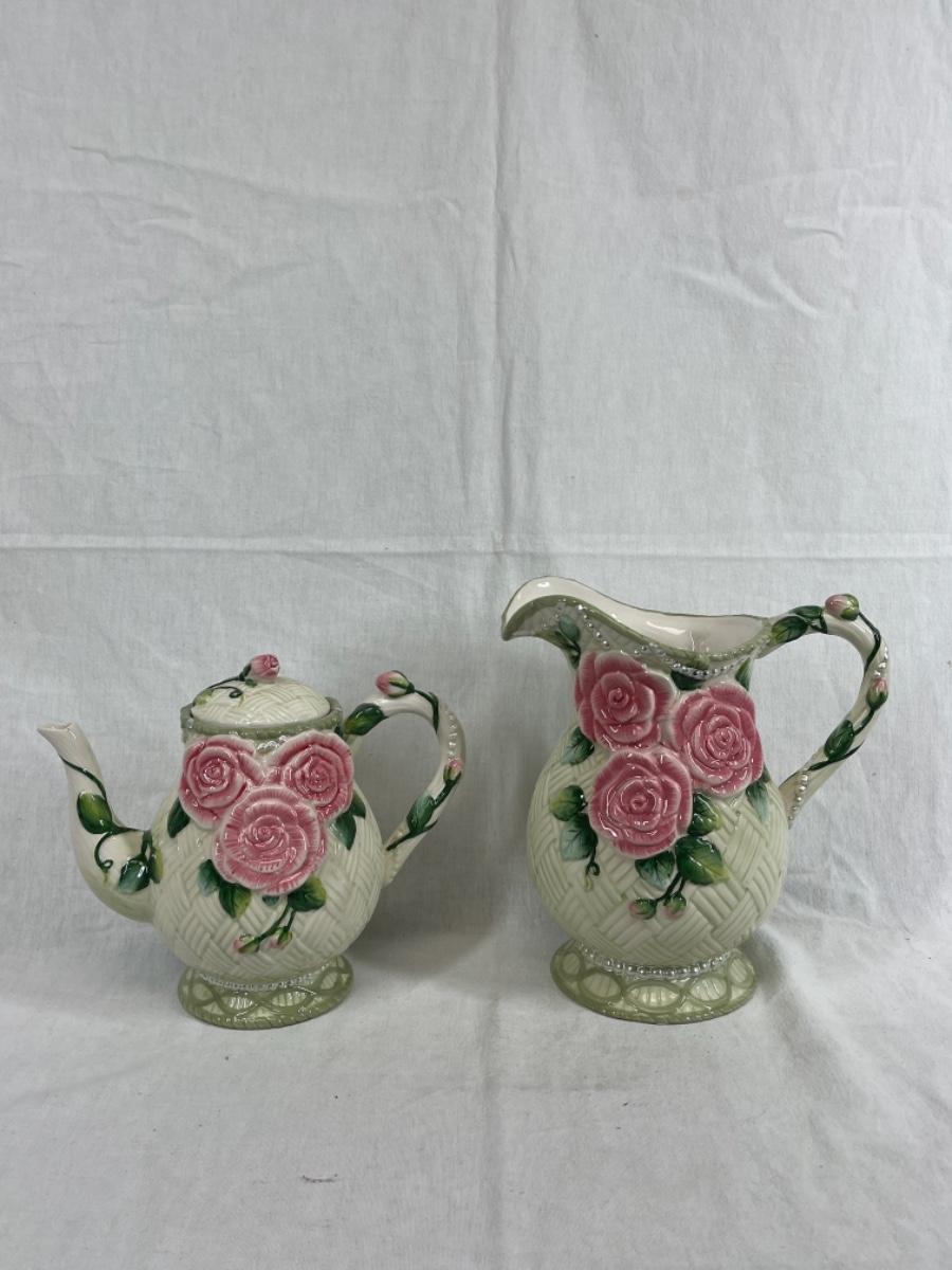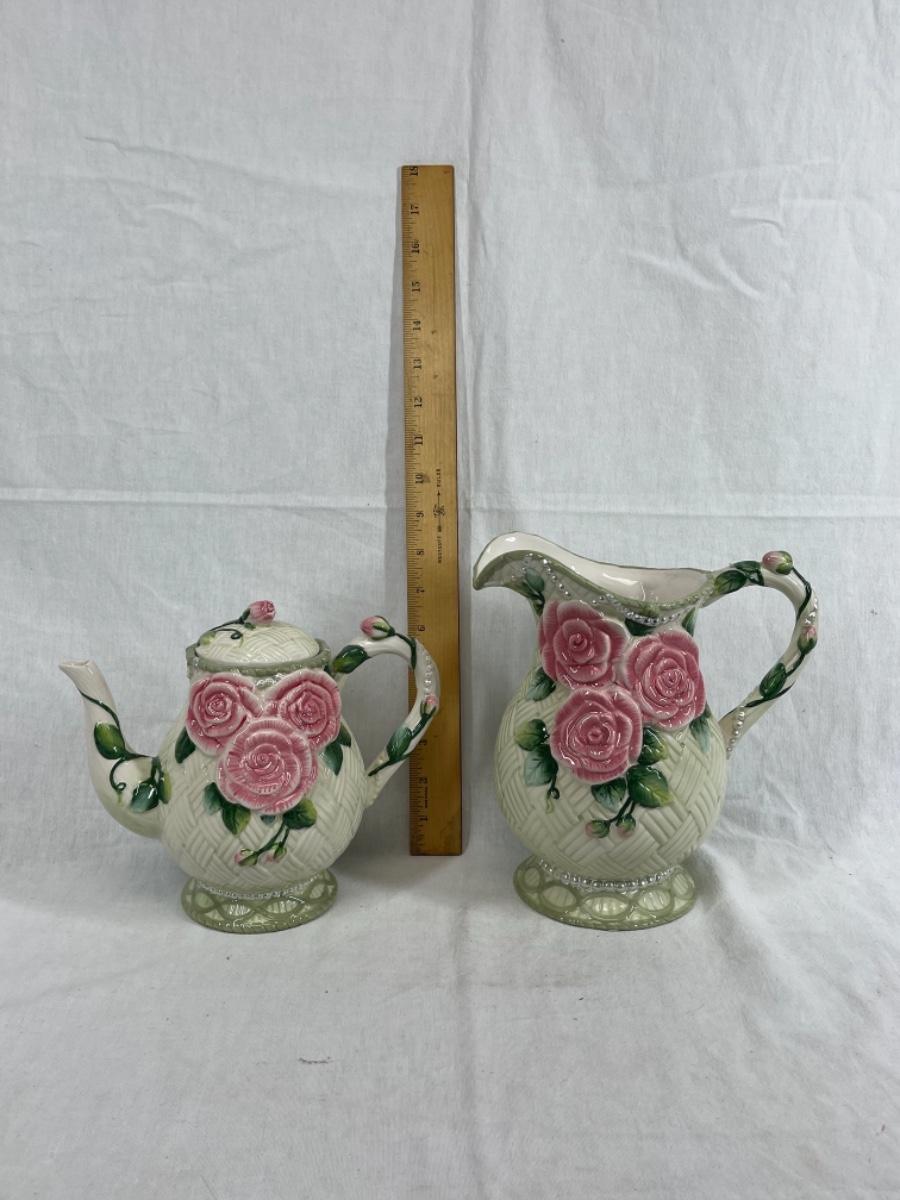 Ceramic Pink Rose Tea Pot and Water Pitcher