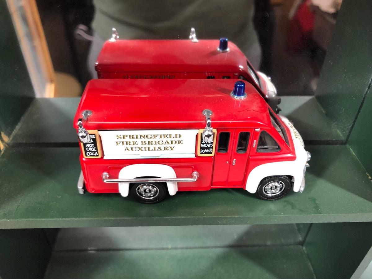 Mirrored Display Cabinet with Matchbox Models of Yesteryears Firetruck Fire Department Vehicles