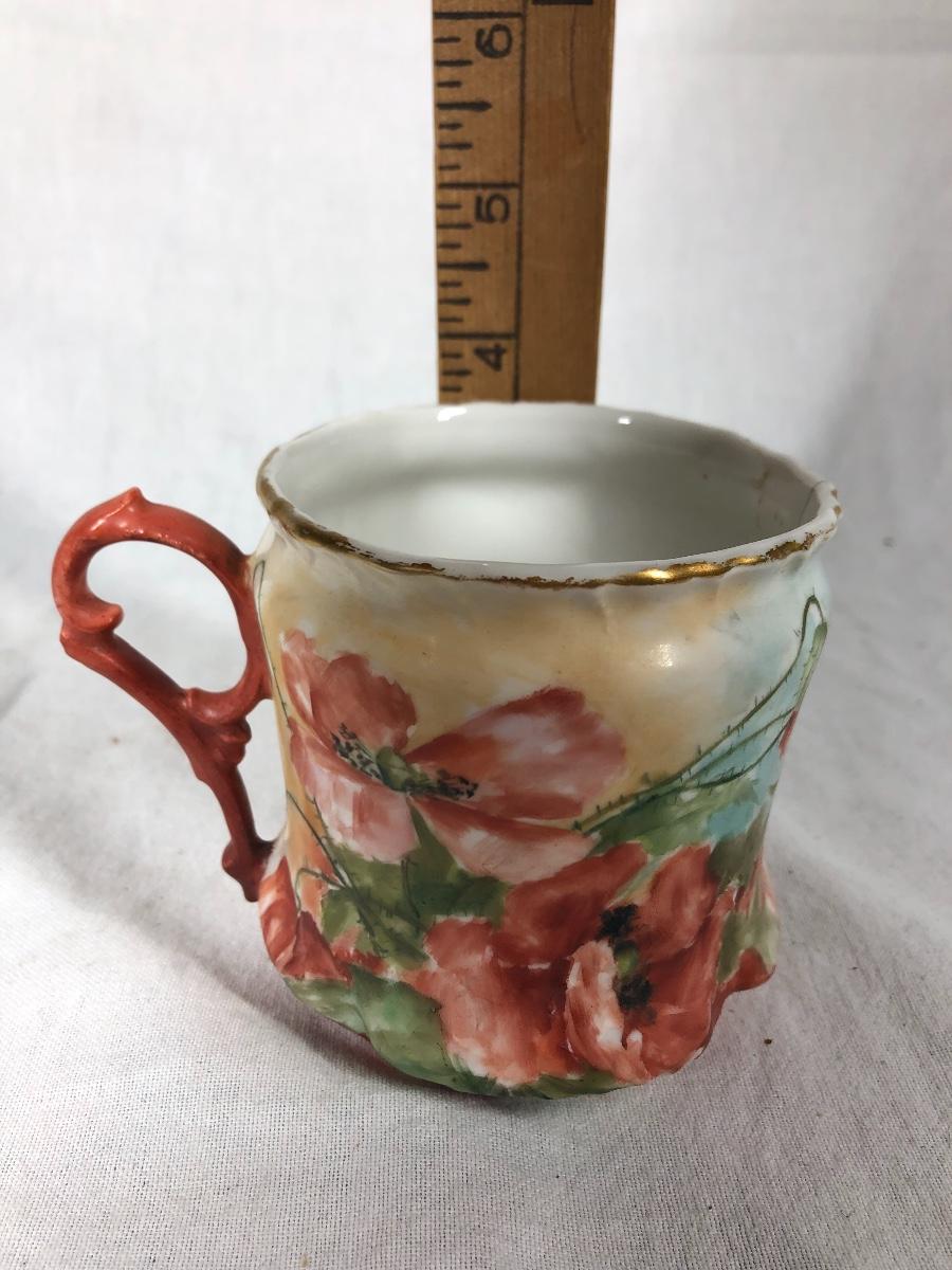 Antique Bavarian coffee cup. Orange floral pattern. In good antique condition.
