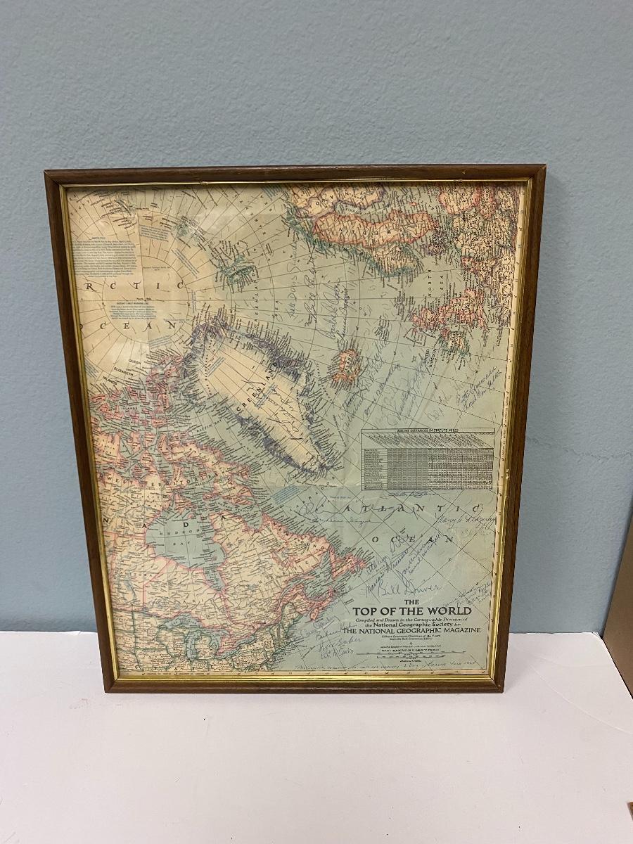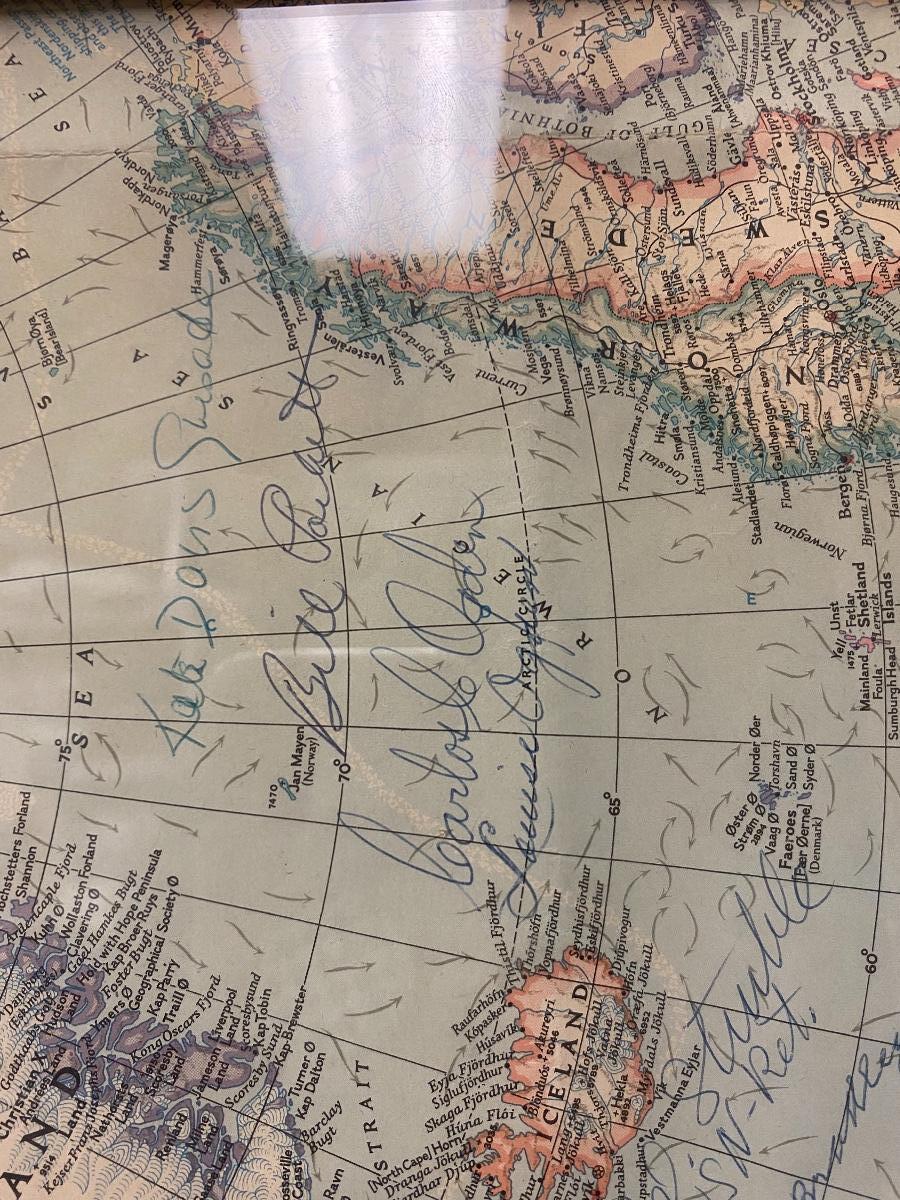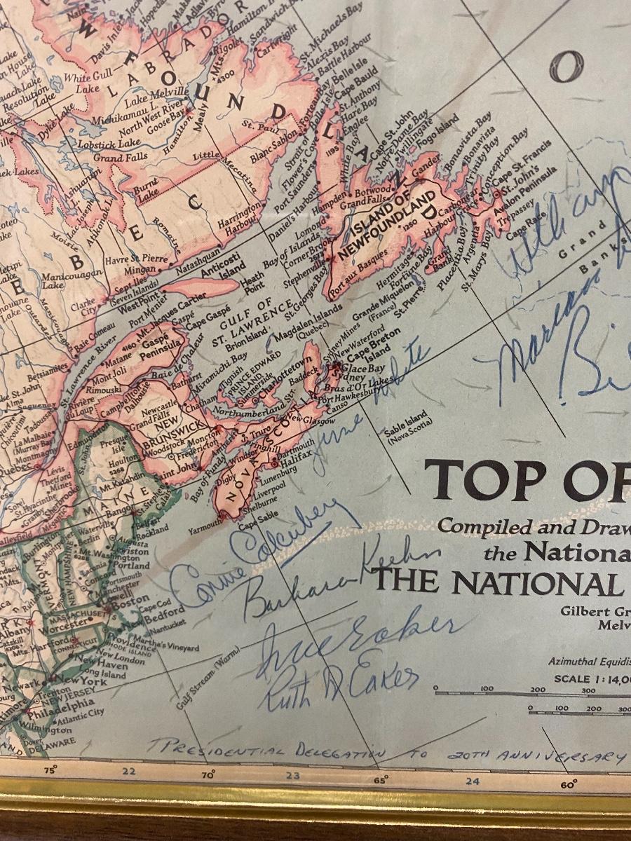 RARE ONE OF A KIND!! Signed Top of World Map from the Presidential Delegation to 20th Anniversary D-Day France in June 1964. Covered in signatures of WWII veterans, Medal of Honor recipients, and others. From the estate of A Medal of Honor recipient, Walter Ehlers.
