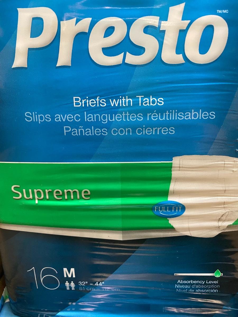 4 Packs Presto 16 Count Breifs with Tabs Diapers Size Medium