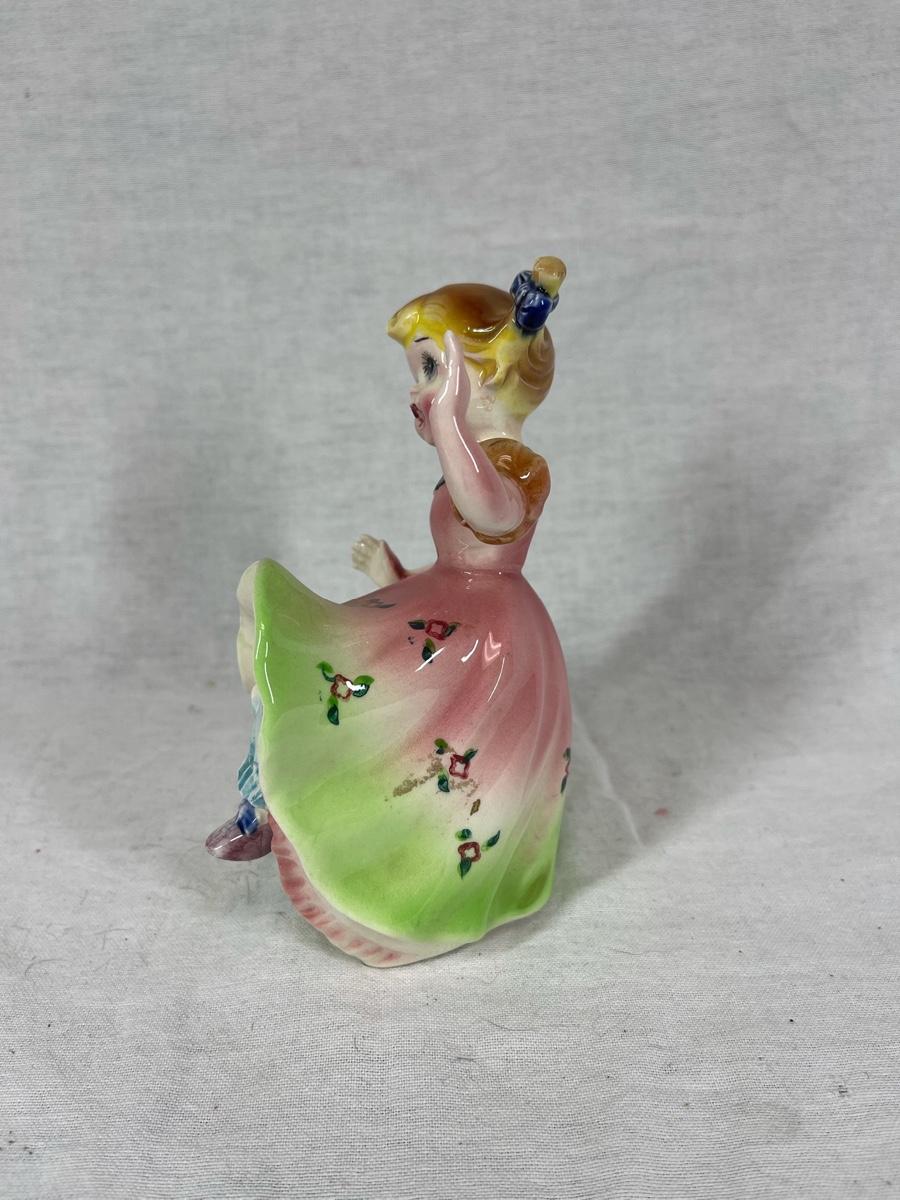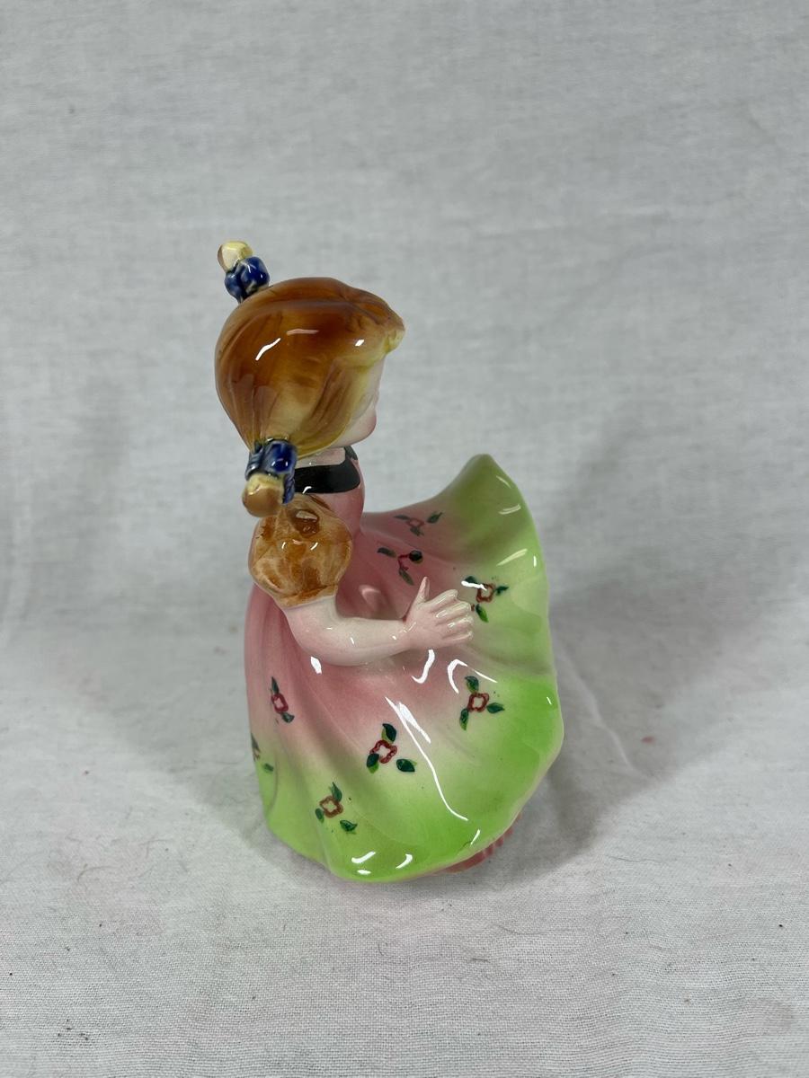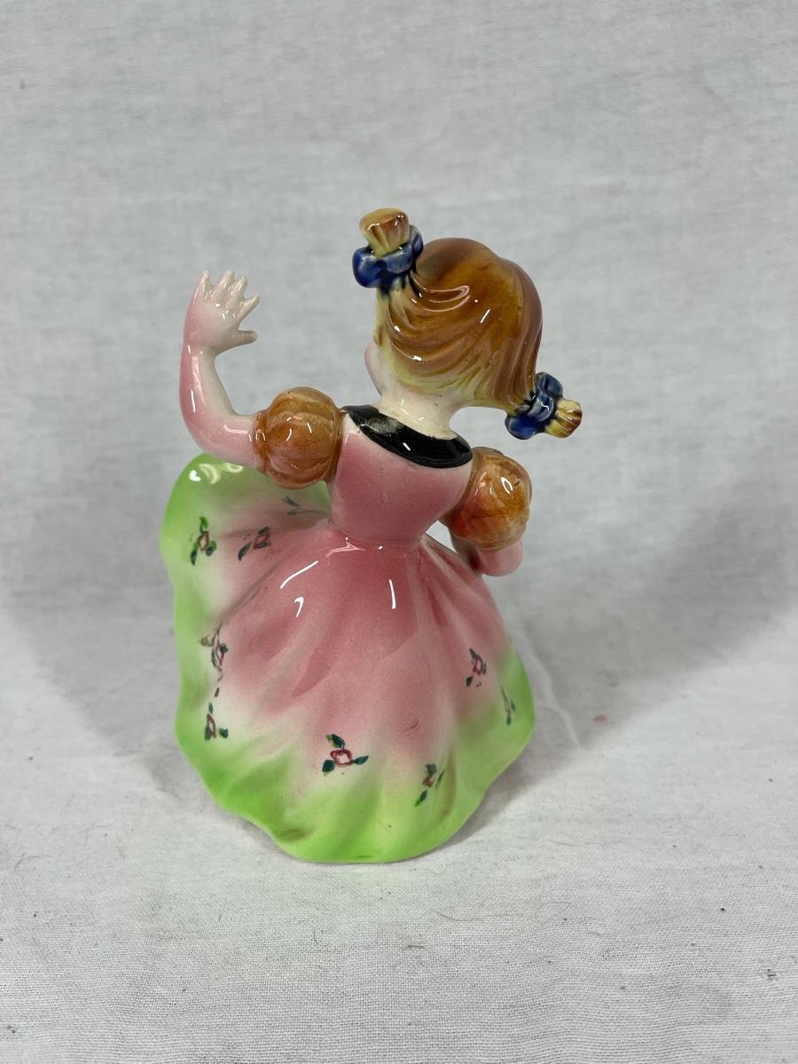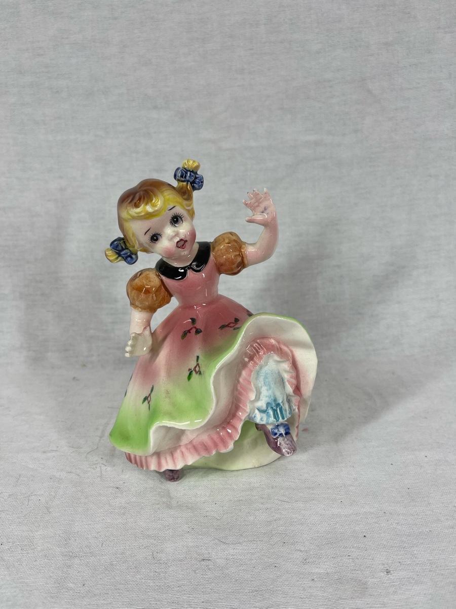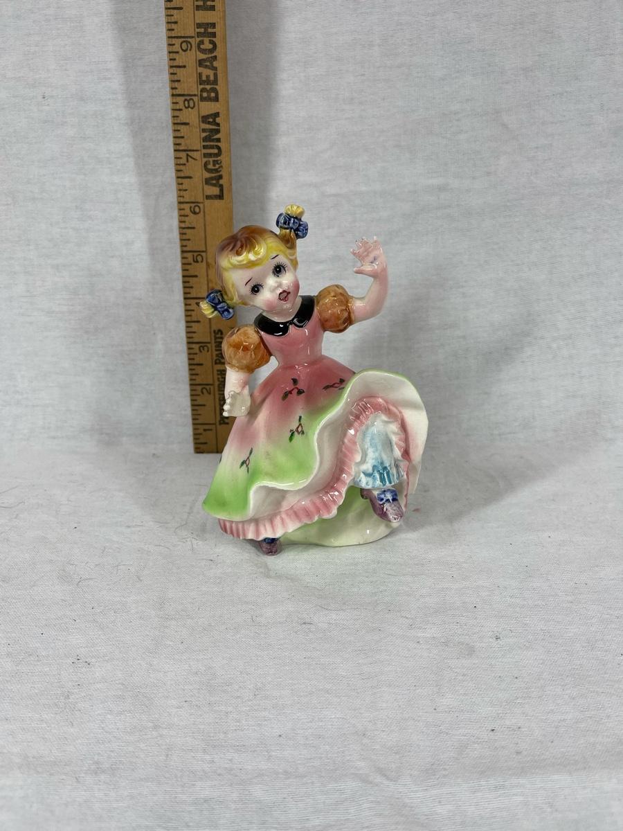Vintage porcelain figurine of a little girl dancing. Made in Japan. About 6" size. In good condition. Looks like a Josef Originals or Lefton figurine, but not positive of the maker.
