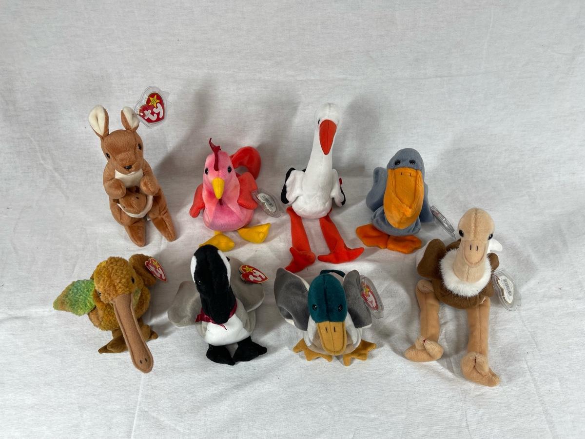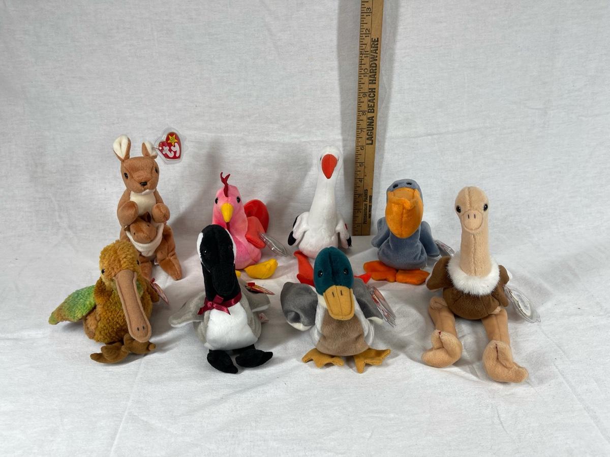 Lot of 8 TY Beanie Baby Plush Stuffed Animals Birds & Kangaroo