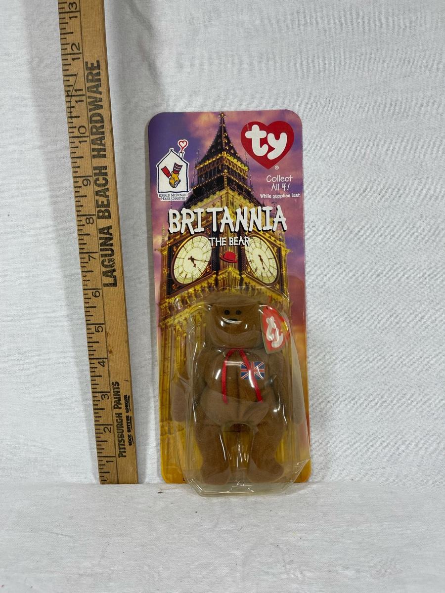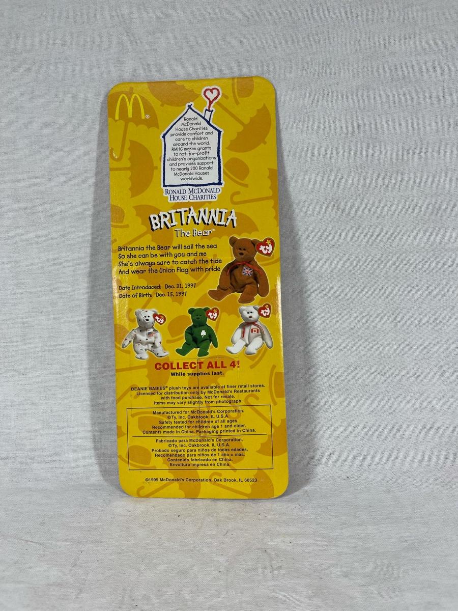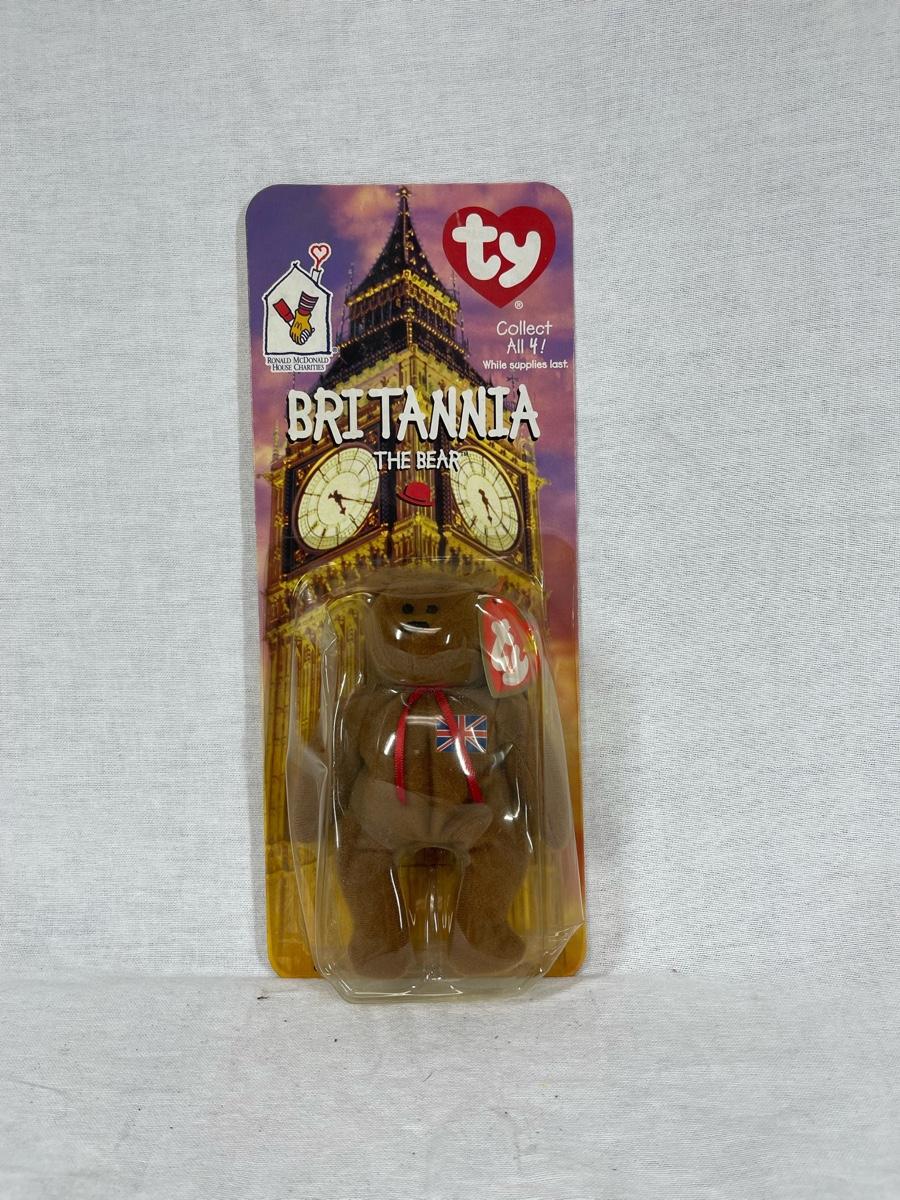 TY Beanie Baby mini Britannia the Bear. In original packaing. Released by Ronald McDonald House Charity mid 1990s.