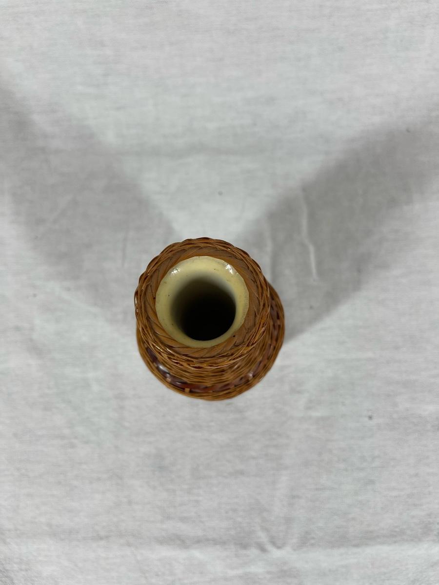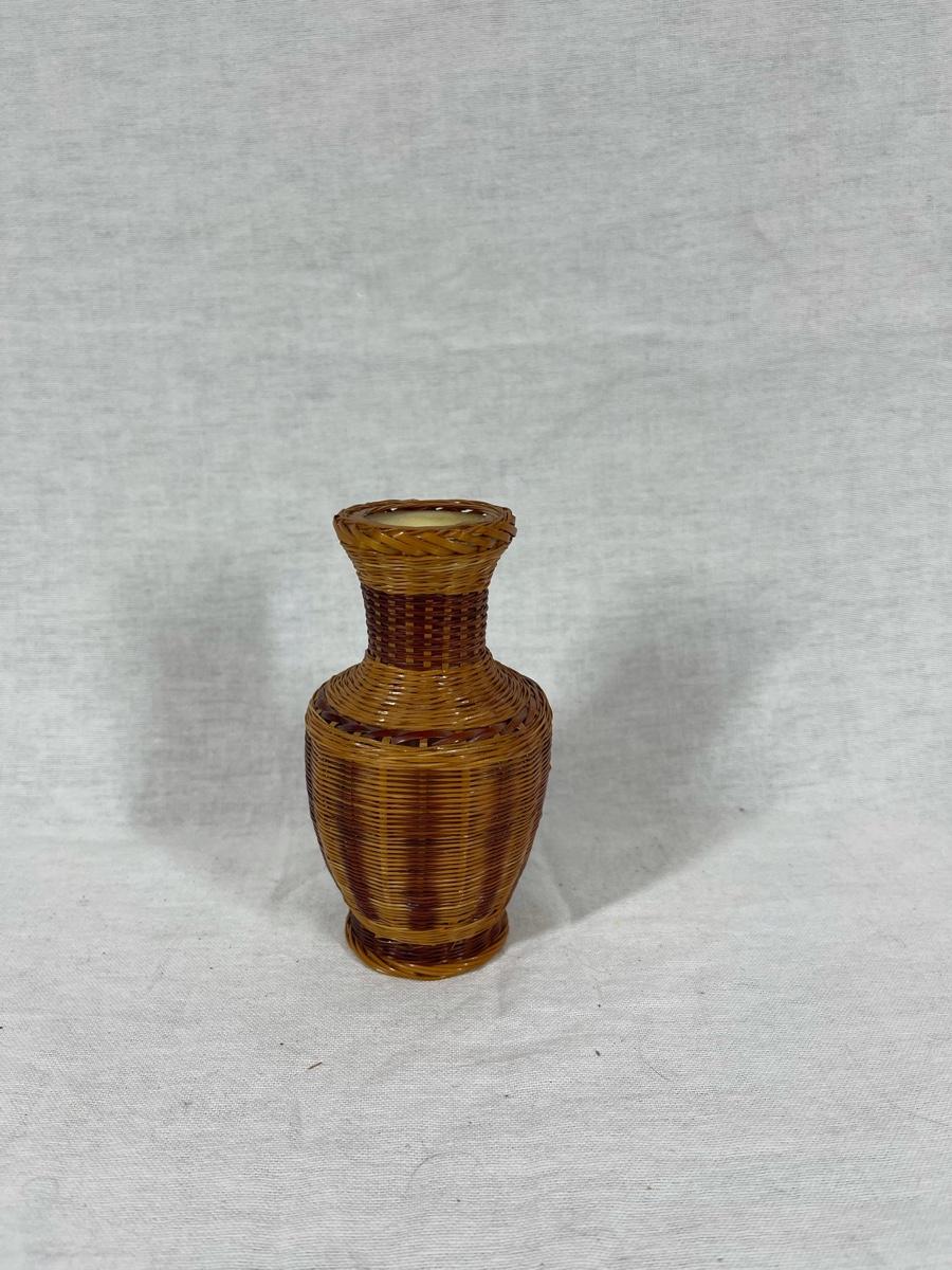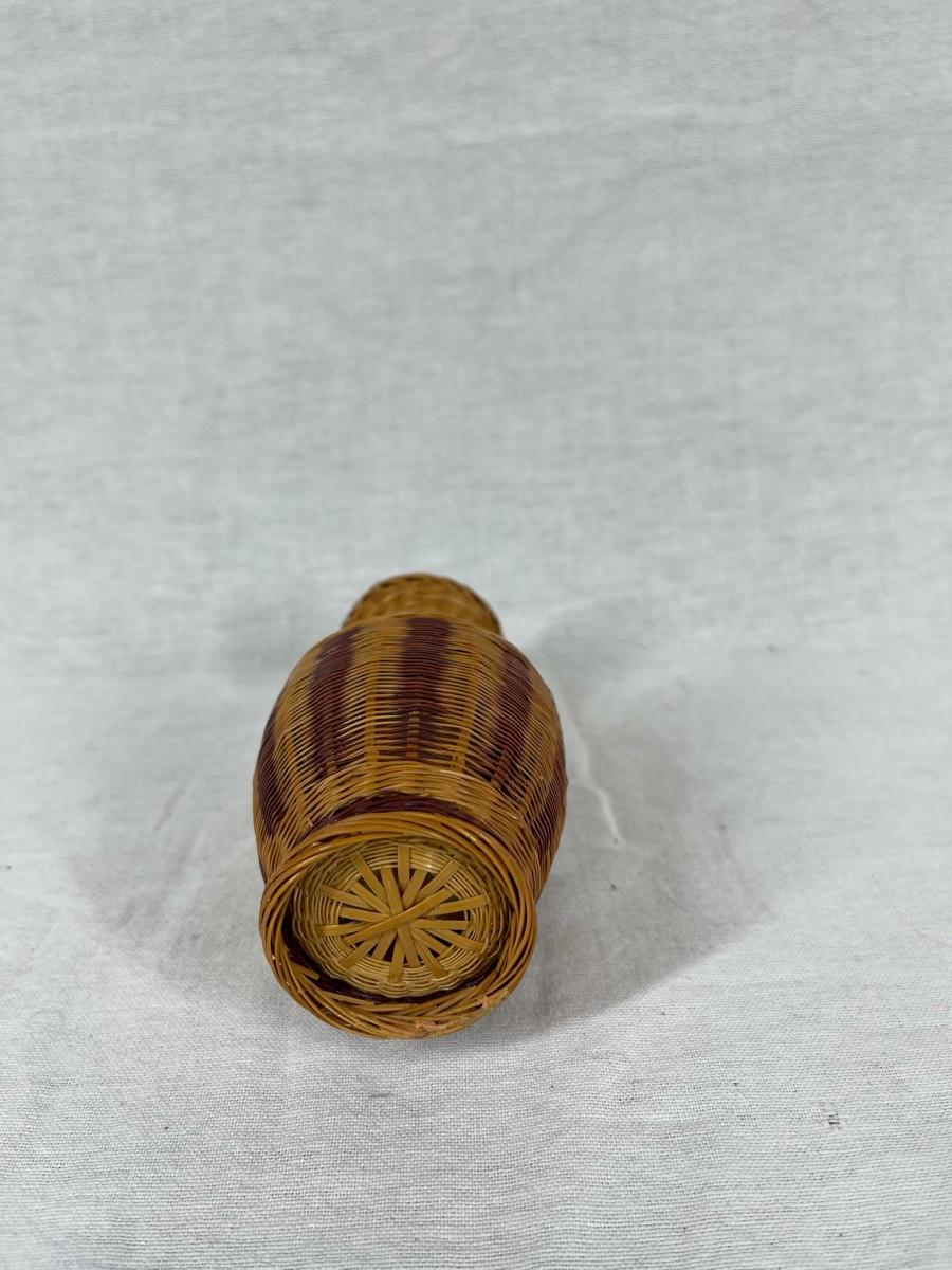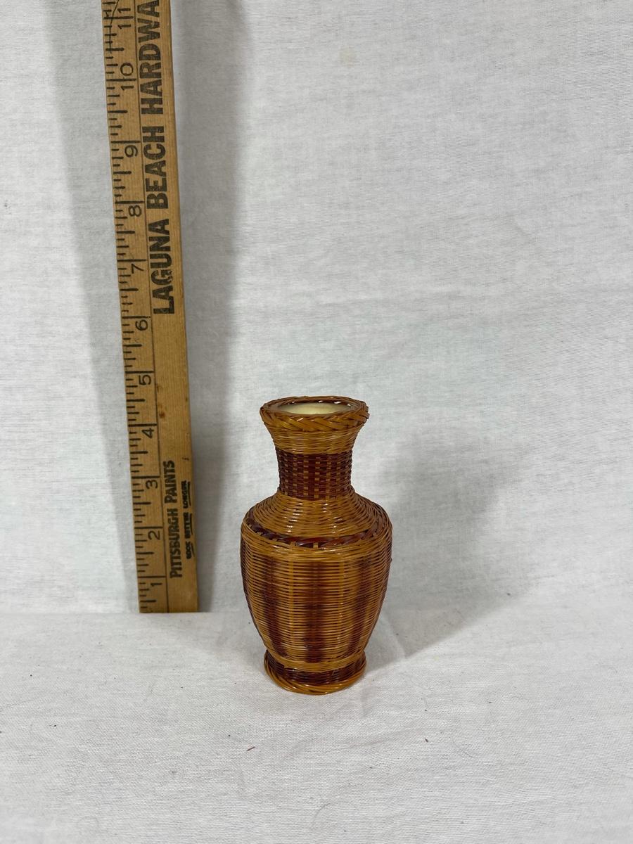 Miniature woven wicker vase urn. Good condition. About 5" size.