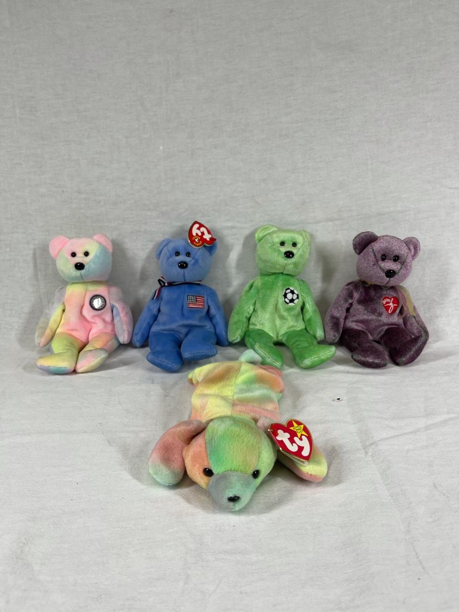 Set of 5 TY Beanie Baby Teddy Bear Stuffed Animal Plush