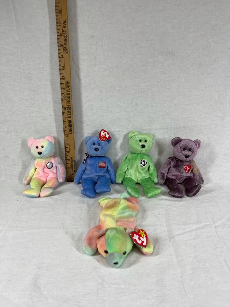 Set of 5 TY Beanie Baby bear stuffed plush animals. Some are missing tags. Good loved condition.