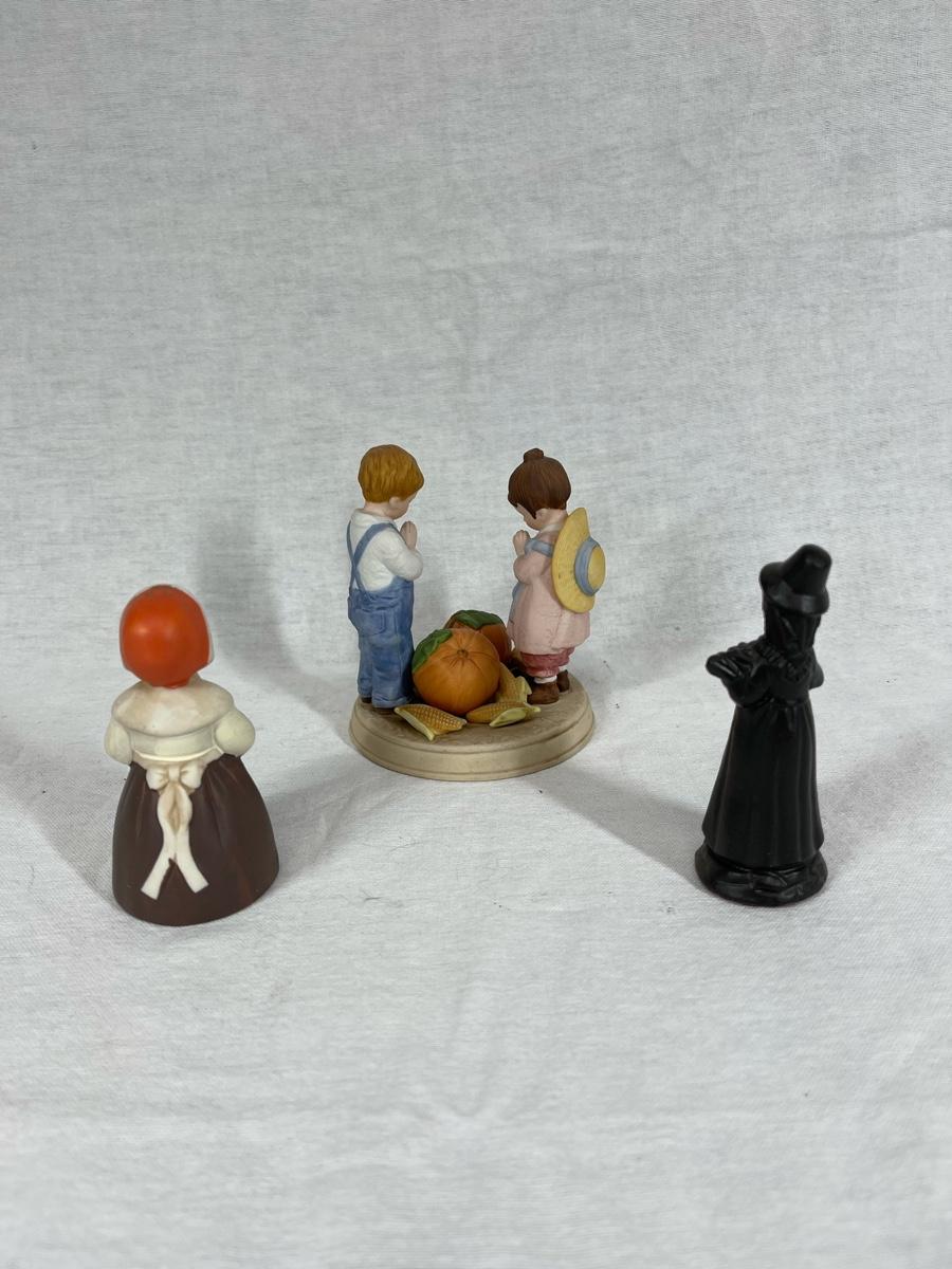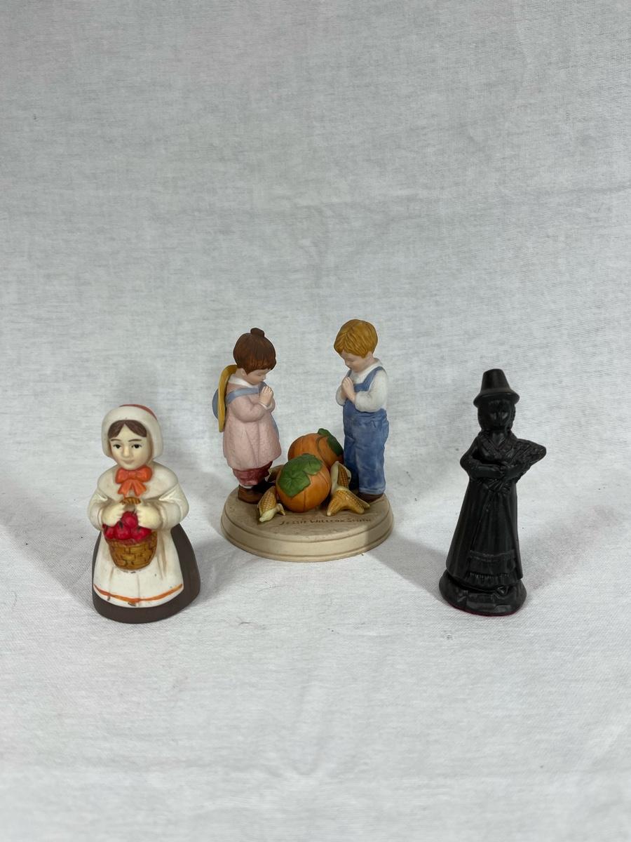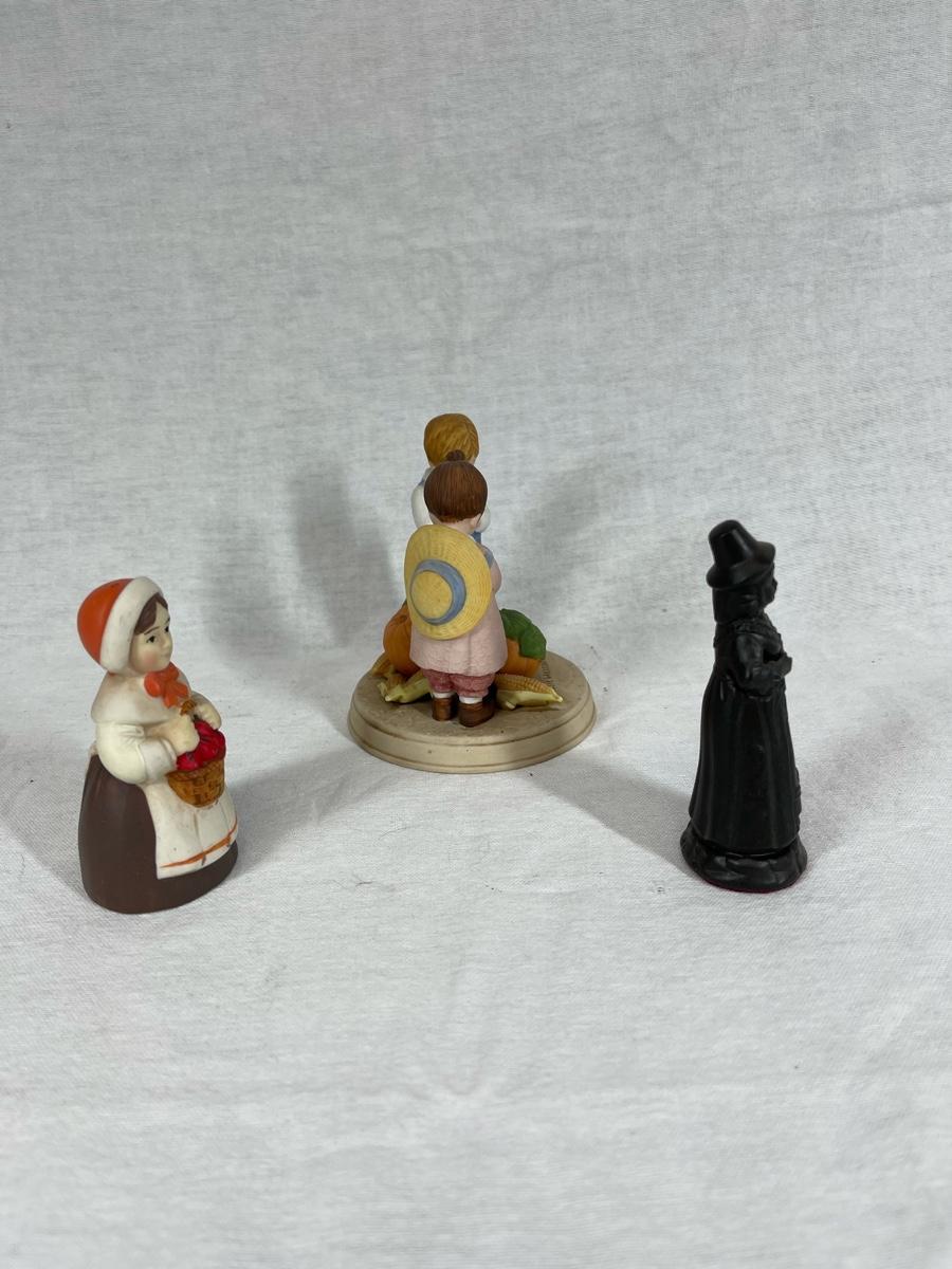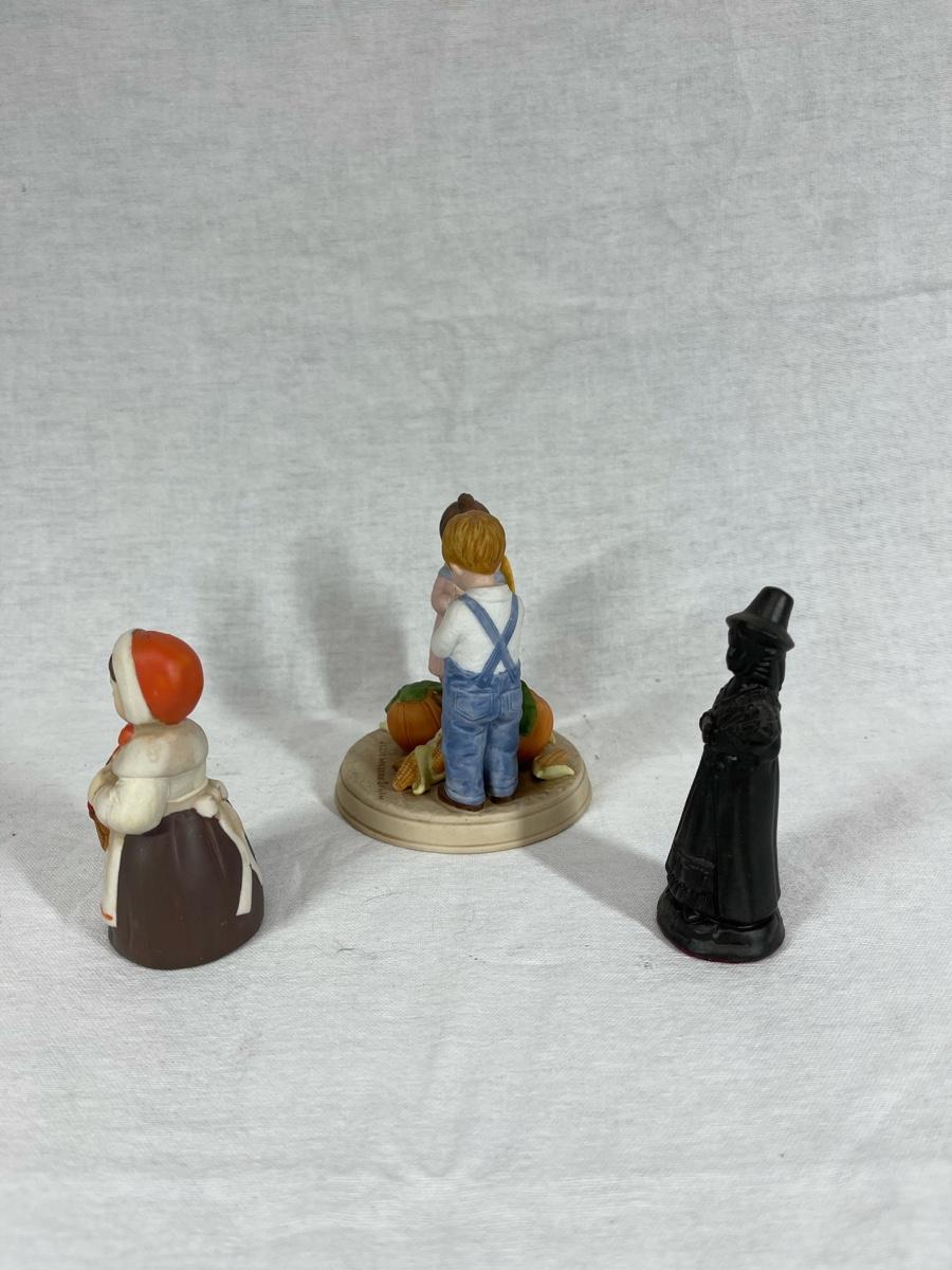 Set of 3 seasonal Thanksgiving figurines. Good condition. Under 5" size.