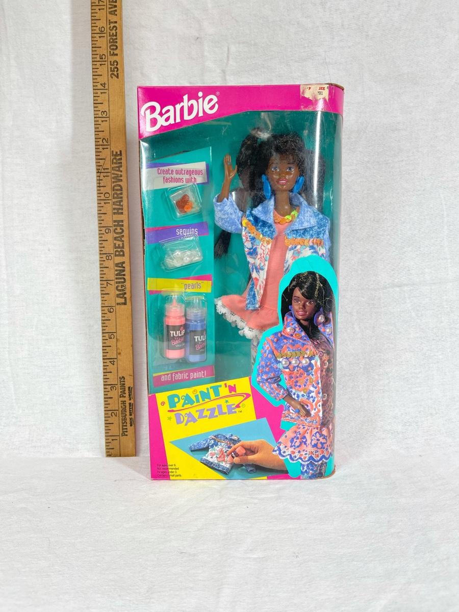Retro 1993 Paint N' Dazzle barbie from Mattel. African American doll. Unopened package.