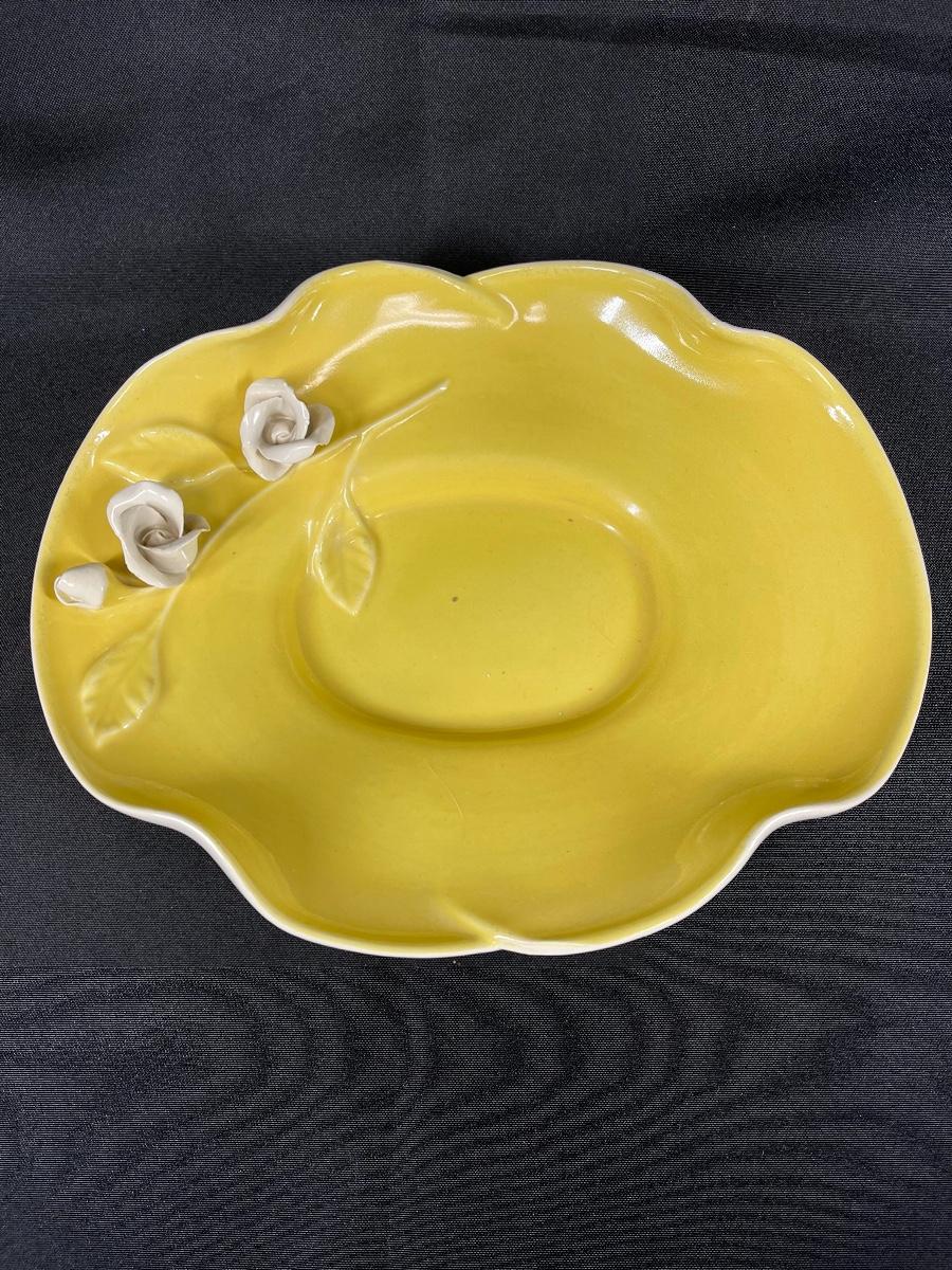 Vintage Yellow Haldeman Caliente Pottery Dish Bowl Plate with Roses