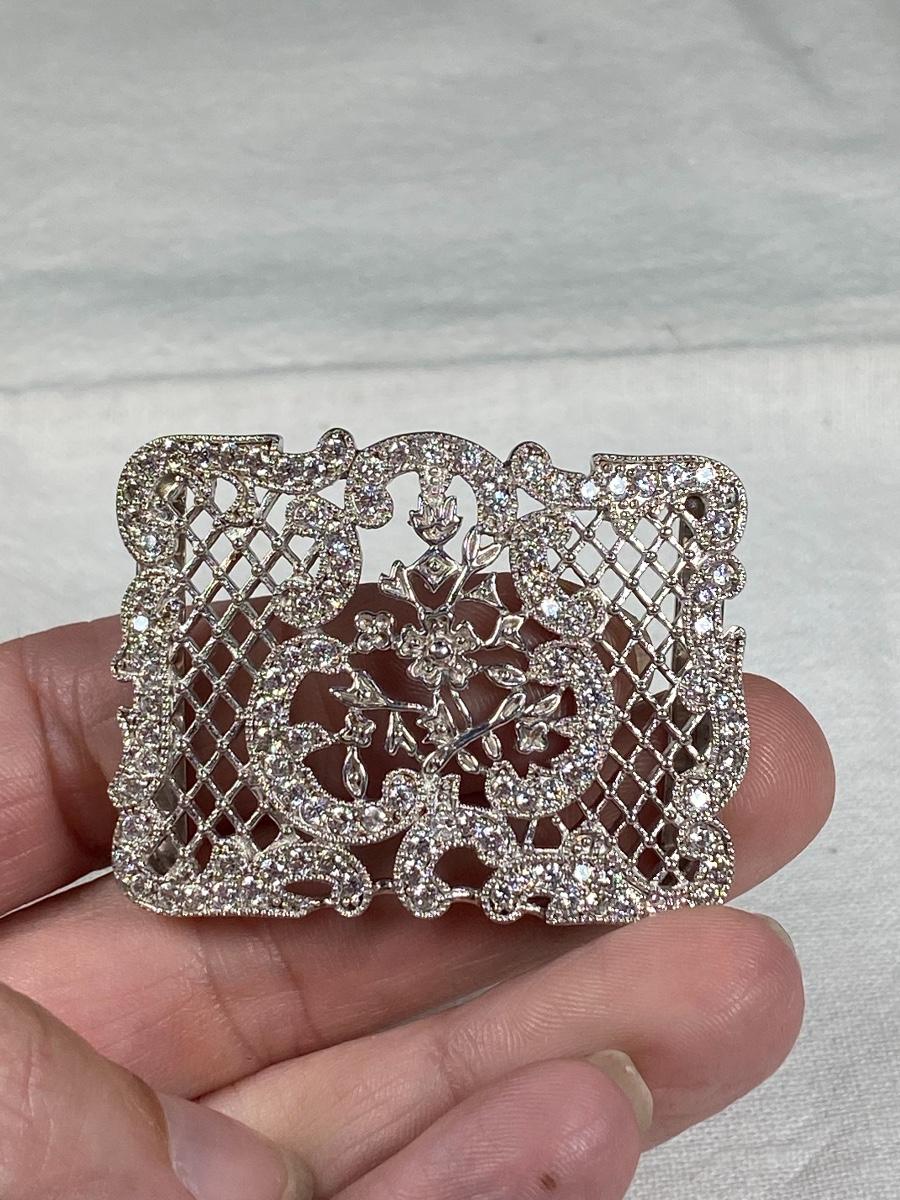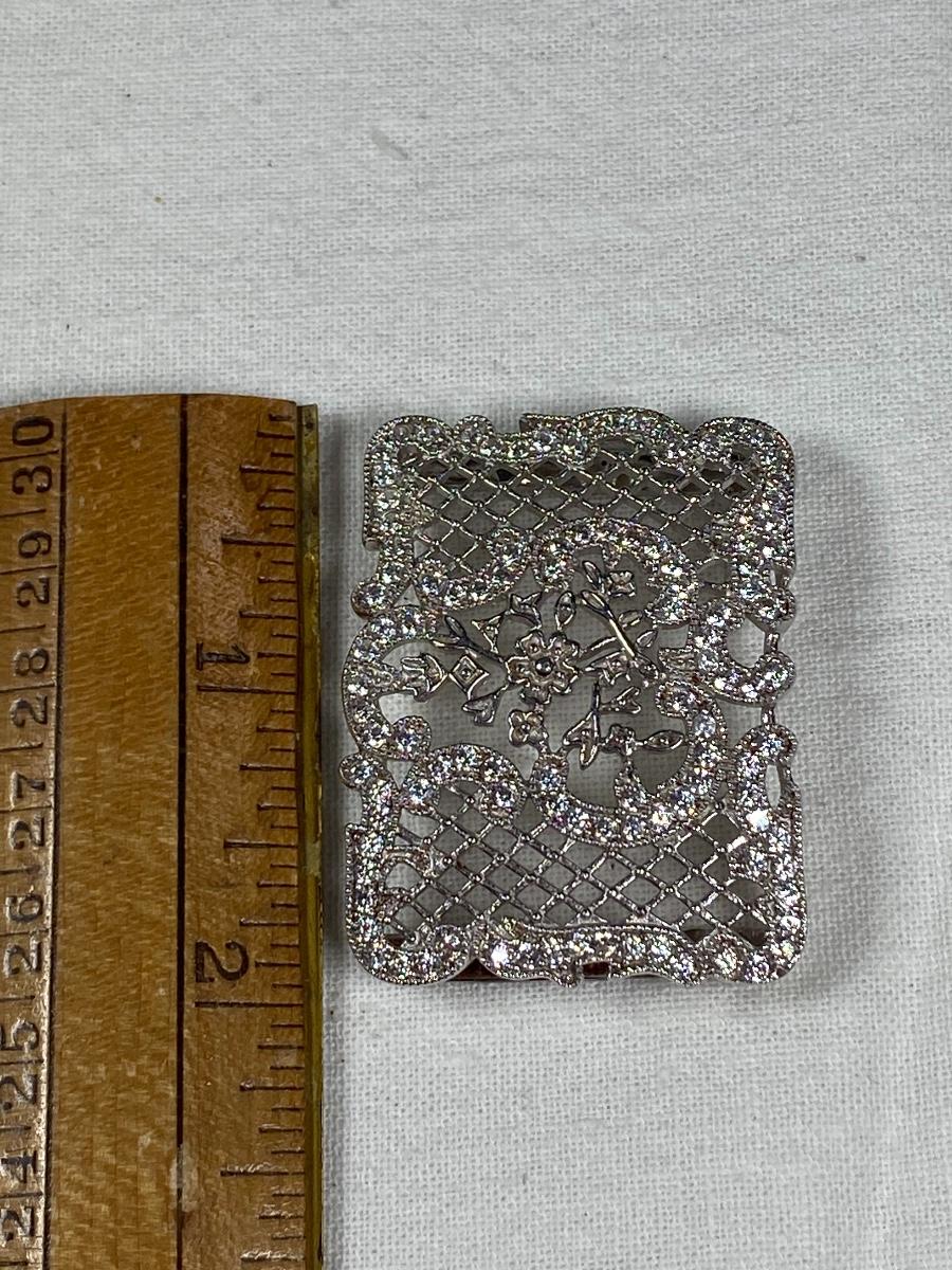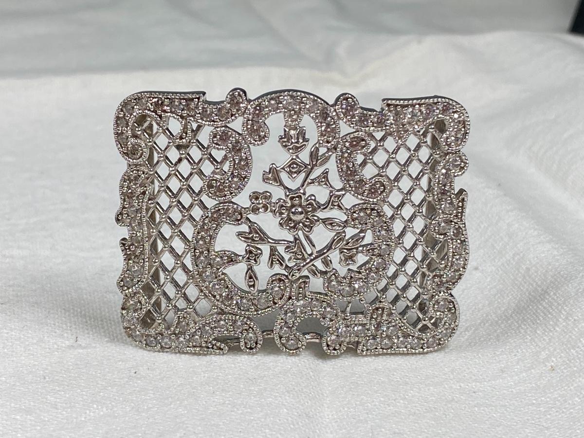 Sterling Silver CZ Filigree Belt Buckle Scarf Slide