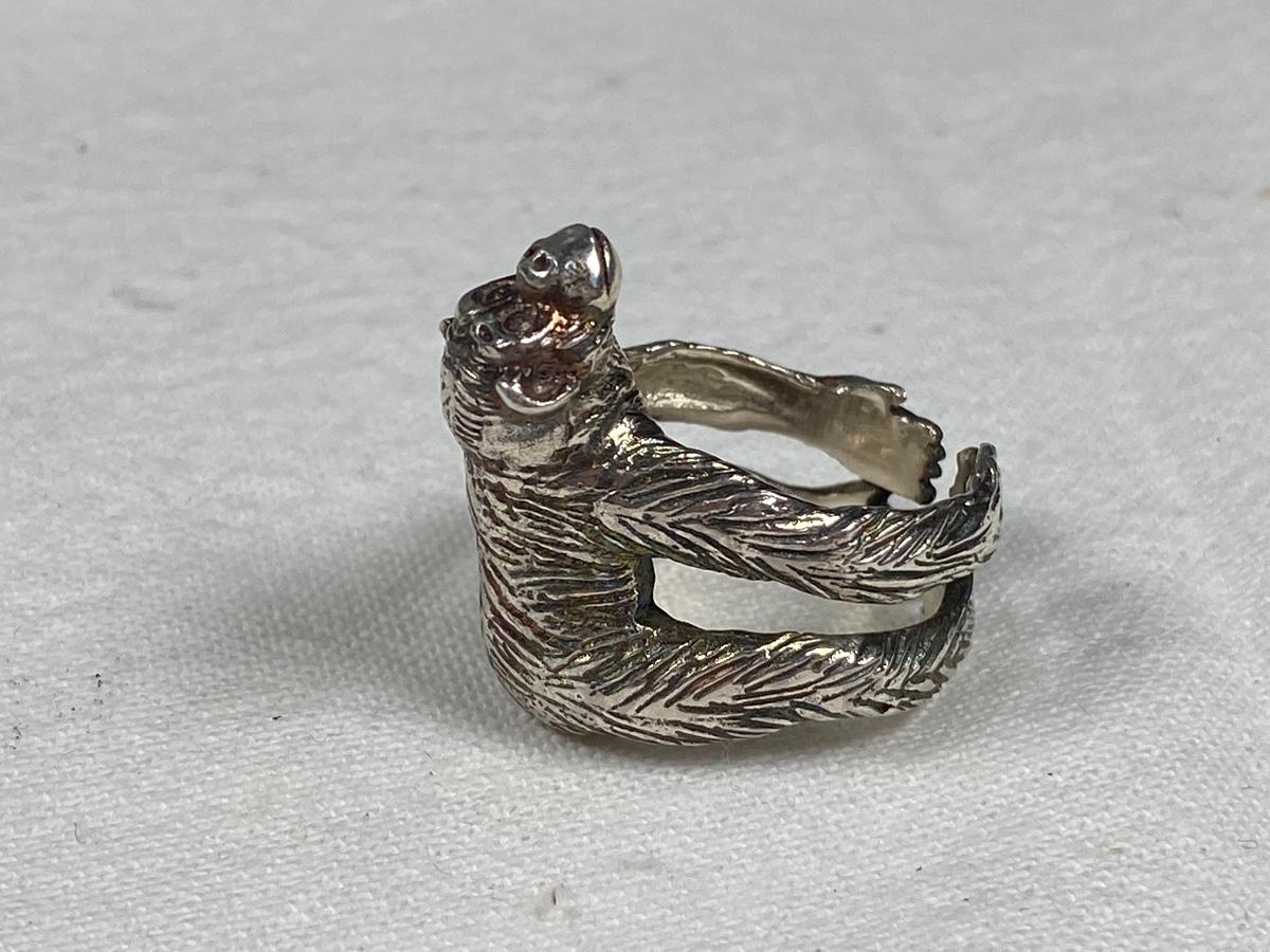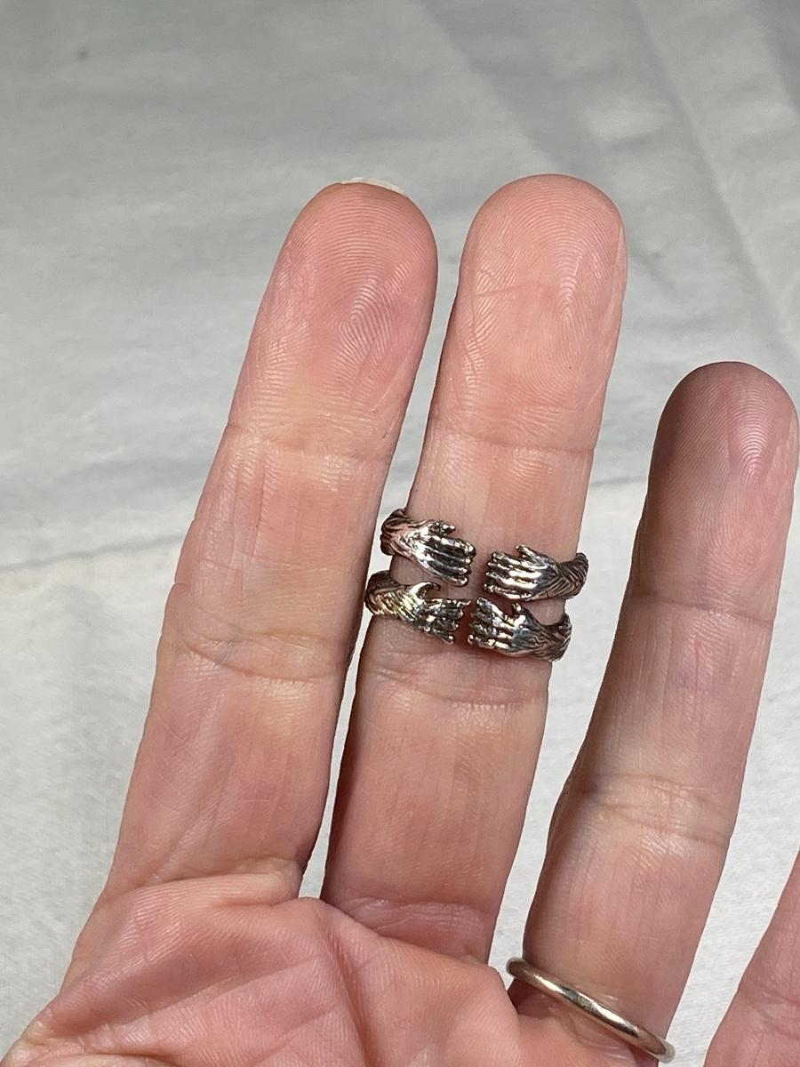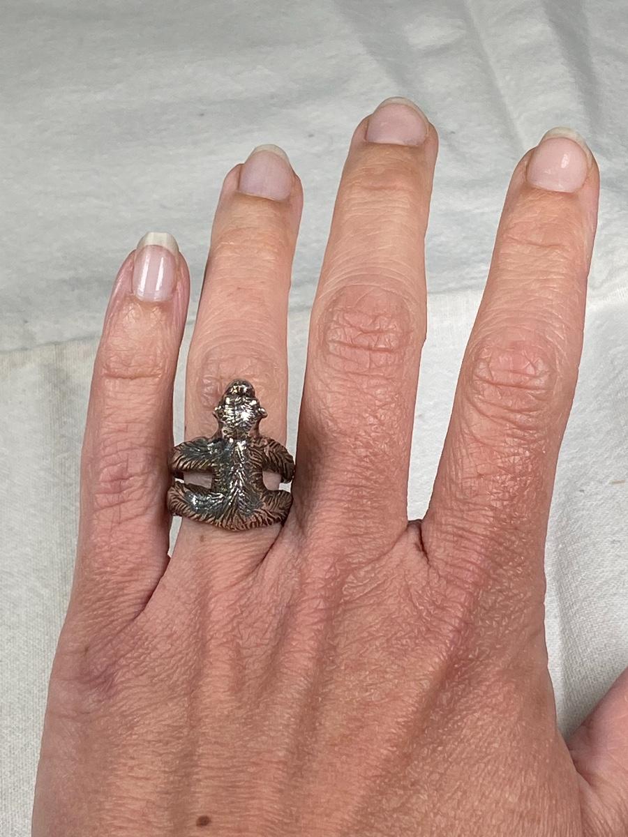 Monkey finger wrap ring. Fits like a 7. No marking inside. Could be size adjusted as the legs are not connected on underside.
