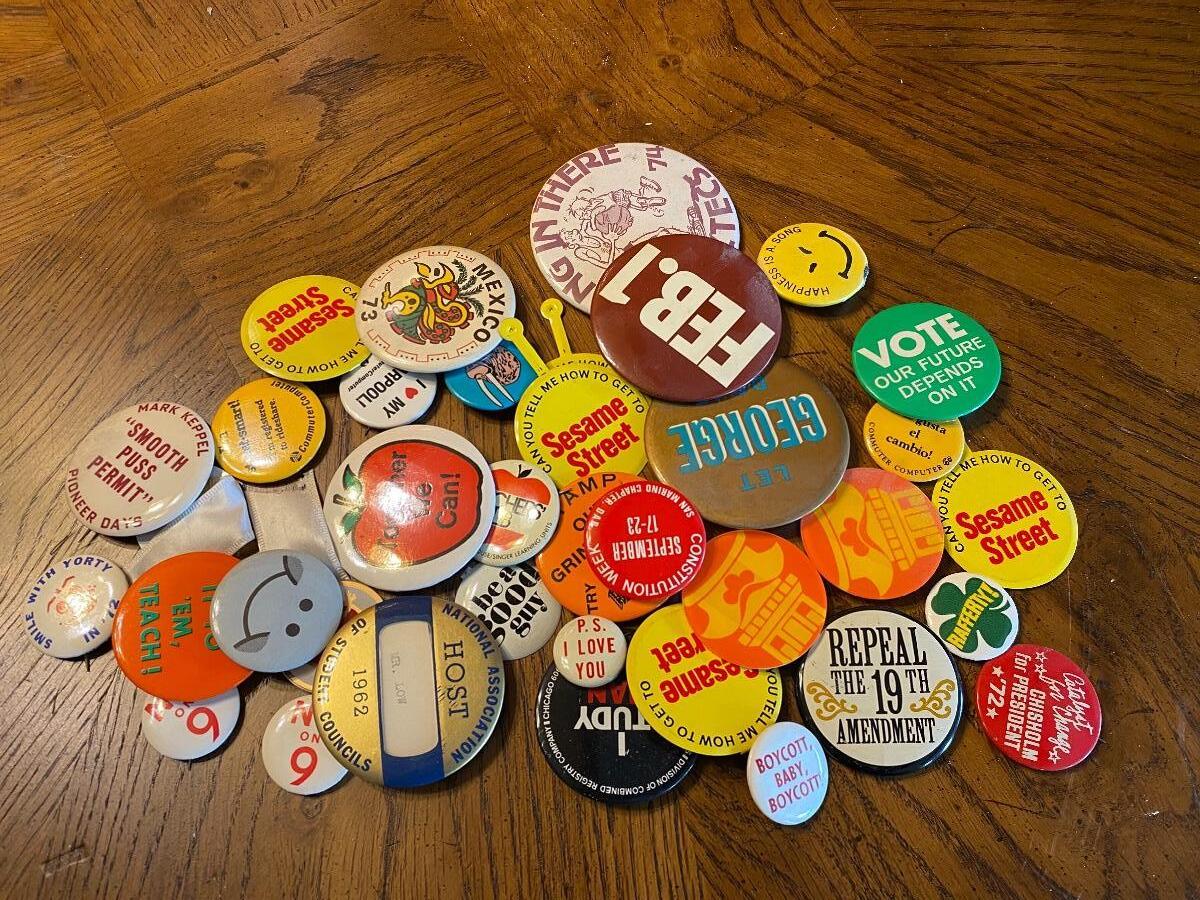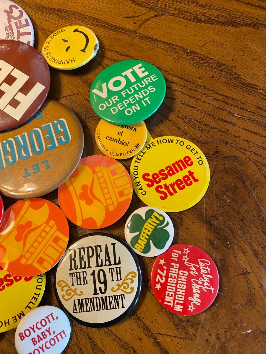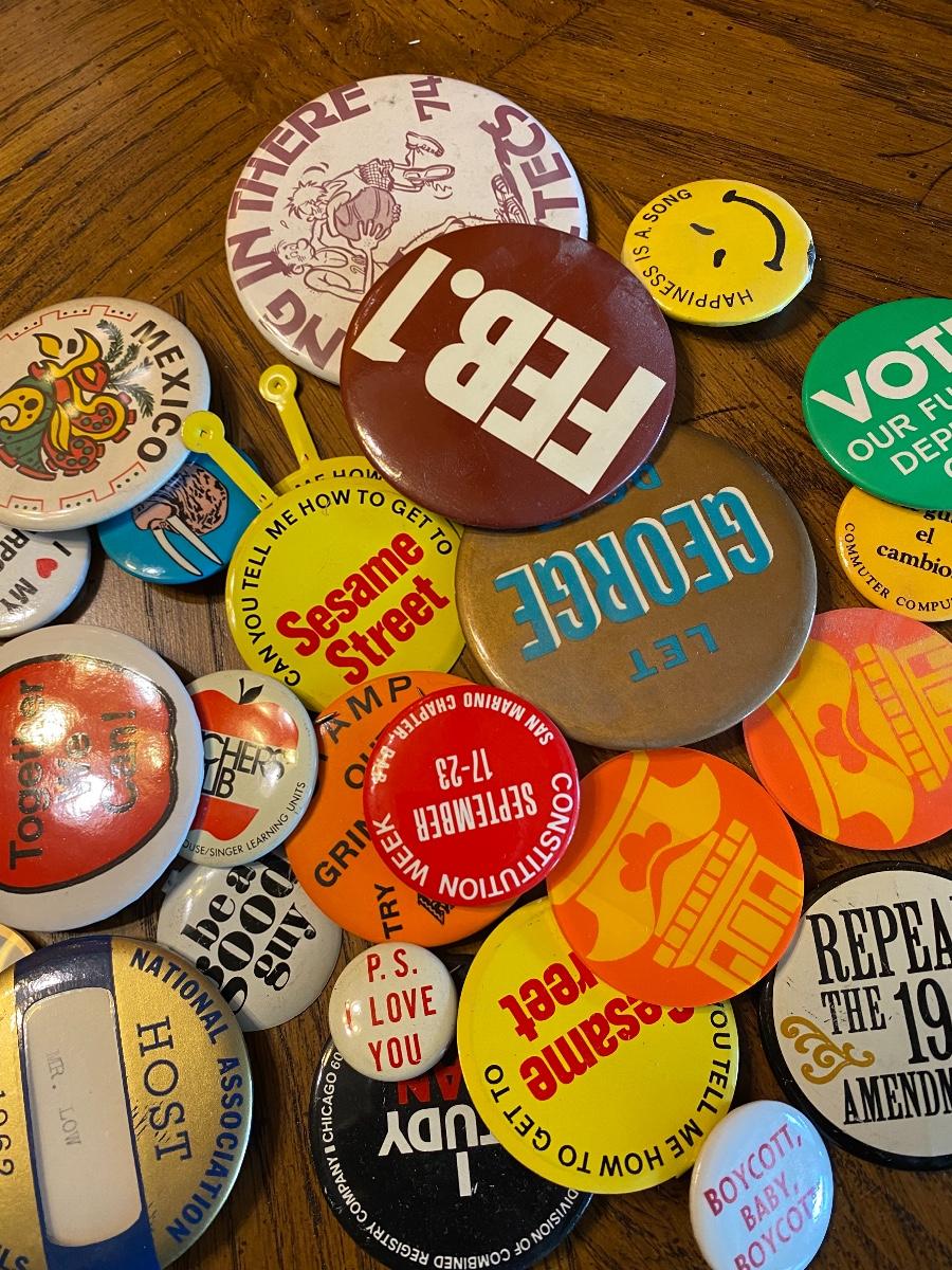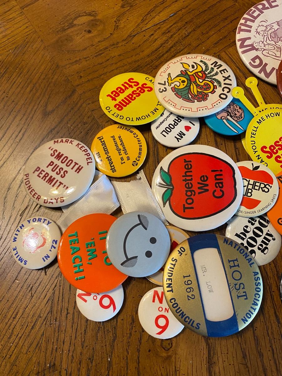 Mixed lot of retro and vintage pinback buttons. Everything photo'd included.