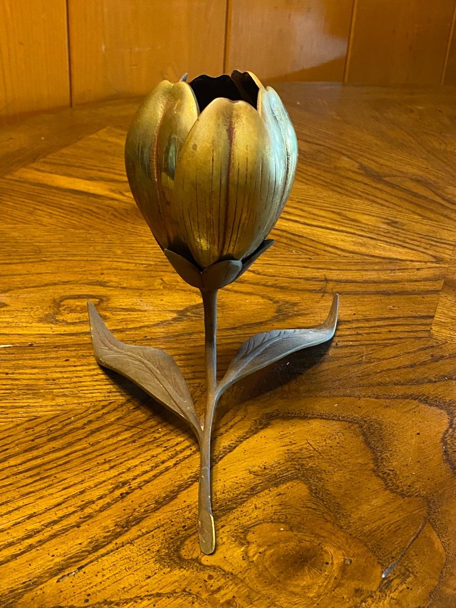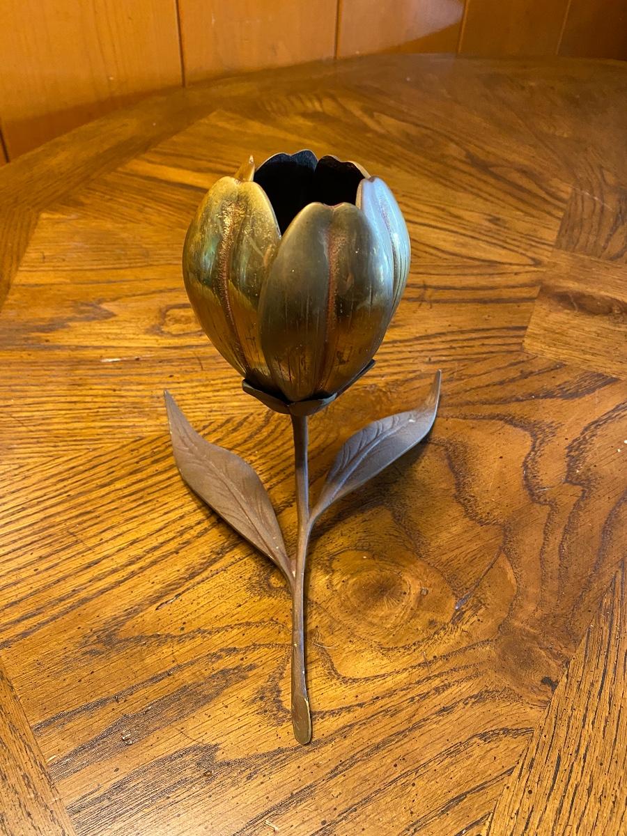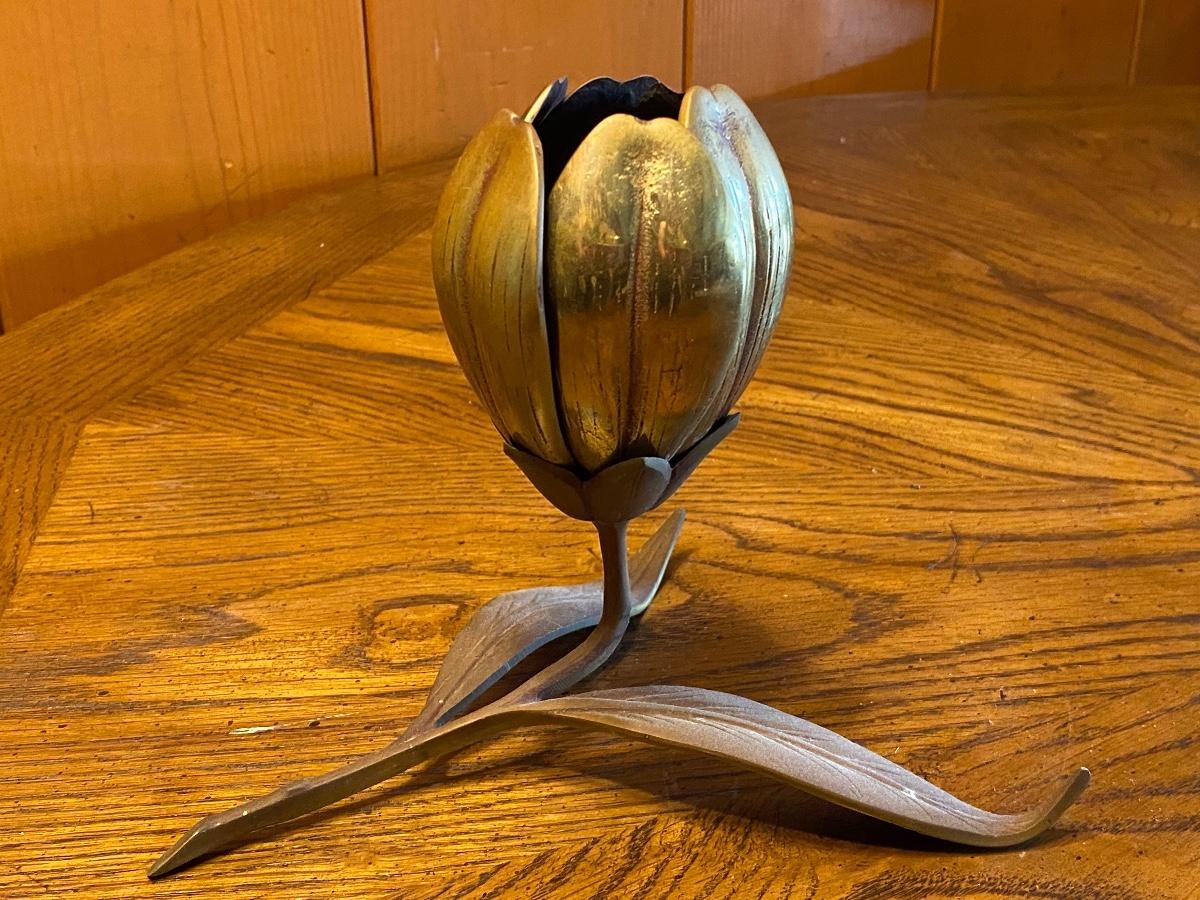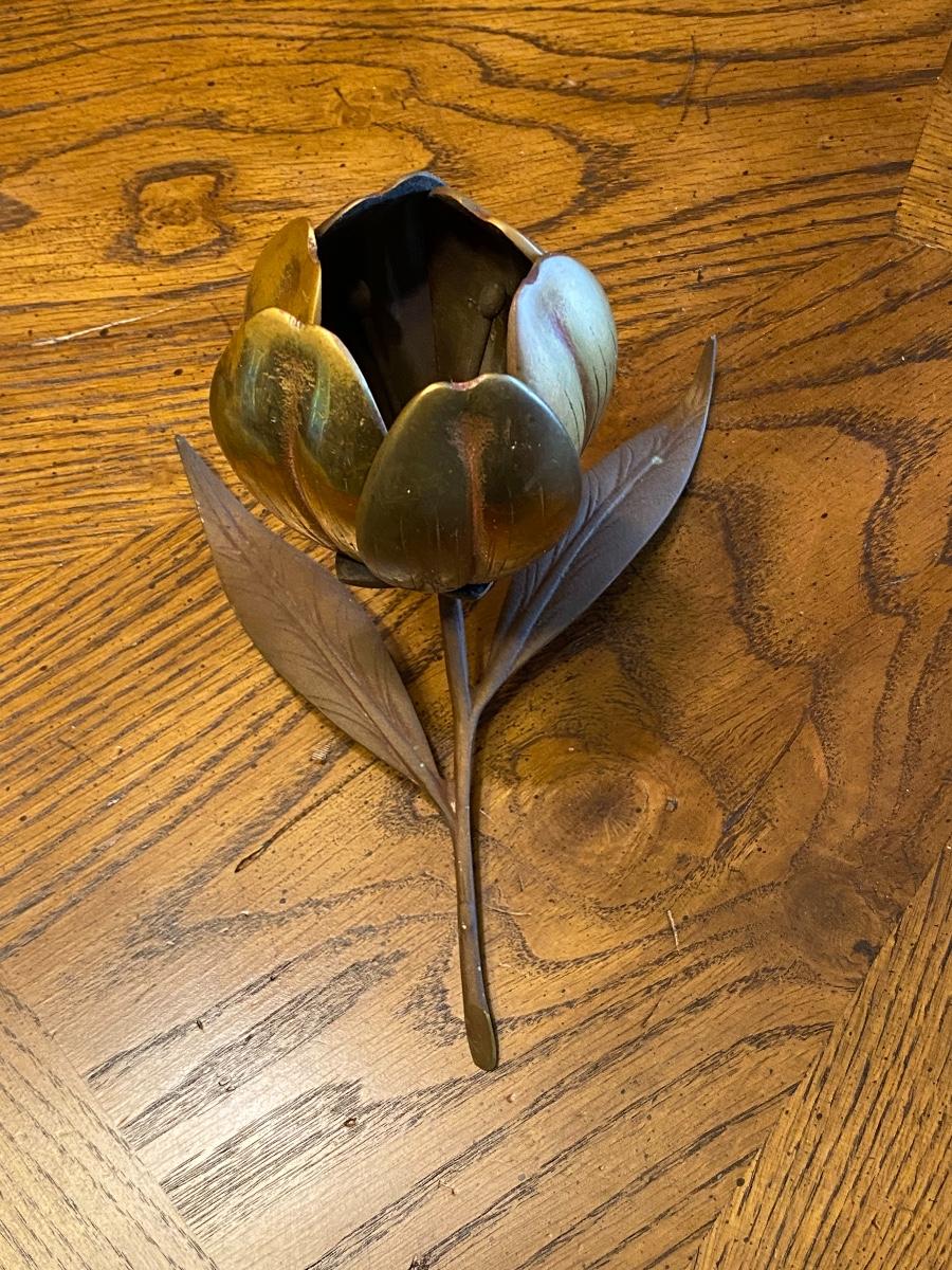 Vintage Mid Century Hollywood Regency Tulip Flower Brass Ashtray Matchbook Holder Table Art