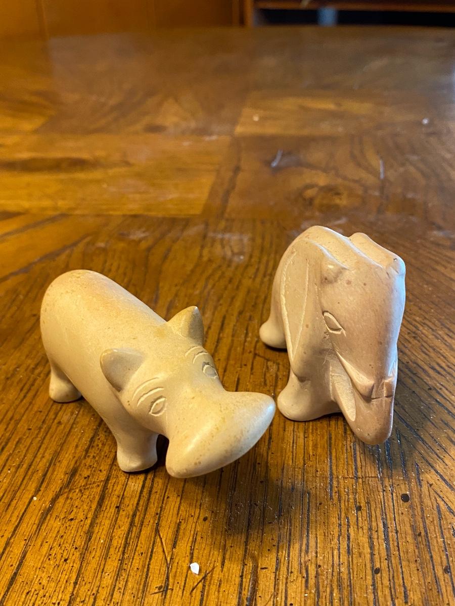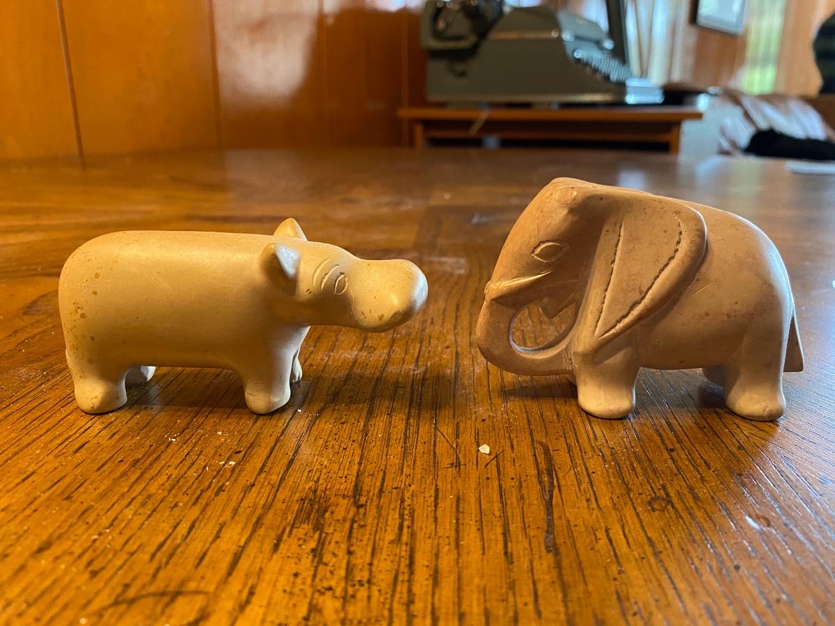 Pair of Carved Stone Animal Figurines Hippo and Elephant